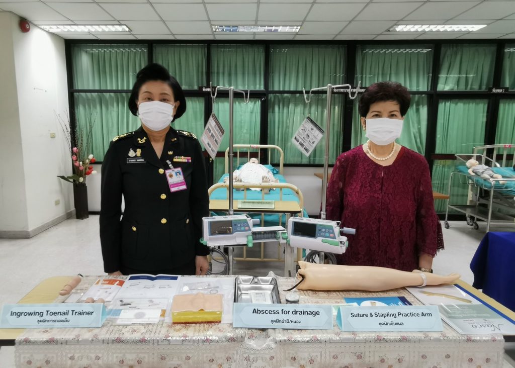 คุณหญิงทิพาวดี เมฆสวรรค์ รองประธาน มูลนิธิกองทุนการกุศลสมเด็จพระศรีนครินทราบรมราชชนนี ในพระราชูปถัมภ์ ในนามของบริษัท บี.กริม เพาเวอร์ จำกัด (มหาชน) มอบหุ่นฝึกปฏิบัติทางการพยาบาลสาขาต่างๆ จำนวน 9 ชุด มูลค่ารวมกว่า 2 ล้านบาท ให้แก่นักเรียนพยาบาลและนักเรียนผู้ช่วยพยาบาลของวิทยาลัยพยาบาลกองทัพบก เพื่อเป็นการเตรียมความพร้อมและฝึกฝนทักษะความชำนาญก่อนการปฏิบัติงานในสถานการณ์จริงได้อย่างมีประสิทธิภาพ โดยมี พล.ต.หญิง รศ.ดร. สายสมร เฉลยกิตติ ผู้อำนวยการวิทยาลัยพยาบาลกองทัพบก เป็นผู้รับมอบ พร้อมนำเยี่ยมชมการสาธิตการเรียนรู้ด้วยหุ่นฝึกปฏิบัติทางการพยาบาลสาขาต่างๆ ณ อาคารกองการศึกษา วิทยาลัยพยาบาลกองทัพบก