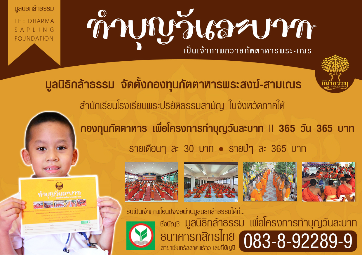 1.โครงการทำบุญวันละบาท :เพียงวันละบาทจากคุณ…คือ กองทุนภัตตาหารพระ-เณรตลอดปี