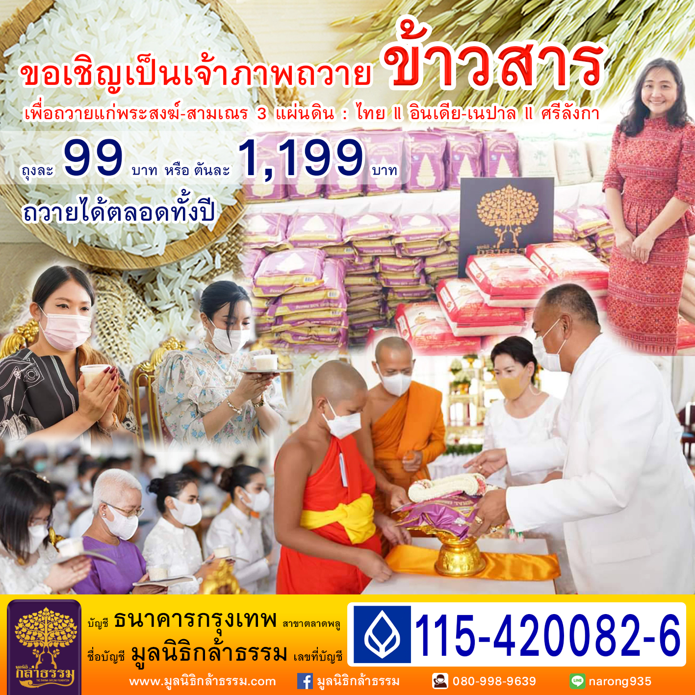 ร่วมเป็นเจ้าภาพถวายข้าวสาร ถุงละ 99 บาท II ตันละ 1,199 บาท