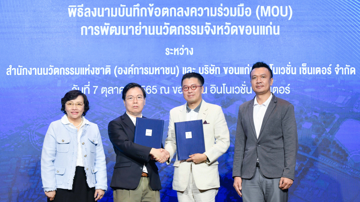 สำนักงานนวัตกรรมแห่งชาติ (องค์การมหาชน) หรือ NIA กระทรวงการอุดมศีกษา วิทยาศาสตร์ วิจัยและนวัตกรรม และขอนแก่น อินโนเวชั่น เซ็นเตอร์ หรือ แก่น ลงนามความร่วมมือการพัฒนาย่านนวัตกรรมจังหวัดขอนแก่น เพื่อผสานความร่วมมือระหว่างภาครัฐและภาคเอกชนในการพัฒนาและฟื้นฟูพื้นที่ย่านศรีจันทร์-กังศดาน จ.ขอนแก่น ให้เป็น “ย่านนวัตกรรมอาหาร การเกษตร และเทคโนโลยีชีวภาพ” รวมถึงเป็นศูนย์กลางการต่อยอดองค์ความรู้และเศรษฐกิจระดับนานาชาติ การพัฒนาขีดความสามารถของผู้ประกอบการธุรกิจนวัตกรรม และเศรษฐกิจสร้างสรรค์ ซึ่งย่านนวัตกรรมแห่งนี้จะเป็นพื้นที่สำคัญที่ช่วยสร้างโอกาสและผลักดันประเทศไทยให้ก้าวสู่การเป็นผู้นำนวัตกรรมในการขับเคลื่อนเศรษฐกิจด้วยโมเดลบีซีจี (Bio-Circular-Green Economy)