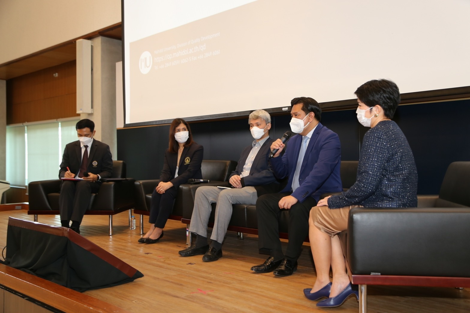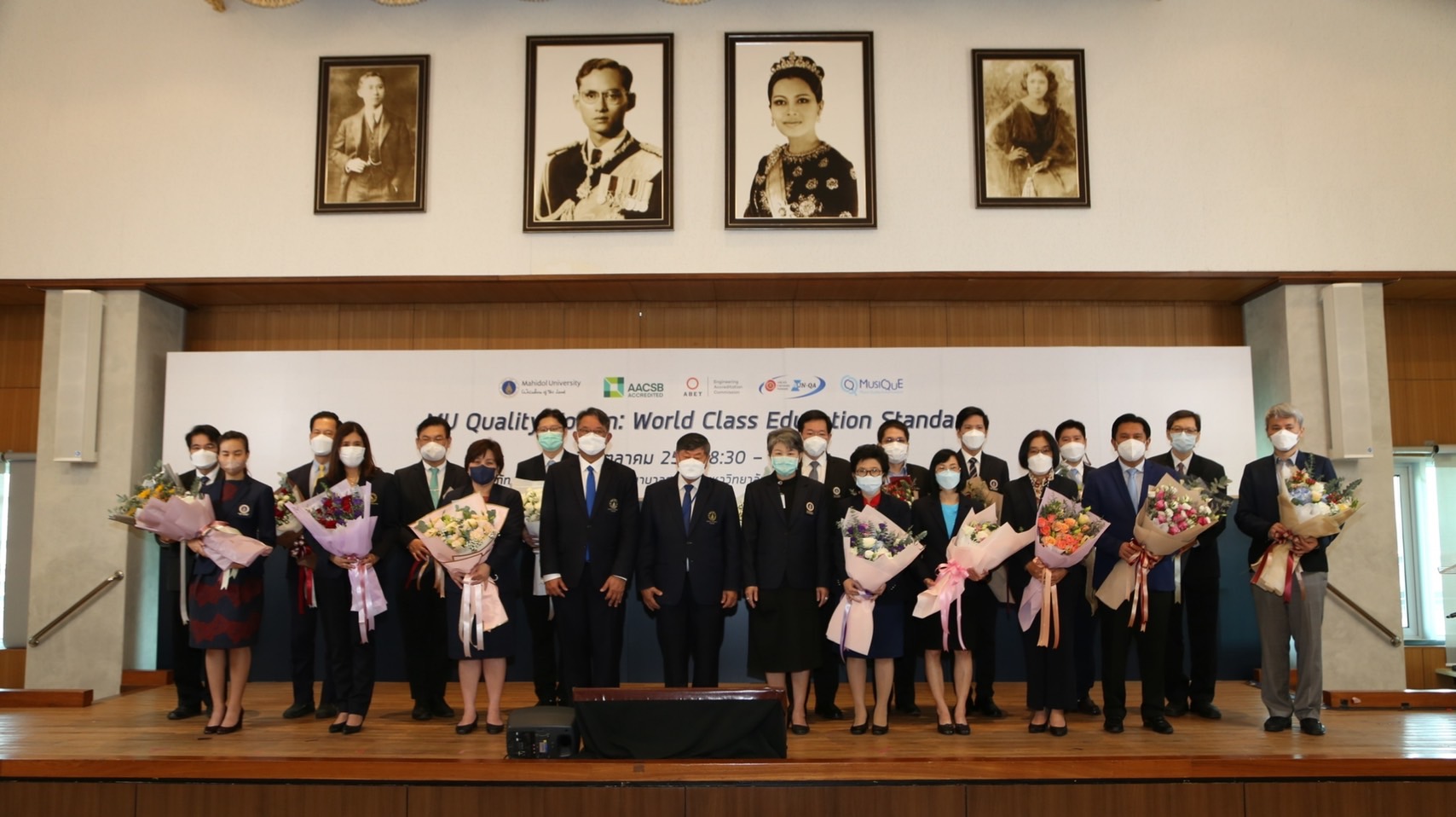 ศาสตราจารย์ นายแพทย์บรรจง มไหสวริยะ อธิการบดีมหาวิทยาลัยมหิดล กล่าวว่า ที่ผ่านมามหาวิทยาลัยมหิดลและทุกส่วนงานภายในมหาวิทยาลัยได้ทุ่มเทในการพัฒนาหลักสูตรให้มีคุณภาพ จนสามารถดำเนินการได้บรรลุตามเป้าหมาย ซึ่งเป็นการยกระดับมาตรฐานการศึกษาของมหาวิทยาลัยสู่สากล ตามวิสัยทัศน์ของมหาวิทยาลัยที่มุ่งสู่การเป็น World Class University โดยมีนโยบายในการขับเคลื่อนด้วยการพัฒนาคุณภาพในกระบวนการต่าง ๆ ทั้งในระดับองค์กรไปจนถึงระดับหลักสูตร ซึ่งในระดับหลักสูตร มหาวิทยาลัยได้ส่งเสริมและสนับสนุนด้านการพัฒนาหลักสูตรให้เป็นแบบมุ่งผลลัพธ์ หรือ Outcome Based Education พัฒนาวิธีการจัดการเรียนการสอนเพื่อให้บัณฑิตมีองค์ความรู้และทักษะที่มีความทันสมัยและสอดคล้องตามความต้องการของผู้ช้บัณฑิต สังคมและประเทศ และมีทัศนคติที่ดี ใฝ่เรียนรู้ตลอดชีวิต เพื่อให้มหาวิทยาลัยสามารถผลิตบัณฑิตที่มีความรู้ ความสามารถ และมีทักษะของการใช้ชีวิต การทำงานได้ในสังคมทั้งในระดับประเทศและเป็นที่ยอมรับในระดับนานาชาติ ตลอดจนยังคงเดินหน้าและผลักดันให้หลักสูตรของมหาวิทยาลัยได้รับการประเมินและขอรับรองคุณภาพระดับนานาชาติมาอย่างต่อเนื่องไม่ว่าจะเป็นเกณฑ์ประกันคุณภาพการศึกษาของเครือข่ายมหาวิทยาลัยอาเซียน (AUN-QA) รวมถึงเกณฑ์คุณภาพเฉพาะสาขาวิชา เช่น WFME, AACSB, ABET, MUSIQUE, TedQual เป็นต้น จนถึงปัจจุบันมหาวิทยาลัยมหิดลมีหลักสูตรที่ได้รับรองเพิ่มเติมทั้งจาก AUN-QA, MusiQuE และ ABET ทำให้มหาวิทยาลัยสามารถบรรลุได้ตามเป้าหมายการรับรองในระดับนานาชาติร้อยละ 15 เป็นจำนวนทั้งสิ้น 53 หลักสูตรที่ได้รับการรับรองอย่างเป็นทางการเรียบร้อยแล้ว