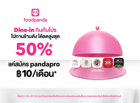 pandapro จาก foodpanda ขอส่งแคมเปญพิเศษ “Dine-in กินกับ pro” พิเศษสุดให้สมาชิก pandapro เตรียมพร้อมซ้อมฉลองเบาๆ ก่อนเข้าสู่ช่วงเฟสทีฟอย่างจริงจัง มอบส่วนลดบริการ Dine-in ทานที่ร้าน ทั้งใบเสร็จสูงสุด 50% ไม่มียอดค่าบริการขั้นต่ำ เมื่อสั่งอาหารจากเมนูและร้านอาหารที่ร่วมแคมเปญ “Dine-in กินกับ pro” ระหว่างวันที่ 1-30 พฤศจิกายน 2565 นี้เท่านั้น