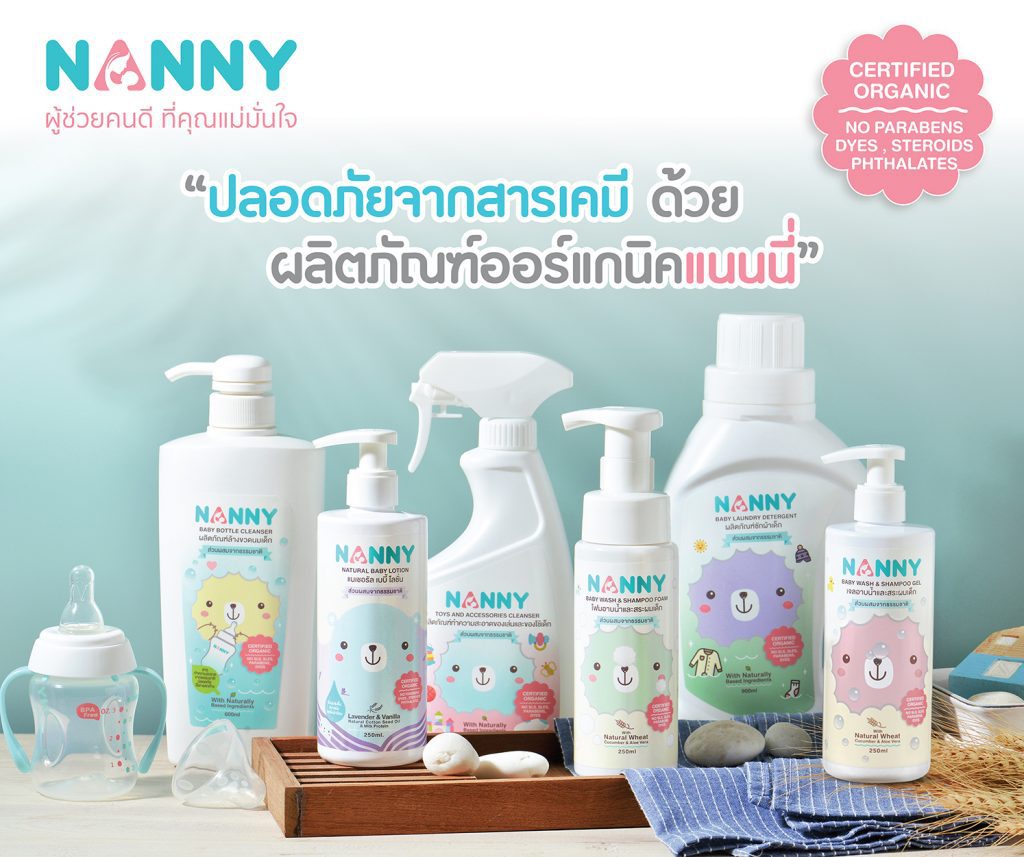 ด้วยแนวคิด “ผู้ช่วยคนดีที่แม่มั่นใจ” ช่วยให้คุณแม่ยุคใหม่เลี้ยงลูกได้อย่างมีความสุข Nanny มีหลากหลายผลิตภัณฑ์ที่เหมาะสมกับลูกน้อยตั้งแต่แรกเกิด ให้เลือกสรรตามความต้องการและเหมาะสมในแต่ละช่วงวัย Nanny ยังมีกลุ่มผลิตภัณฑ์ออแกนิกเพื่อสุขอนามัย เช่น โฟมอาบน้ำเด็ก เจลอาบน้ำ โลชั่น น้ำยาซักผ้า และผลิตภัณฑ์ทำความสะอาดของเล่นและของใช้เด็ก รวมถึง ผลิตภัณฑ์ถุงเก็บน้ำนมแม่ ที่ได้รับความนิยมเป็นอย่างมาก ด้วยคุณภาพที่การันตีรักษาคุณค่าของน้ำนมแม่