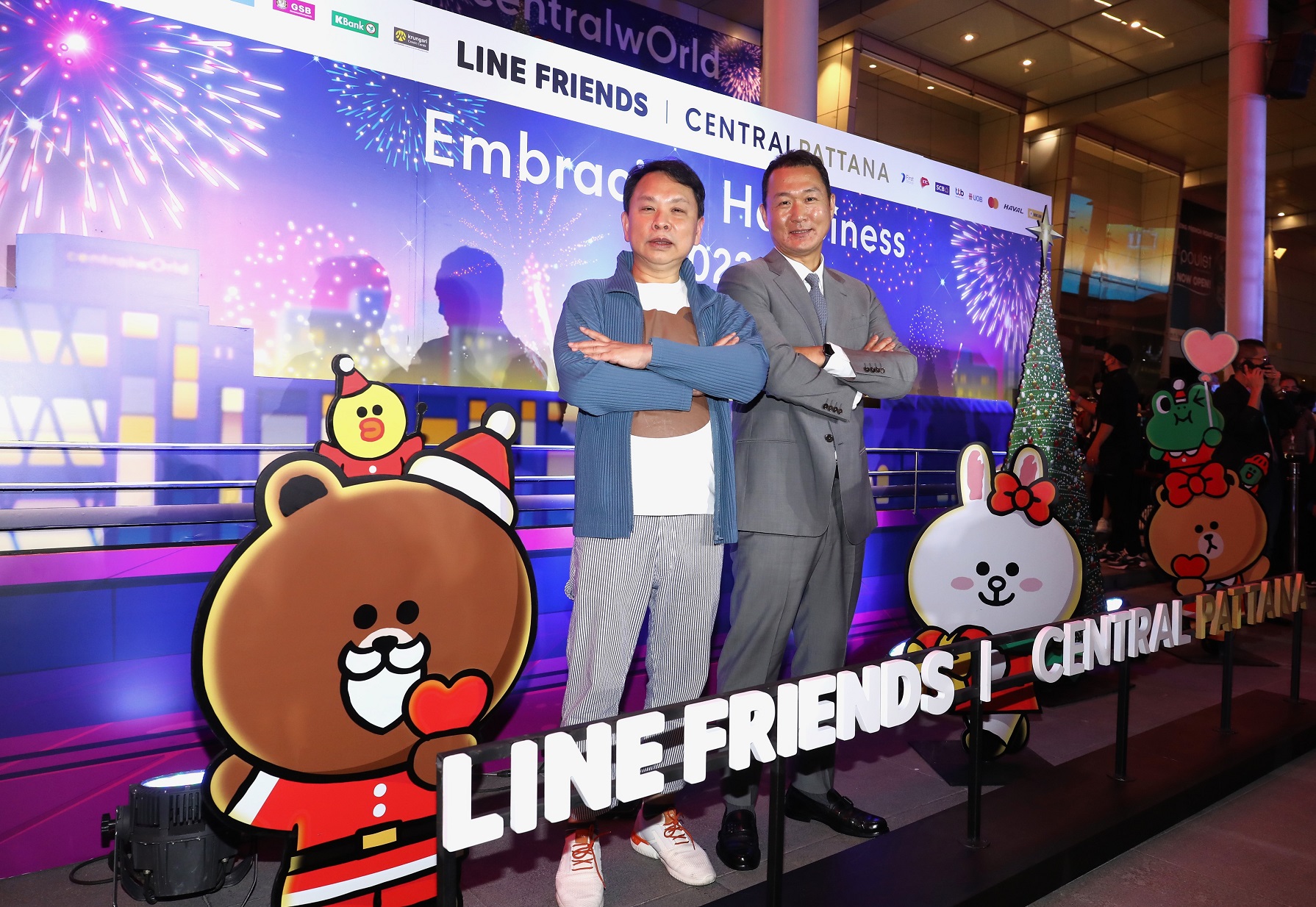 ภายในงาน นำโดย ดร. ณัฐกิตติ์ ตั้งพูลสินธนา ผู้ช่วยกรรมการผู้จัดการใหญ่ สายงานการตลาด บริษัท เซ็นทรัลพัฒนา จำกัด (มหาชน), Mr. Baek Seung Do Global licensing Director LINE FRIENDS, ดร.พิเชษฐ ฤกษ์ปรีชา ประธานเจ้าหน้าที่บริหาร บริษัท ไลน์ คอมพานี (ประเทศไทย) จำกัด และ มาย-ภาคภูมิ ร่มไทรทอง และ อาโป-ณัฐวิญญ์ วัฒนกิติพัฒน์ จาก KinnPorsche The Series ที่มาร่วมเปิดแคมเปญด้วยการแชร์โมเม้นต์ความสุขสุดพิเศษมากมาย เรียกเสียงกรี๊ดจากบรรดาแฟนคลับที่มาร่วมงานอย่างคับคั่ง บริเวณลาน Square C ศูนย์การค้าเซ็นทรัลเวิลด์