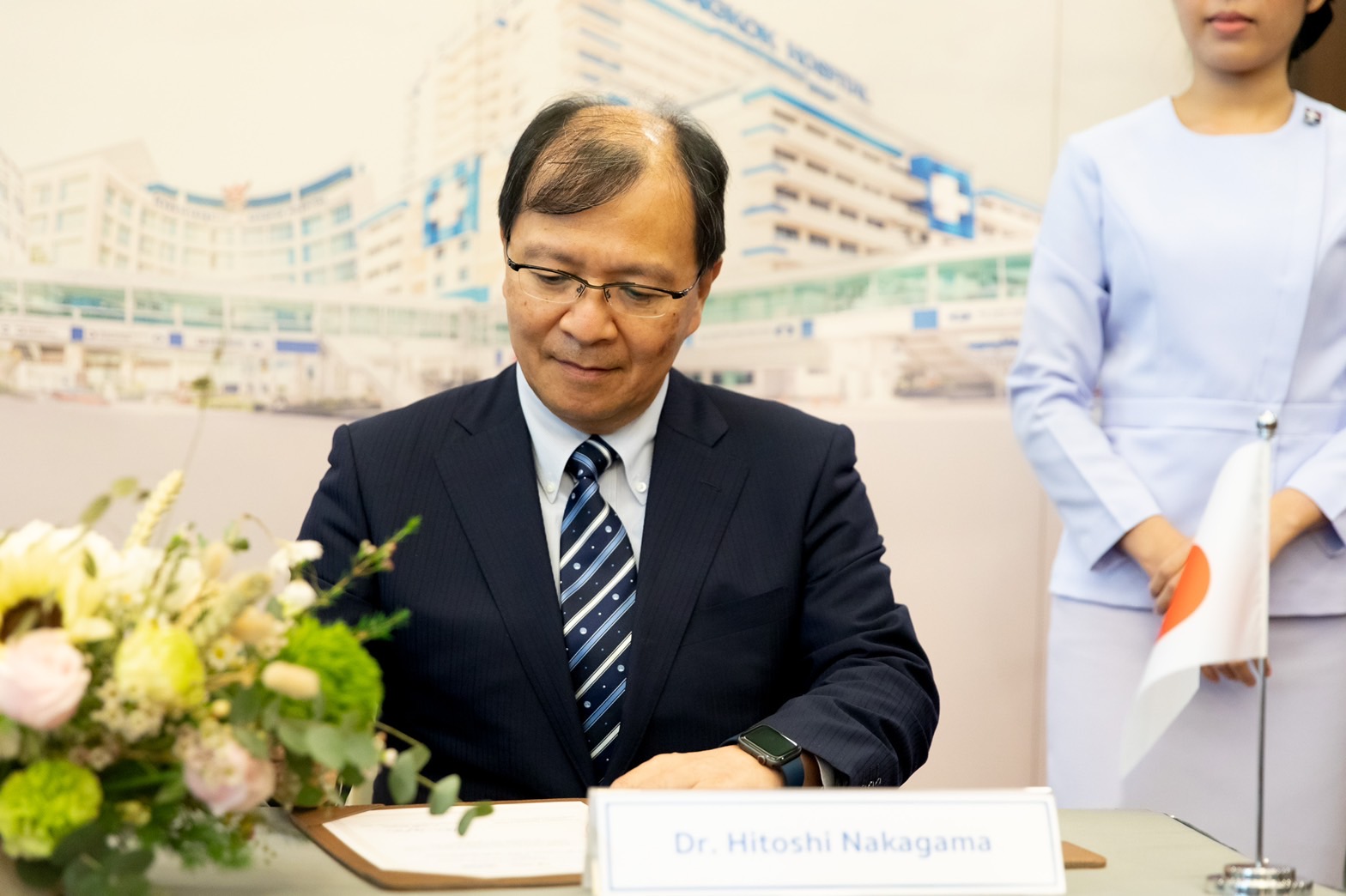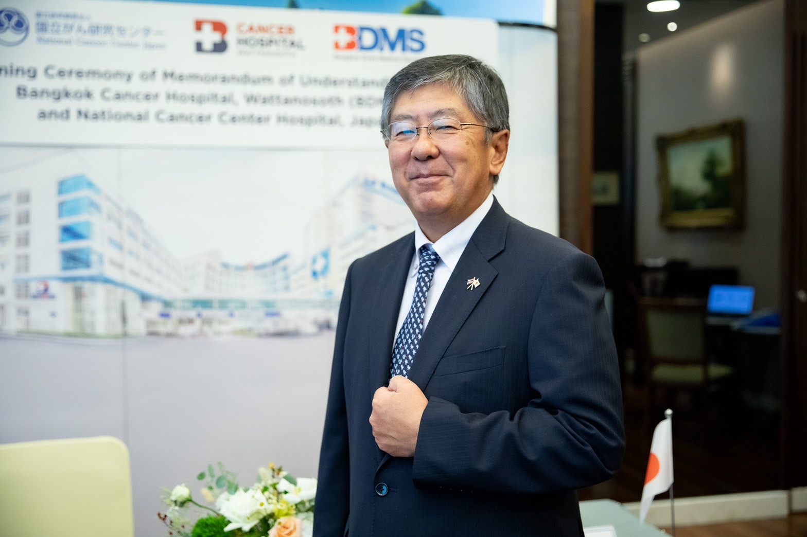 นพ.ฮิโตชิ นะคะงะมะ ประธานบริหาร สถาบันมะเร็งแห่งชาติ ประเทศญี่ปุ่น กล่าวว่า สถาบันมะเร็งญี่ปุ่น ในฐานะที่เป็นโรงพยาบาลอันดับ 10 ของโลก และโรงพยาบาลอันดับ 1 ของประเทศญี่ปุ่น ในการรักษาผู้ป่วยโรคมะเร็ง เรามีความยินดี และส่งเสริมการสนับสนุนงานวิจัยระหว่างประเทศโดยเฉพาะกับประเทศไทย ซึ่งมีพลเมืองชาวญี่ปุ่นอาศัยอยู่จำนวนมาก โดยความร่วมมือในครั้งนี้ จะช่วยพัฒนาแนวทางการรักษาโรคมะเร็งให้มีศักยภาพและมีความปลอดภัย ช่วยวางแผนแนวทางการรักษาโรคมะเร็ง เพื่อให้ผู้ป่วยได้รับการรักษาอย่างมีประสิทธิภาพมากที่สุด