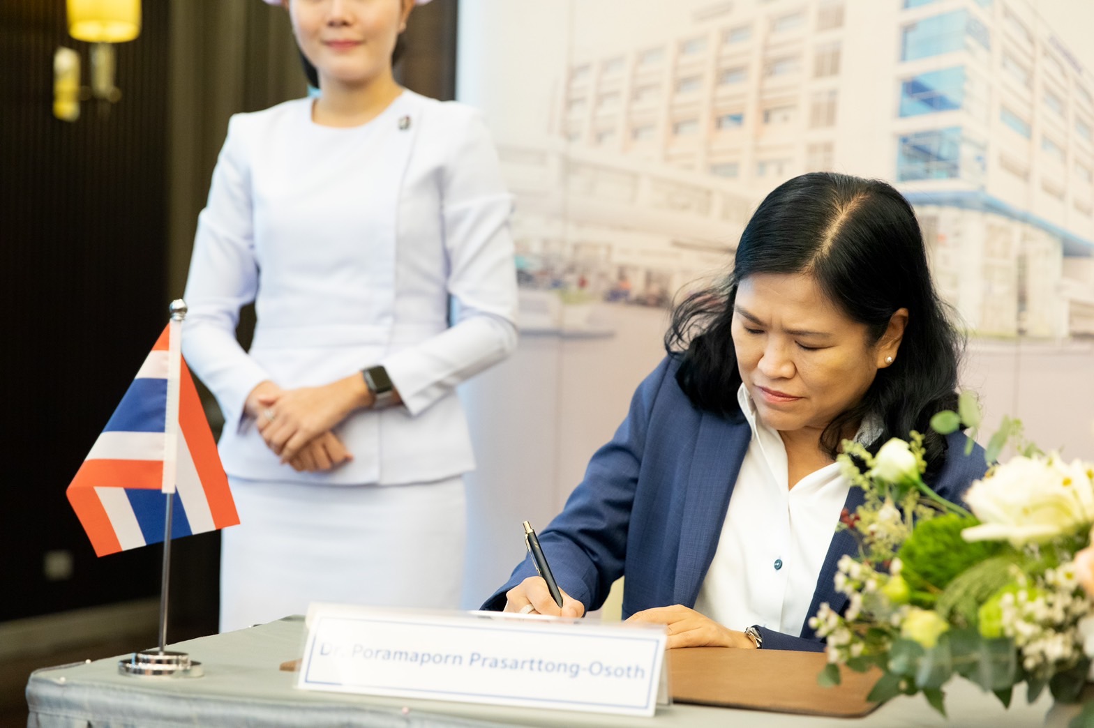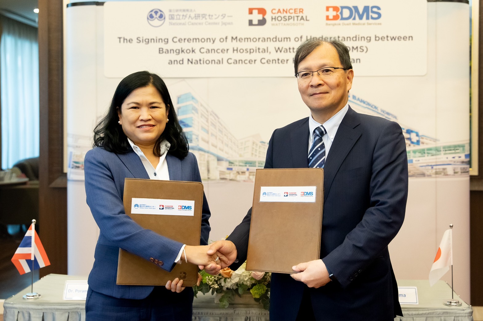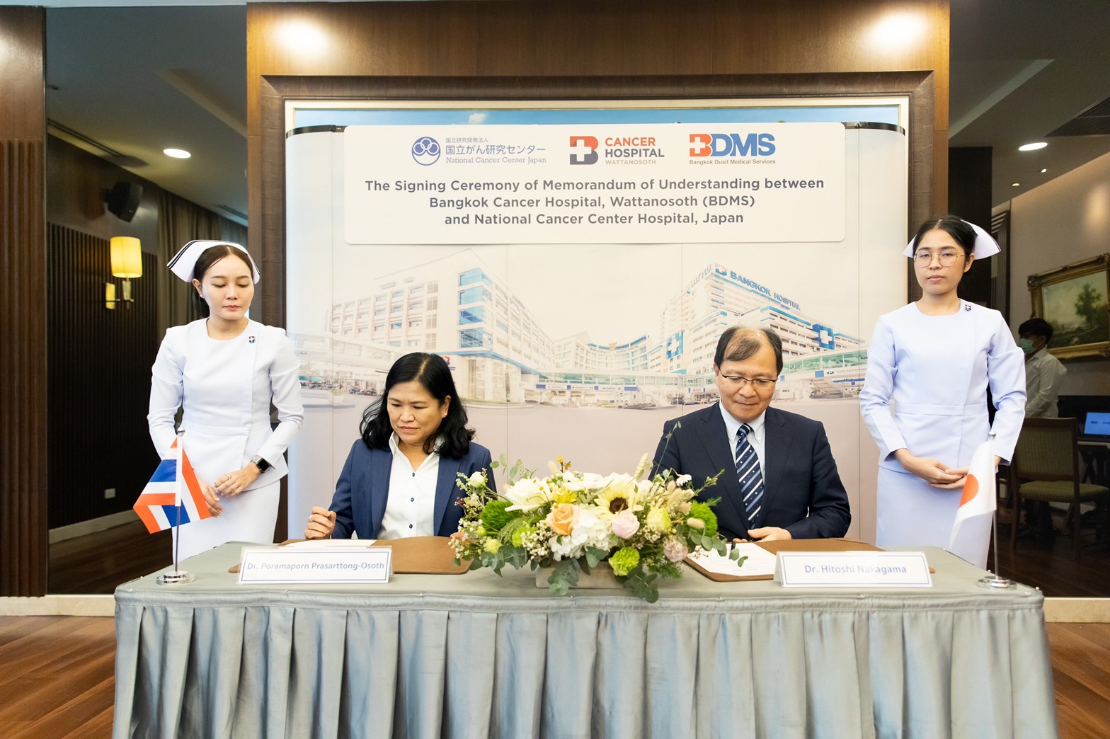 พญ.ปรมาภรณ์ ปราสาททองโอสถ กรรมการผู้อำนวยการใหญ่ และประธานคณะผู้บริหาร กลุ่ม 1 บมจ.กรุงเทพดุสิตเวชการ กล่าวว่า ในนามของ บริษัทกรุงเทพดุสิตเวชการ จำกัด (มหาชน) ซึ่งบริหารงานเครือข่ายโรงพยาบาลเอกชนชั้นนำของไทย ครอบคลุมทั่วทุกภูมิภาคทั้งในประเทศไทยและต่างประเทศโดยโรงพยาบาลมะเร็งกรุงเทพ วัฒโนสถ เป็นโรงพยาบาลที่ให้การรรักษาเฉพาะทางด้านโรคมะเร็ง มีความยินดีและเป็นเกียรติอย่างยิ่ง ที่ทางสถาบันมะเร็งแห่งชาติและภาครัฐบาลประเทศญี่ปุ่น ได้ให้ความสำคัญและให้การสนับสนุนทางวิชาการ ระหว่าง 2 องค์กร ลงนามบันทึกความร่วมมือกัน ในครั้งนี้ เพื่อมุ่งพัฒนาคุณภาพการรักษาพยาบาลผู้ป่วยมะเร็งให้มีความก้าวหน้ายิ่งขึ้น และมุ่งสู่การเป็นองค์กรทางสุขภาพชั้นนำ ทางด้านการรักษาพยาบาลผู้ป่วยมะเร็งของประเทศไทยและภูมิภาคเอเชียแปซิฟิก