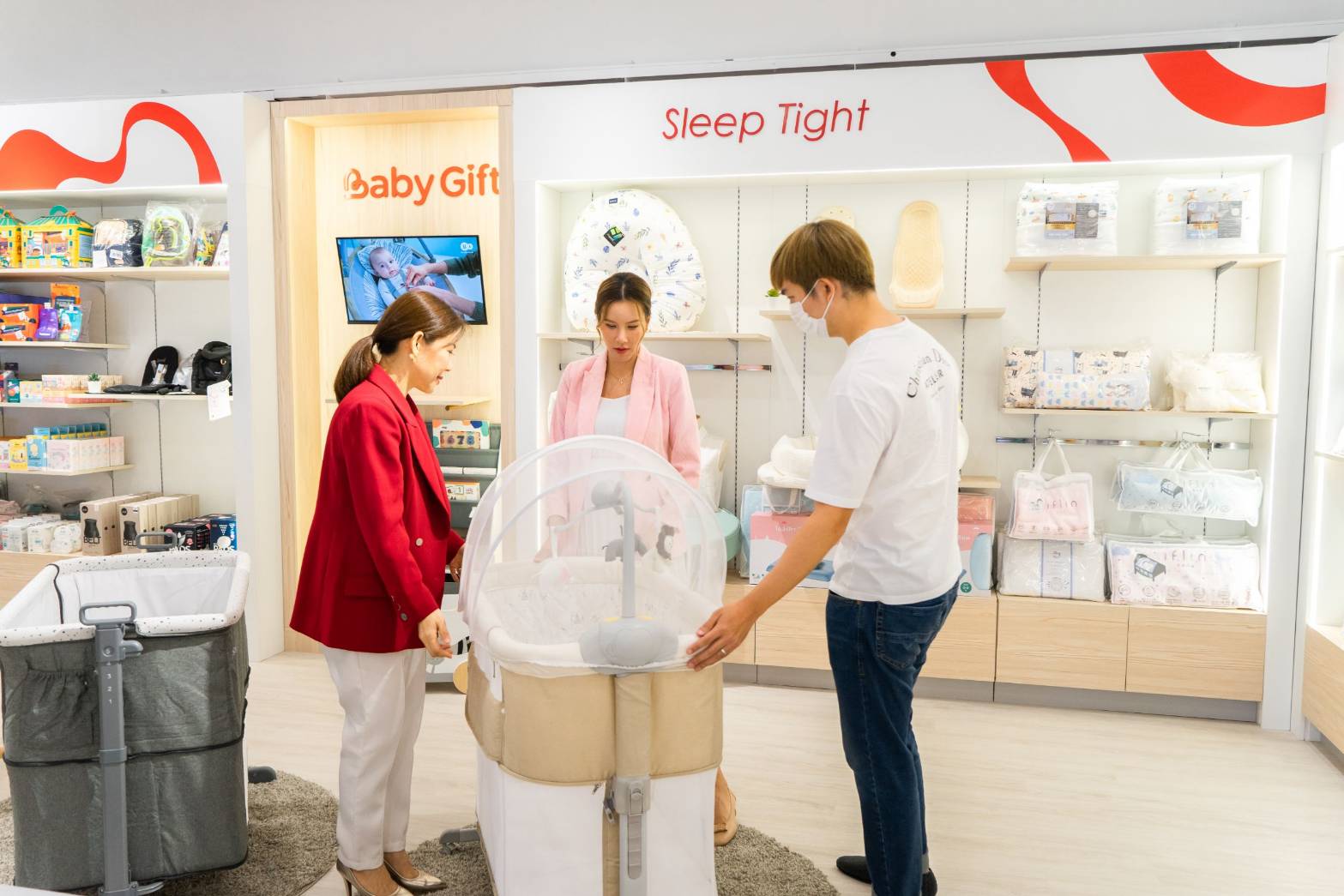 “ตื่นเต้นมาก หาข้อมูลมาก่อน ว่าของใช้เด็กจะต้องมีอะไรบ้าง แต่เรายังไม่มีอะไรเลยสักอย่างหนึ่ง ก็มุ่งตรงมาที่ เบบี้ กิ๊ฟ (Baby Gift) เลย คิดว่ามาที่นี่ได้ครบแน่นอน คือของบางอย่างเราก็ไม่รู้ เช่น คาร์ซีทที่ได้มาตราฐานและปลอดภัยจริงๆ ควรจะใช้แบบไหน ที่จะปลอดภัยกับลูก และที่สำคัญเขาต้องสบายตัวด้วย พี่พนักงานเขาก็แนะนำดีมาก ตั้งแต่การเตรียมตัวตอนที่น้องยังอยู่ในท้อง ตอนไปคลอด แล้วก็ตอนน้องออกมา ว่าจะเลี้ยงน้องยังไง วิธีการอาบน้ำ เครื่องปั๊มนมก็มีหลายแบบมาก เขาเหมือนเปิดโลกให้คุณแม่ค่ะ”