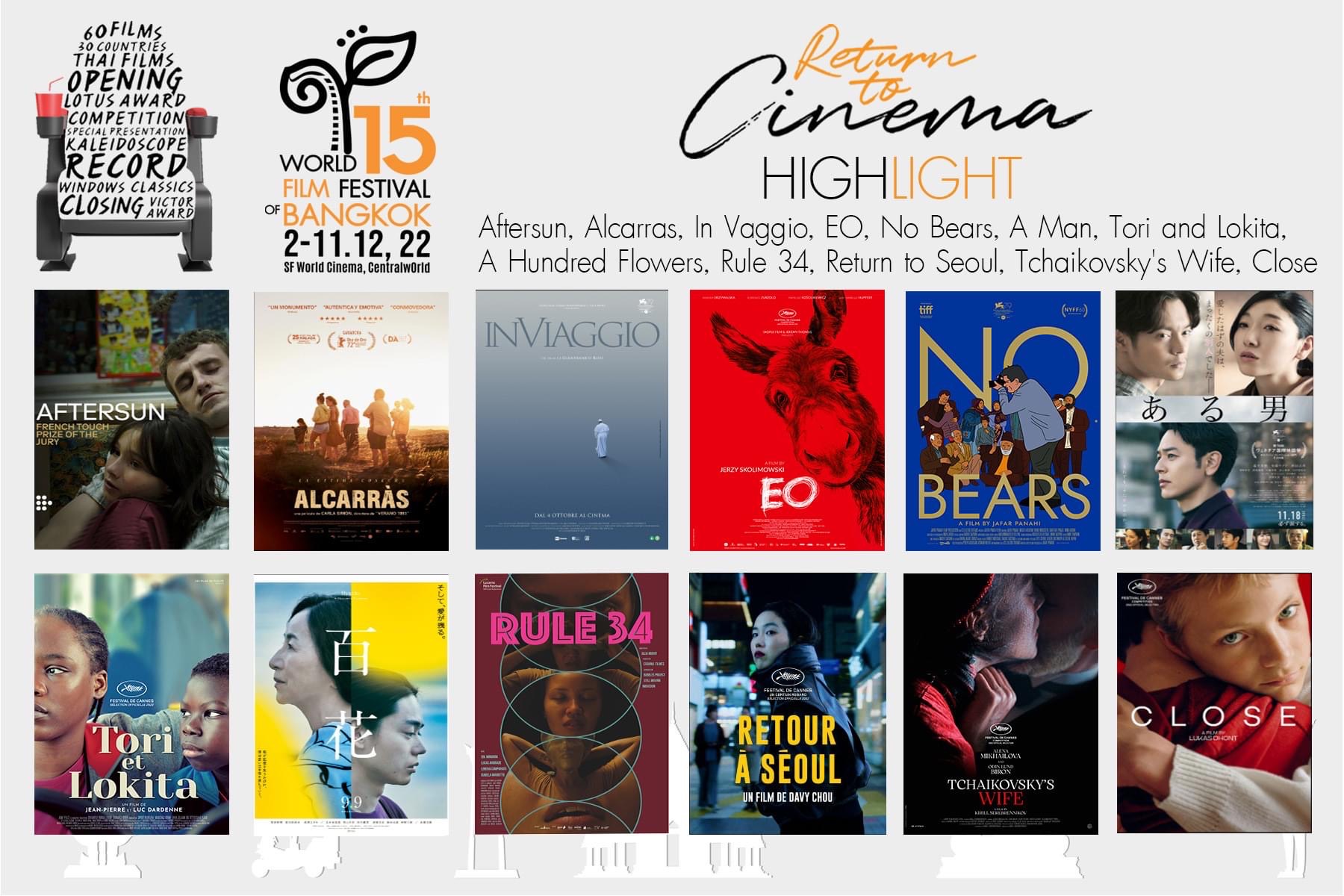 กระทรวงวัฒนธรรม ร่วมกับ กรุงเทพมหานคร, เนชั่น กรุ๊ป, บริษัท เอส เอฟ คอร์ปอเรชั่น จำกัด(มหาชน), สำนักงานกองทุนพัฒนาสื่อปลอดภัยและสร้างสรรค์ และ การบินไทย จัดงาน “เทศกาลภาพยนตร์โลกแห่งกรุงเทพ ครั้งที่ 15 (The 15th World Film Festival of Bangkok)” หนึ่งในเทศกาลภาพยนตร์ที่ใหญ่ที่สุดและจัดมาอย่างยาวนานของประเทศไทย คัดสรรภาพยนตร์คุณภาพจากทั่วโลก อาทิ AFTERSUN จากประเทศอังกฤษและสหรัฐอเมริกา, ALCARRÀS จากประเทศสเปนและอิตาลี, IN VIAGGIO จากประเทศอิตาลี, EO จากประเทศโปแลนด์และฝรั่งเศส, NO BEARS จากประเทศอิหร่าน, A MAN จากประเทศญี่ปุ่น และอีกมากมายจำนวนกว่า 66 เรื่อง มาให้เลือกรับชมกันอย่างเต็มอิ่มพร้อมบทบรรยายภาษาไทยทุกเรื่อง ตั้งแต่วันที่ 2-11 ธันวาคม 2565 ในราคาเริ่มต้นที่นั่งละ 130 บาท ณ โรงภาพยนตร์ เอส เอฟ เวิลด์ ซีเนม่า ศูนย์การค้าเซ็นทรัลเวิลด์