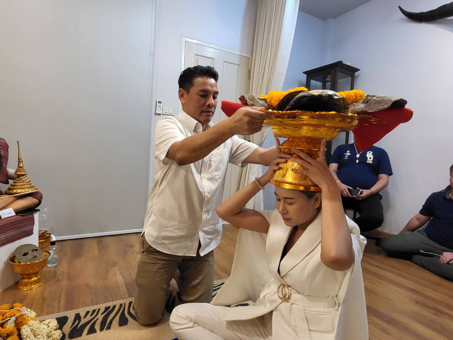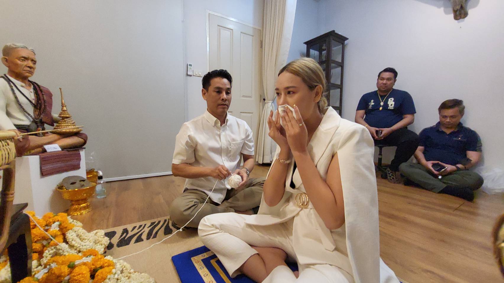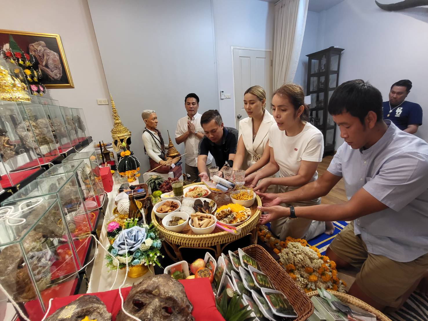 หลังจากนั้นแซนวิชและทีมงานสินค้า ก็ได้ถวายของ ด้าน “จิลล์ จักรพงศ์” ก็ได้ให้แซนวิชรับพลังจากหนังหน้าครู โดยการโยงสายสิญจน์จากหนังหน้าครูทั้ง 75 หนังหน้า มาที่ศีรษะและหลับตานั่งสมาธิอธิษฐานบอกเล่าเรื่องราวให้หนังหน้าครูฟัง แซนวิชนั่งได้ไม่ถึง 5 นาที จู่ๆ เจ้าตัวก็เกิดอาการสะอึกสะอื้นและร้องไห้ออกมาอย่างหนัก ร้องไห้ไม่หยุด จนจิลล์ จักรพงศ์ ต้องเข้ามาเรียกสติ บอกให้กลับมาๆ ค่อยๆ กลับมา ค่อยๆ ลืมตา….