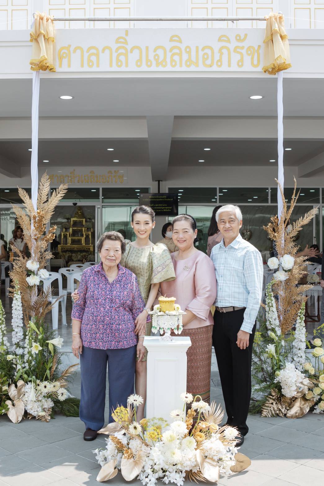 โดย คุณสริศราว์ ลิ่วเฉลิมวงศ์ กล่าวว่า ส่วนตัวตนเอง เติบโตมากับครอบครัวสายบุญ ทำให้ชอบทำบุญมาโดยตลอด ในครั้งนี้ถือว่าเป็นโอกาสที่ดีที่ได้ทำบุญใหญ่สร้างศาลาลิ่วเฉลิมอภิรัช ถวายวัดมกุฏกษัตริยาราม ร่วมกับคุณพชร โดยชื่อศาลา “ลิ่วเฉลิมอภิรัช” นั้นได้ตั้งจากการนำนามสกุล “อภิรัชเหมภาส” รวมเข้ากับนามสกุลของคุณพชร ลิ่วเฉลิมวงศ์ โดยการก่อสร้างศาลาลิ่วเฉลิมอภิรัชใช้ระยะเวลาการก่อสร้างประมาณ 1 ปี โดยมีหลวงพ่อณรงค์ เป็นผู้ดูแลควบคุมการก่อสร้างของบริษัทรับเหมาจนแล้วเสร็จสมบูรณ์อย่างสวยงาม ศาลาฯ มีจำนวน 2 ชั้น ภายในตัวศาลาได้ติดตั้งแอร์ทั้งหมด การสร้างศาลาฯ ถวายในครั้งนี้ก็หวังว่าศาลาฯ แห่งนี้จะได้เป็นสาธารณะประโยชน์ต่อคนไทยทุกคนสืบไป