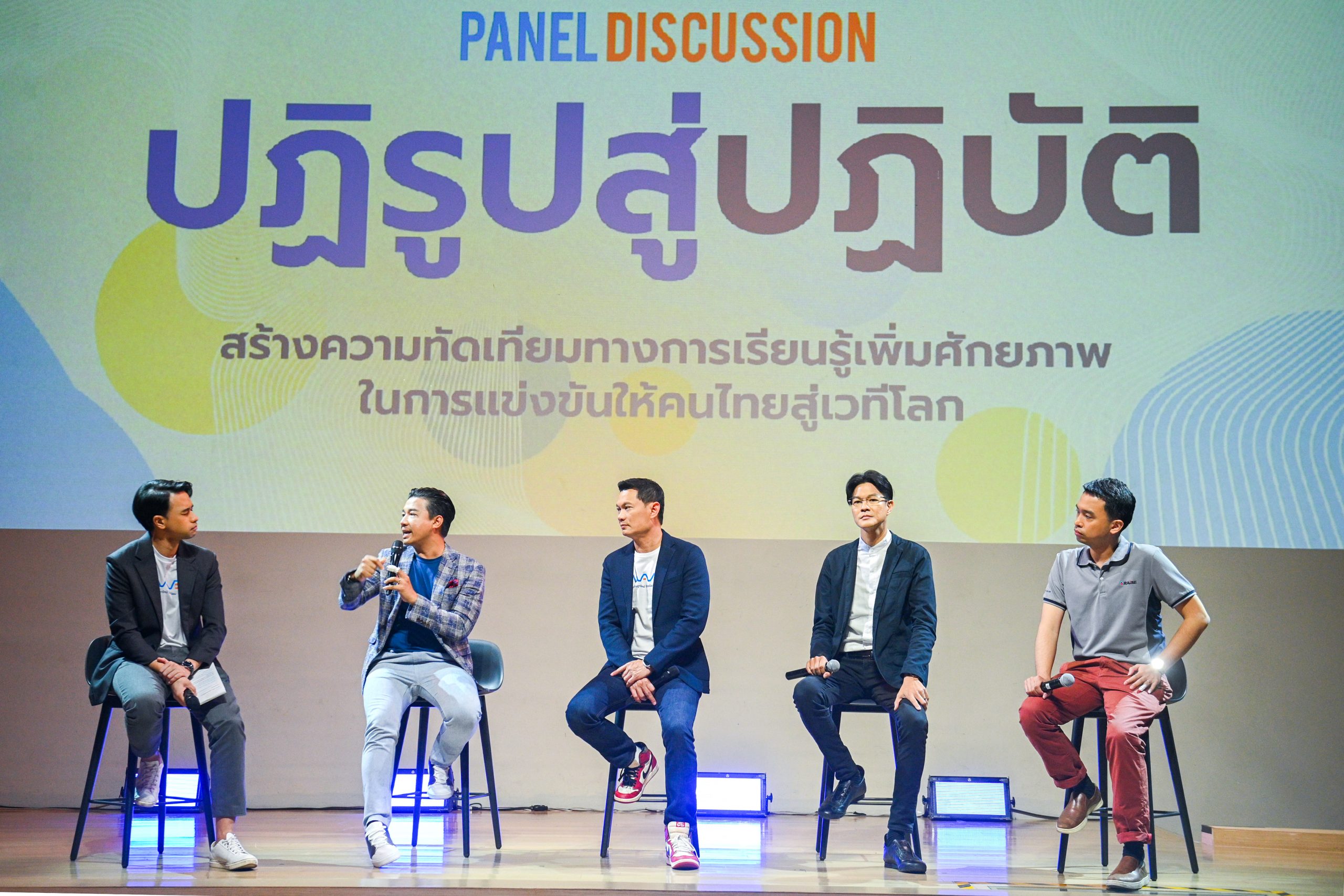 ขณะที่เวที Panel Discussion “ปฏิรูปสู่ปฏิบัติ” สร้างความทัดเทียมทางการเรียนรู้เพิ่มศักยภาพในการแข่งขันให้คนไทยสู่เวทีโลกระดมแนวคิดดุเดือดเข้มข้นไม่แพ้กัน นำโดยวิทยากร