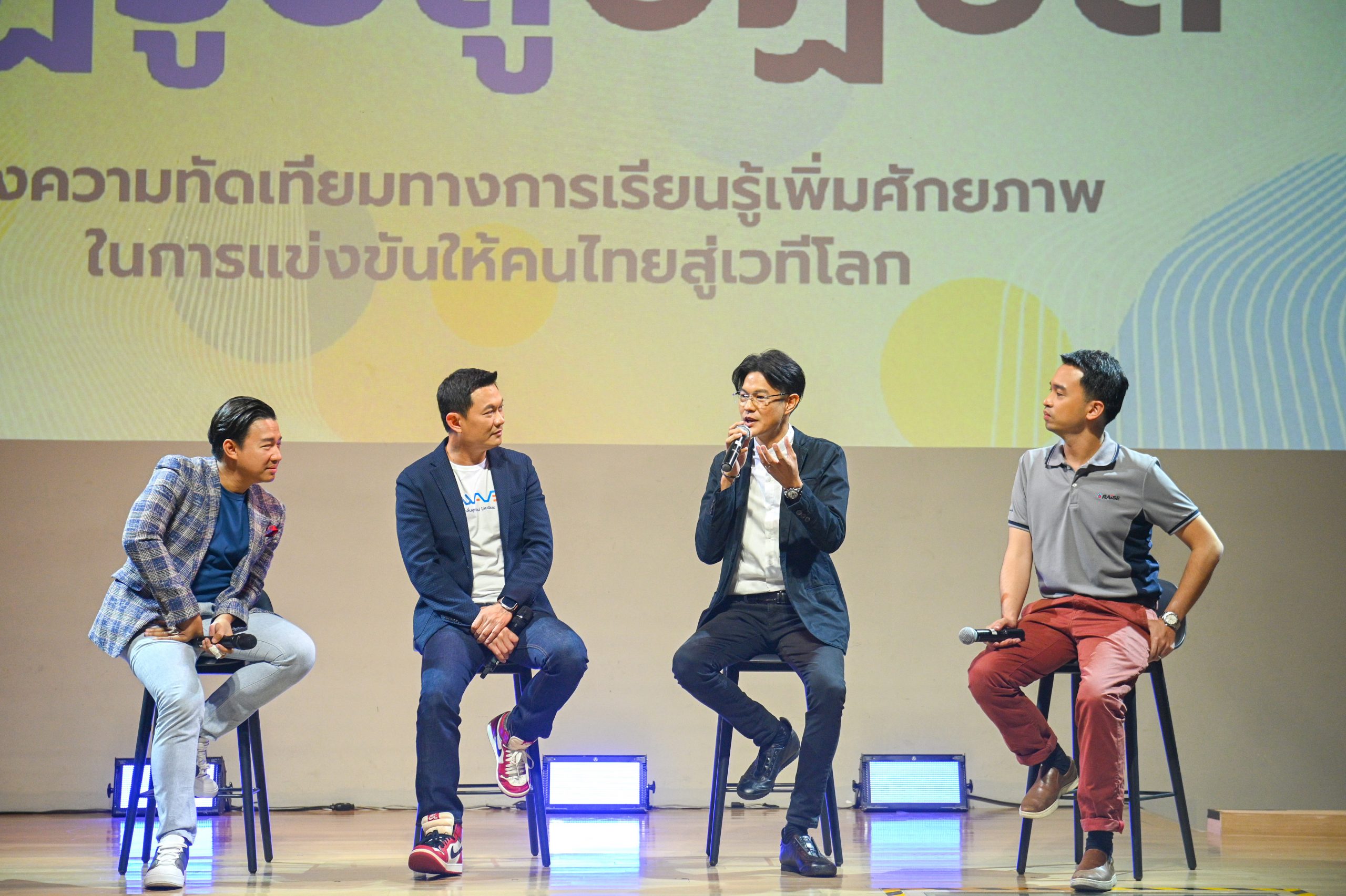 หัวข้อ THAI รศ.ดร.สมภพ มานะรังสรรค์ กล่าวถึงการศึกษาว่าเป็นกุญแจในการสร้างคน เป็นปัจจัยสำคัญในการผลักดันให้ประเทศโดดเด่นในทุกเรื่อง จึงต้องเสริมทักษะในด้านต่าง ๆ อาทิ ทักษะฝีมือ ภูมิปัญญา และคุณธรรม รวมถึงด้านเทคโนโลยี การเงิน ภาษา ไปจนถึงทักษะการวิเคราะห์ แก้ปัญหา ความคิดสร้างสรรค์ และความเป็นผู้นำใน หัวข้อ TECH คุณโอชวิน จิรโสตติกุล มองว่า จุดเริ่มของการเลือกว่าจะศึกษาสิ่งใด ต้องประเมินจาก 3 แกนหลัก ได้แก่ ความถนัดของตัวเอง, ตลาดงานในปัจจุบัน และทิศทางในอนาคต ทุกวันนี้มีปัญหาเรื่องเรียนจบแล้วทำงานไม่ตรงสายที่เรียนมา หรือเปลี่ยนงานบ่อย จึงชวนตั้งคำถามว่าจะทำอย่างไรให้คนรุ่นใหม่รู้ตัวว่าชอบหรือถนัดอะไร เพื่อพัฒนาทักษะต่าง ๆ ให้สอดคล้องกับการเปลี่ยนแปลงของโลกโดยเฉพาะในด้านเทคโนโลยีได้