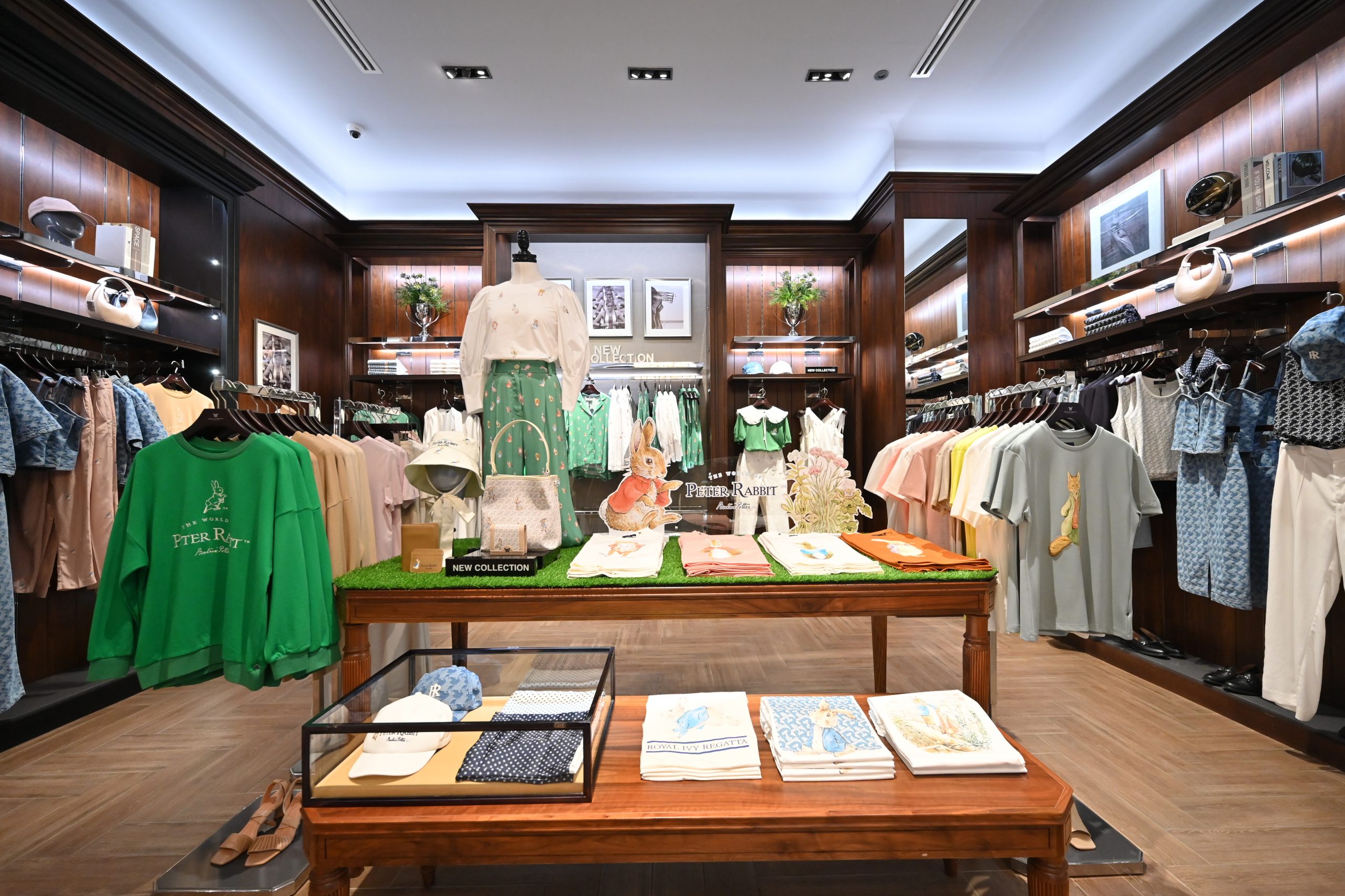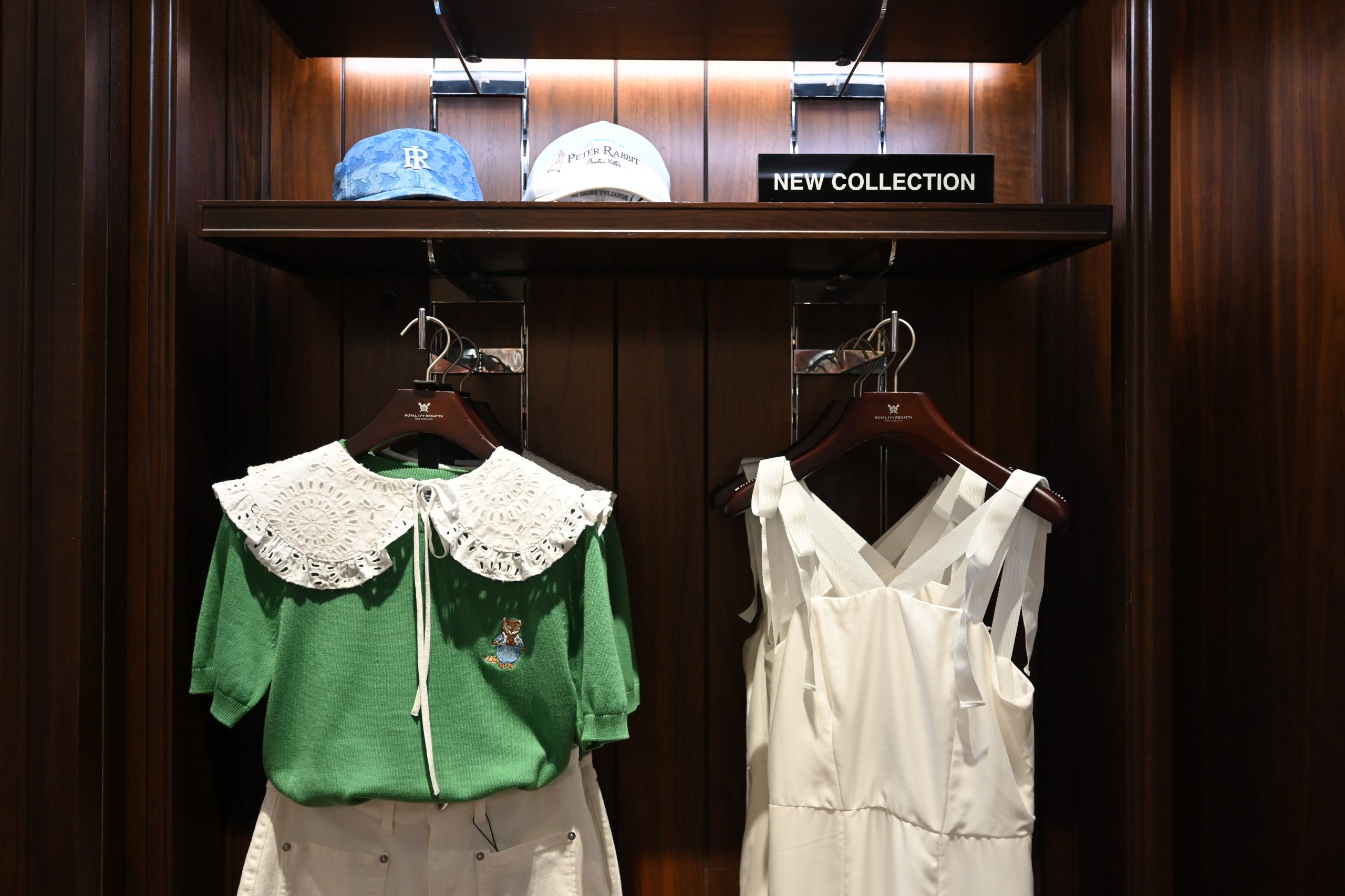 โดยคอลเลคชั่น “ROYAL IVY REGATTA X PETER RABBIT” ของผู้หญิงจะมาในโทนสียอดนิยมทั้งสีเขียว สีขาว สีเบจ และไอเทมที่เป็นผ้าเดนิม ให้ได้เลือกสวมใสได้หลากหลายโอกาส สามารถหยิบมาครีเอทออฟฟิศลุค หรือออกเดินทางท่องเที่ยวในช่วงซัมเมอร์ กับไอเทมที่เป็นไฮไลท์อย่างเสื้อ Halter Neck สีเขียวจับคู่กับกางเกงขายาวหรือกระโปรงพลีสลาย Peter Rabbit รวมทั้งไอเทมโทนสีเบจผ้า Viscose เพิ่มความแกลมด้วยลายปักโมโนแกรมสีเงินให้ความแวววาว ที่มาพร้อมกับลาย Peter Rabbit ตอบโจทย์ในทุกไลฟ์สไตล์แบบ day-to-night
