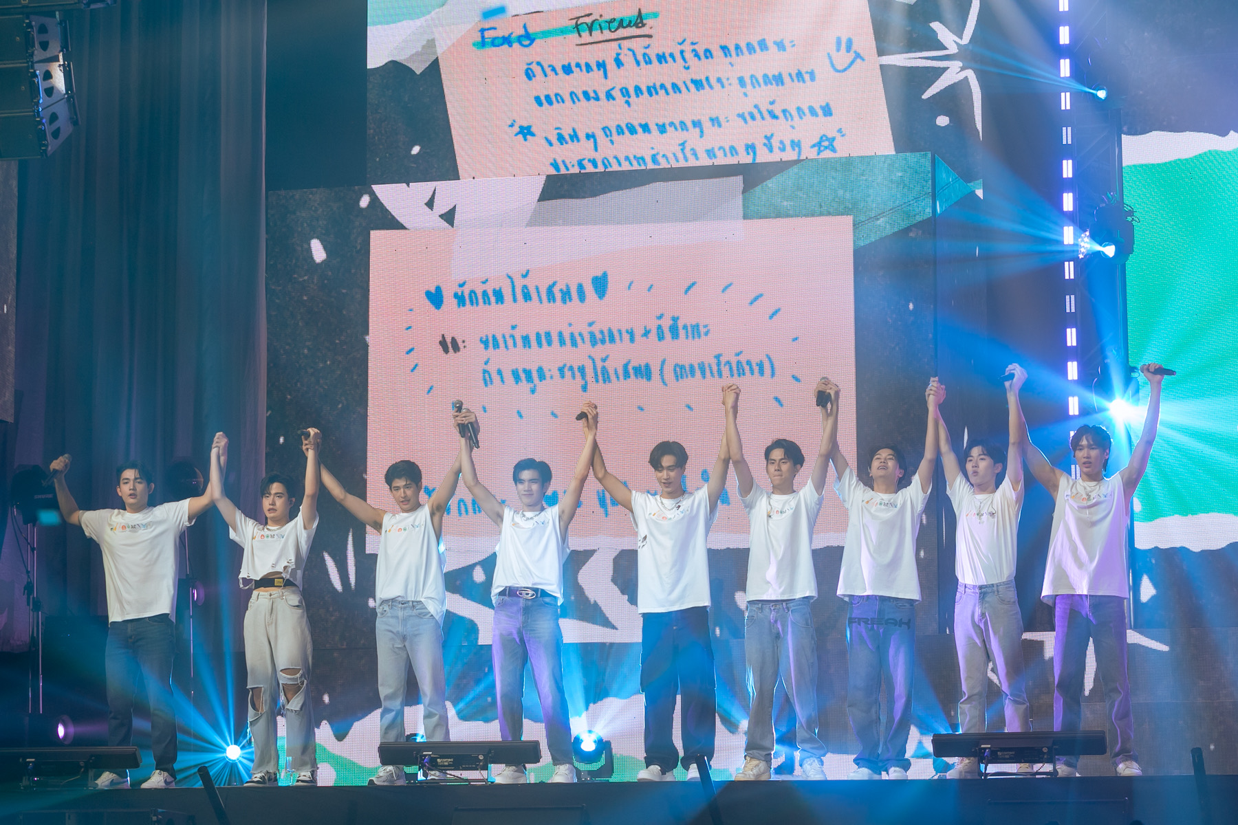 ก่อนจะส่งโชว์ให้ “เจมีไนน์-โฟร์ท” คว้าไมค์ร้องเพลง “ข้างกัน” สุดละมุน พร้อมพาแฟนๆ ไปสนุกสุดมันส์กับเพลง “เพื่อนเล่น ไม่เล่นเพื่อน” จาก “เจมีไนน์-โฟร์ท-สตางค์-วินนี่-มาร์ค-ฟอร์ด-กัปตัน-พร้อม” ต่อด้วยเพลง “น้ำลาย” ที่เรียกกรี๊ดดังลั่นฮอลล์ และมันส์กันต่อกับเมดเลย์สนุกๆ จาก “มาร์ค-ฟอร์ด-กัปตัน-พร้อม-วินนี่” ในเพลง “ปล่อยจอย” และโยกไปกับเพลง “คนไม่คุย” (Silent Mode) จาก “เจมีไนน์-โฟร์ท-สตางค์-อั๋น” จากนั้นฟินจิ้นกระจายกับโชว์ของ “มาร์ค-ฟอร์ด” ในเพลง “ชอบป่ะเนี่ย” (Can I Call You Mine) ต่อด้วย “สตางค์-วินนี่” กับเพลง “รักนะเว้ย” และอมยิ้มไปกับ “เจมีไนน์-โฟร์ท” ที่ควงคู่ร้องเพลง “เขินให้หน่อย” (You’re Blushing?) เพลงคู่ล่าสุด