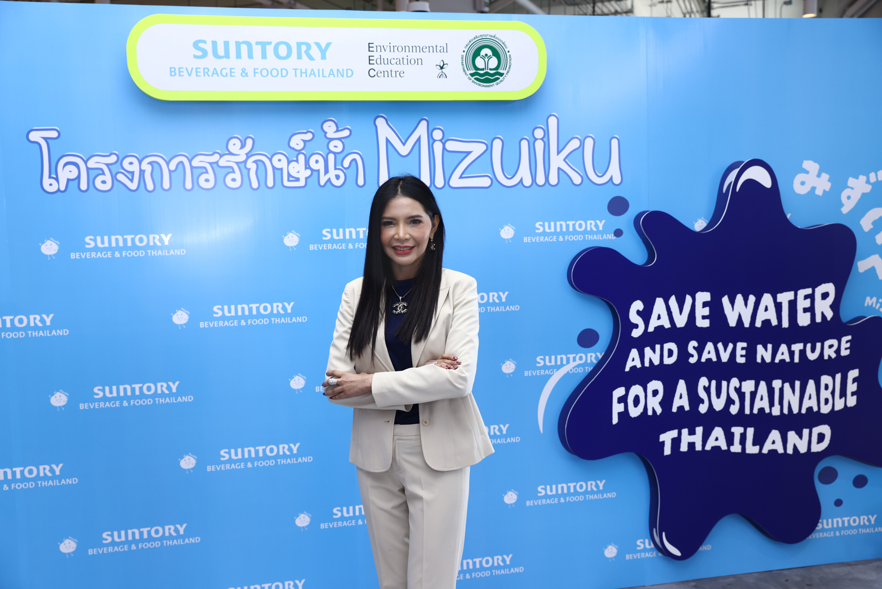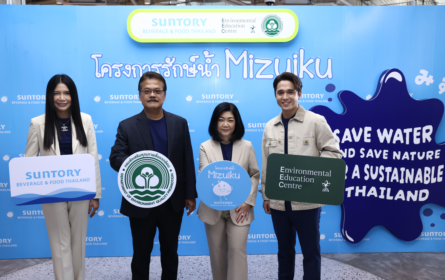 ในงานแถลงข่าว สมศักดิ์ สรรพโกศลกุล อธิบดีกรมส่งเสริมคุณภาพสิ่งแวดล้อม กระทรวง ทรัพยากรธรรมชาติและสิ่งแวดล้อม และ ณัฏฐณิชา วรวรรณเศรษฐ์ รองประธานอาวุโสฝ่ายสนับสนุนการบริหารงานในองค์กร ซันโทรี่ เบเวอเรจ แอนด์ ฟู้ด ประเทศไทยและอินโดไชน่า ร่วมกันกล่าวเปิดงาน โดยอธิบดีกรมส่งเสริมคุณภาพสิ่งแวดล้อมยังได้เปิดเผยความมุ่งมั่น ต่อธรรมชาติ และสิ่งแวดล้อมในการอนุรักษ์และฟื้นฟูสภาพนํ้า เพื่อรักษาแหล่งนํ้าให้สะอาด และมีอย่างพอเพียงสำหรับคนรุ่นหลัง ร่วมกับ มธุวลี สถิตยุทธการ ผู้อำนวยการฝ่ายรัฐกิจและองค์กรสัมพันธ์ ซันโทรี่ เบเวอเรจ แอนด์ ฟู้ด ประเทศไทยและอินโด ไชน่า และ อเล็กซานเดอร์ ไซมอน เรนเดลล์ ประธานกรรมการบริหาร ศูนย์สิ่งแวดล้อมศึกษา หรือ Environmental Education Centre (EEC)
