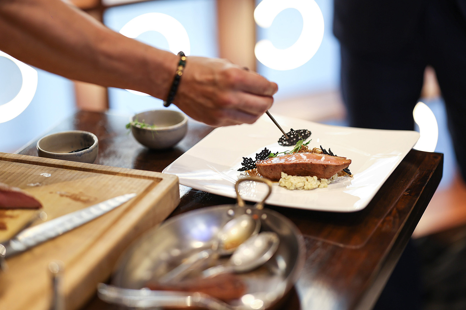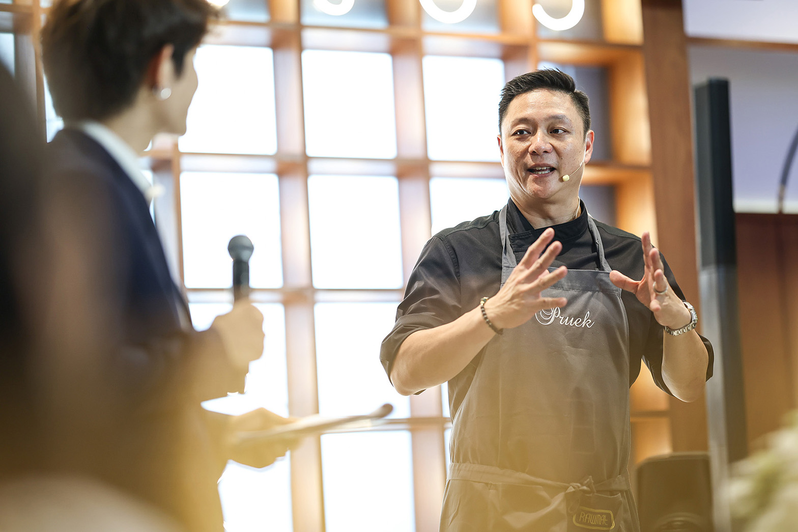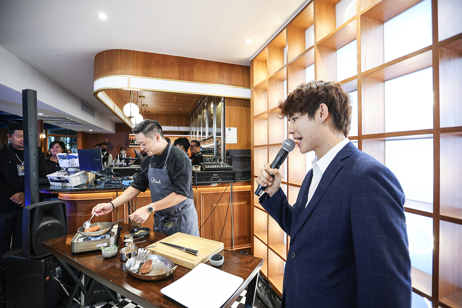 งานนำเสนอด้วยไฮไลต์สำคัญได้แก่ “Chef Show” การนำเสนอการปรุงเมนูที่รังสรรค์ขึ้นเฉพาะงานนี้ต่อแขกผู้มีเกียรติ ในเมนูที่มีชื่อว่า “Roasted Duck Breast, Crispy Duck Confit, Emulsified Umeshu.” โดยเมนูนี้เชฟพฤกษ์ได้แรงบันดาลใจให้ดีไซน์มาจากบทเพลงพิเศษในชื่อ “อย่าแตกสลายเพราะใครเลย” ที่ขับร้องโดย คุณจี๊บ เทพอาจ กวินอนันต์ ในฐานะศิลปิน JEEP TK featuring SARAH SALOLA และแขกผู้มีเกียรติก็ได้รับฟังเพลงนี้กันแบบสดๆ จากศิลปินทั้ง 2 ท่าน เป็นอีกหนึ่งไฮไลต์สำคัญของงาน
