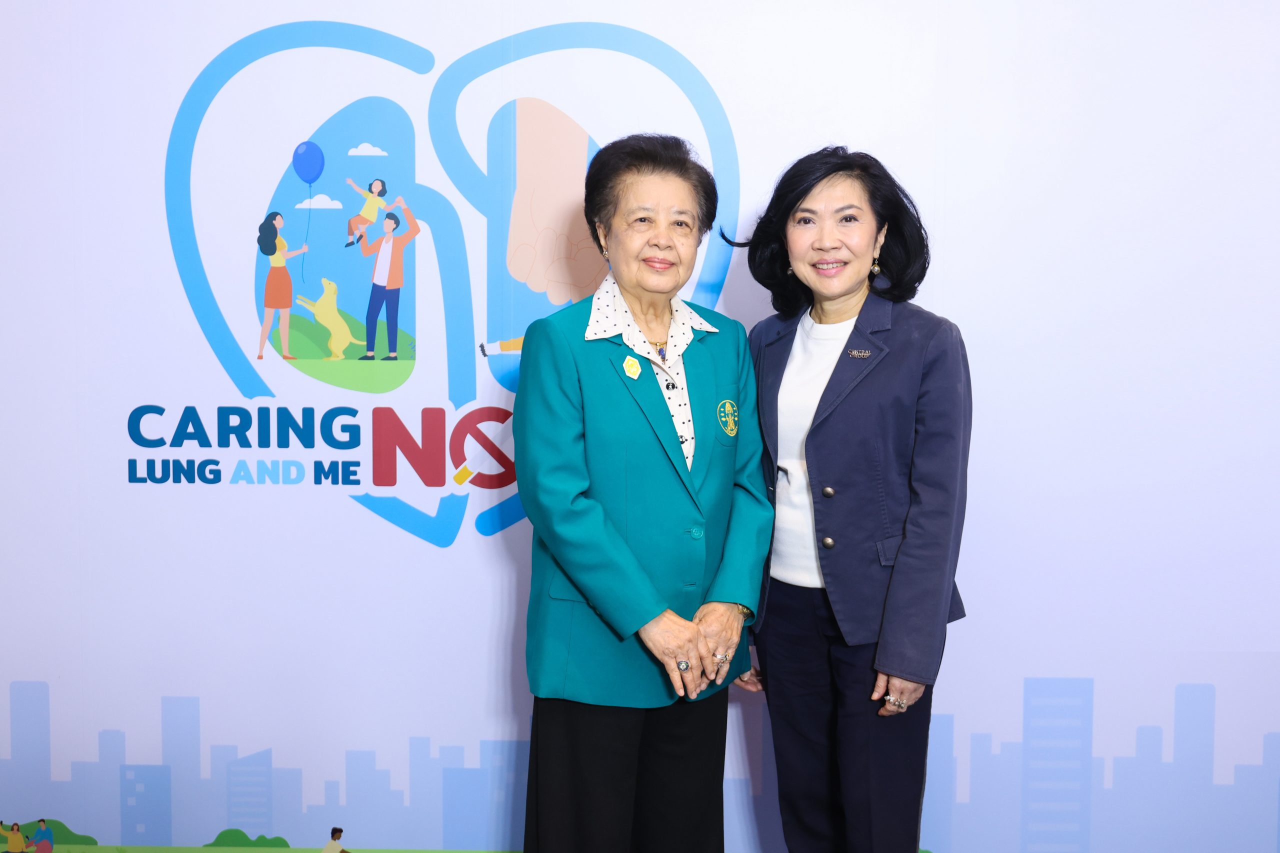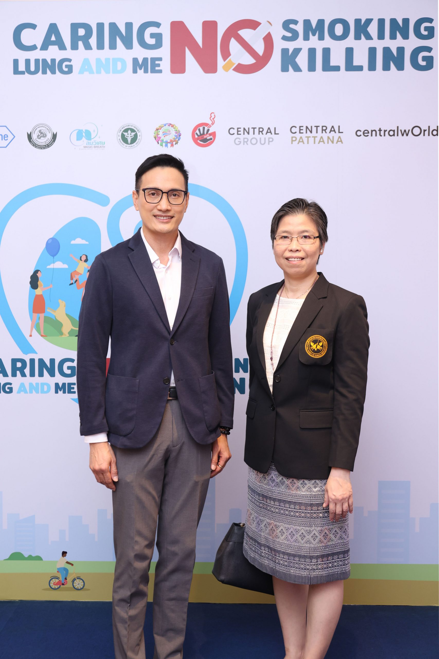 ภายในงาน World No Tobacco Day 2023: Caring Lung And Me, No Smoking, No Killing นำโดย รศ.นพ.ดร. วิโรจน์ ศรีอุฬารพงศ์ ประธานคณะทำงานมะเร็งปอดเพื่อคนไทย สุพัตรา จิราธิวัฒน์ รองกรรมการผู้จัดการใหญ่ ฝ่ายองค์กรสัมพันธ์และภาพลักษณ์ กลุ่มเซ็นทรัล โดยได้รับเกียรติจาก ศ.เกียรติคุณ พ.ญ.สมศรี เผ่าสวัสดิ์ ประธานสมาพันธ์เครือข่ายแห่งชาติ เพื่อสังคมไทยปลอดบุหรี่ ประธานในพิธีร่วมเล่าถึงวัตถุประสงค์และที่มาของการจัดงาน พร้อมรับฟังเสวนาในหัวข้อ “บุหรี่กับสังคมไทย และโอกาสเสี่ยงมะเร็งปอด” โดย ชัชชาติ สิทธิพันธุ์ ผู้ว่าราชการกรุงเทพมหานคร และ รศ.นพ. ฉันชาย สิทธิพันธุ์ คณบดีคณะแพทยศาสตร์ จุฬาลงกรณ์มหาวิทยาลัย เพื่อสร้างความตระหนักรู้ถึงพิษภัยของบุหรี่และแนะวิธีป้องกันและการดูแลสุขภาพปอดจากแพทย์ผู้เชี่ยวชาญ มะเร็งปอดสามารถรักษาให้หายได้หากตรวจพบเร็ว