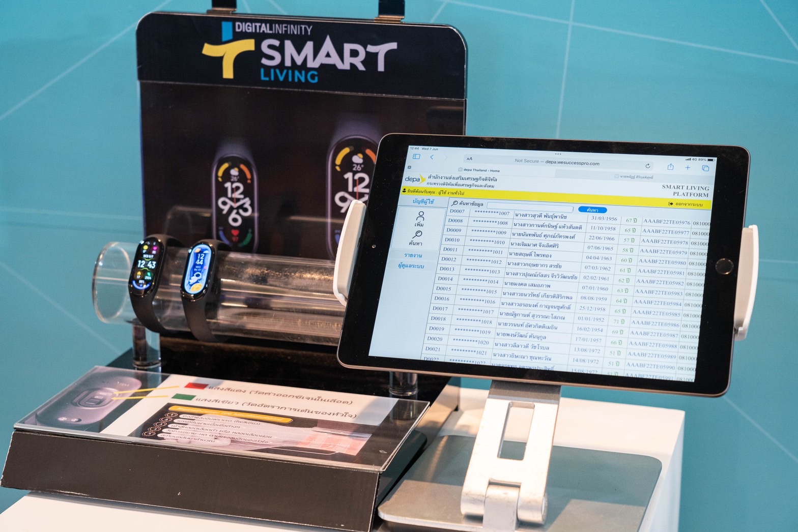 ด้านการดำรงชีวิตอัจฉริยะ (Smart Living) มุ่งเน้นการยกระดับคุณภาพชีวิตประชาชนรองรับสังคมผู้สูงวัยด้วยเทคโนโลยีเพื่อสุขภาพ ซึ่งจะดำเนินการร่วมกับอาสาสมัครสาธารณสุขประจำหมู่บ้าน (อสม.) ด้วยการนำอุปกรณ์จัดเก็บข้อมูลสุขภาพมาประยุกต์ใช้บันทึก จัดเก็บ เชื่อมโยง และตรวจสอบข้อมูลสุขภาพของผู้สูงอายุ รวมถึงผู้ป่วยที่มีภาวะพึ่งพิง เมื่ออุปกรณ์ตรวจพบสัญญาณอันตรายที่ส่งผลต่อสุขภาพ ระบบจะแจ้งเตือนให้เข้าช่วยเหลือได้ทันท่วงที ทำให้สามารถติดตามดูแลได้อย่างใกล้ชิด รวดเร็ว แม่นยำ และทั่วถึง
