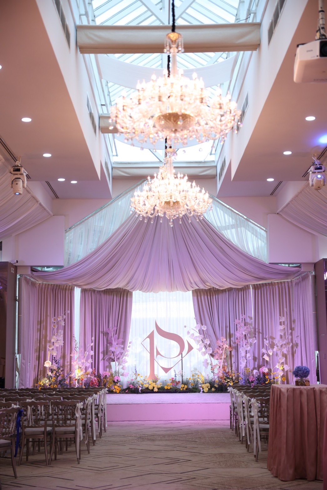 นอกเหนือจากพื้นที่จัดงานที่เป็น Outdoor แล้ว พื้นที่จัดงานที่เป็นห้องฟังก์ชั่นต่างๆ ก็มีความโดดเด่นไม่แพ้กัน ไม่ว่าจะเป็น ห้องคอเทเล่ (Cortile) ห้องที่ไว้สำหรับรองรับแขกวีไอพี และเป็นห้องที่สามารถมองพื้นที่โดยรอบได้ชัดเจน เป็นจุดที่สามารถชมน้ำพุเต้นระบำได้อย่างใกล้ชิดและสวยที่สุด ห้องทราเวอน่า(Traverna) เป็นห้องสำหรับใช้ทำพิธีต่าง ๆ ในช่วงเช้า หรือสามารถปรับเปลี่ยนเป็นห้องสำหรับรับประทานอาหารได้อีกด้วย นอกจากนี้ยังมีห้องรับรอง บาซิลิกา (Basilica) หรือเรือนกลาสเฮาส์ที่ใช้เป็นสถานที่จัดงานในครั้งนี้ กับสถาปัตยกรรมการตกแต่งแบบห้องกระจกใสสไตล์ยุโรป ให้แสงสว่างธรรมชาติ ที่สามารถรองรับผู้ร่วมงานได้มากกว่า 1,000 คน พร้อมดื่มด่ำไปกับบรรยากาศสุดโรแมนติกแบบเอ็กซ์คลูซีฟ ตั้งแต่บูธกิจกรรมจาก Outlet ต่างๆของโพธาลัย ทั้งกอล์ฟ ฟิตเนส และสปา ไปจนถึงบริการอาหารเครื่องดื่มตลอดงาน ร่วมด้วยพันธมิตรชั้นนำด้านการจัดงานวิวาห์แบบครบวงจร อาทิเช่น แบบครบจบในที่เดียว