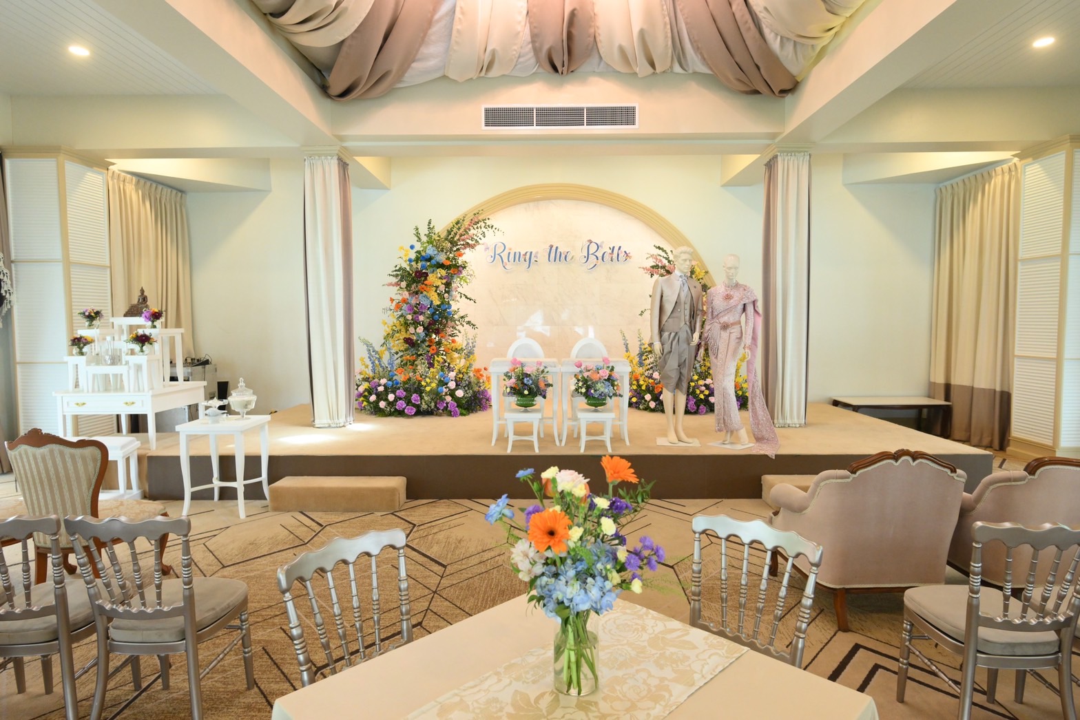 ภายในงานได้เนรมิตพื้นที่กว่า 8 ไร่ ให้เสมือนงานแต่งงานที่จัดขึ้นจริง เมื่อก้าวเข้ามาในงานจะรู้สึกถึงบรรยากาศอันอบอุ่นที่แฝงไปด้วยความสดใสจากการตกแต่งโดยใช้โทนสีพาสเทล ประดับประดาด้วยดอกไม้ประดิษฐ์ขนาดโอเวอร์ไซส์ ที่โอบล้อมบริเวณห้องจัดงานให้อิ่มเอมไปด้วยกลิ่นอายของความรักที่หอมหวาน โดยแต่ละจุดถูกนำเสนอออกมาได้โดดเด่น ภายใต้ธีมงานในปีนี้ คือ “Ring the Bells” สื่อถึงหอระฆังอันเป็นอัตลักษณ์เฉพาะของการจัดงานที่โพธาลัย นอกจากนี้ยังมีอีกหนึ่งโซนที่เป็นไฮไลท์ ที่เรียกว่า Spanish Step เหมาะสำหรับใช้ทำพิธีการต่าง ๆ หรือใช้เปิดตัวบ่าวสาว ซึ่งบันไดนี้จำลองมาจาก Spanish Step ของจริงจากประเทศอิตาลี ที่ได้รับการขนานนามว่าเป็นบันไดที่กว้างและยาวที่สุดในทวีปยุโรป