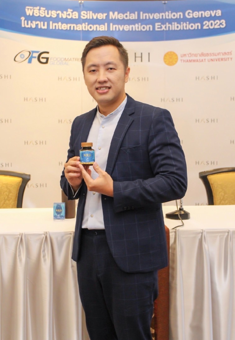 อย่างไรก็ดี เภสัชกรเอ็กซ์ กล่าวเสริมว่า สำหรับผมส่วนตัว ผมมีความเชื่อเสมอว่าคนไทยเก่งไม่แพ้ชาติใดในโลก ซึ่งครั้งนี้ NRD By HASHI เป็นหนึ่งหลักฐานยืนยันว่า อาหารเสริมที่พัฒนาโดยคนไทย ผลิตในเมืองไทย โดยบริษัทฮาชิแลบอราทอรี่ (ประเทศไทย) ร่วมมือกับทีมที่แข็งแกร่ง ทั้ง มหาวิทยาลัยธรรมศาสตร์ และ FG Global สามารถผ่านการยอมรับและได้รับรางวัลระดับโลก ที่งาน invention เจนีวา 2023 ที่สวิตเซอร์แลนด์ ซึ่งเป็นเวทีที่นักวิจัยทั่วโลกใฝ่ฝันรางวัลจากที่นี่ เหล่านี้สะท้อนถึงคุณภาพ มาตรฐาน ในทุกขั้นตอน ตั้งแต่การคัดสรรสารนวัตกรรมมาเป็นองค์ประกอบ โรงงานผลิตที่ได้มาตรฐานส่งออกยุโรปและ อเมริกา รวมถึงกระบวนการการสื่อสารข้อมูลสินค้าเชิงวิทยาศาสตร์ ผมภูมิใจมากๆครับที่ได้นำสินค้าไทย เป็นตัวแทนประเทศไทย ในที่นี้ผมต้องขอขอบคุณทาง สำนักงานวิจัยแห่งชาติ (วช.) ที่เล็งเห็นความพิเศษของ NRD By HASHI ให้โอกาสเราได้โกอินเตอร์ ในนามประเทศไทยไปคว้ารางวัล เพื่อเป็นของขวัญให้คนไทยครับ
