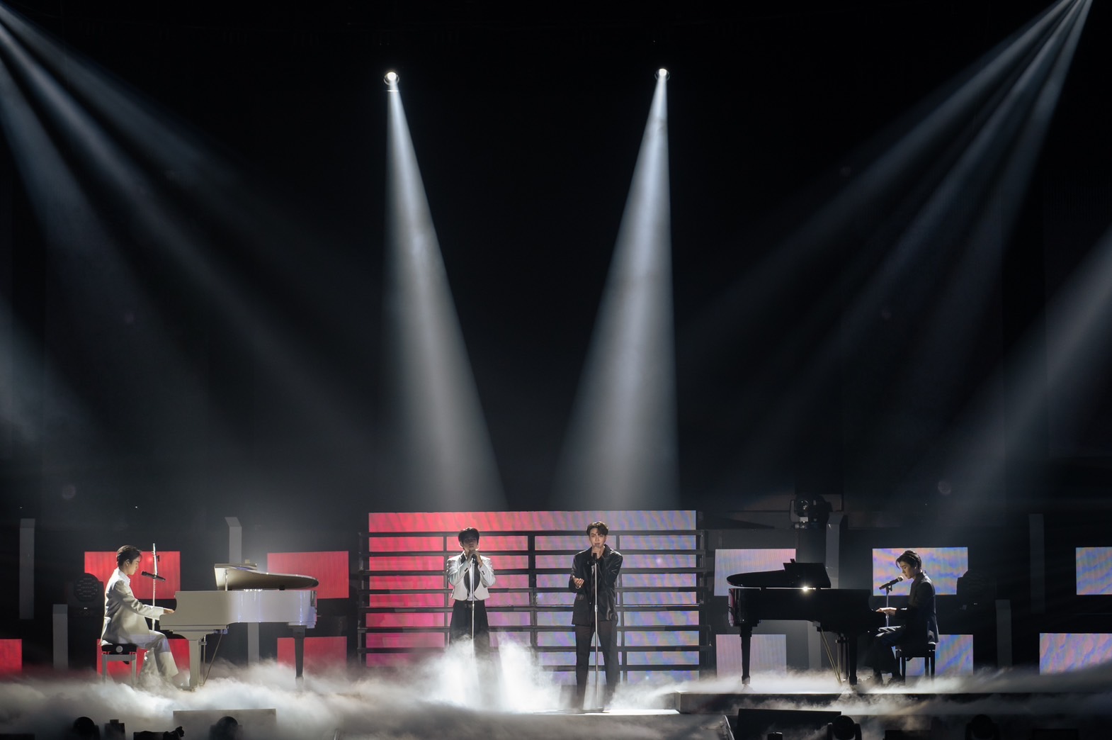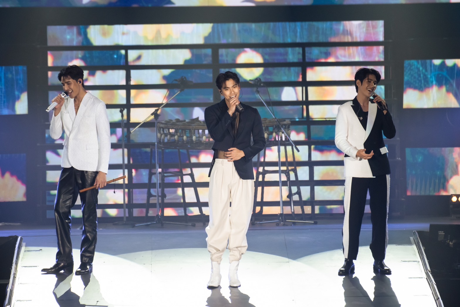 เริ่มต้นด้วย “เฟิร์ส-ข้าวตัง” ที่คว้าไมค์มาร้องเพลงเพราะฟังสบายในสไตล์ Easy Listening “ฟังดีดี” ก่อนจะปล่อยพลังเสียงอันนุ่มนวลผ่านเพลง “ยิ้มทั้งน้ำตา” ทำเอาแฟนๆ อินตามกันเป็นแถว ก่อนจะเปลี่ยนมู้ดมาสู่ความคลั่งรักกับ “จิมมี่-ซี” ในเพลง “ซูลูปาก้า ตาปาเฮ้” แล้วจากนั้นก็มาสำลักความหวานขั้นสุดกันต่อเนื่องในเพลง “ใครคลั่งรักกว่ากัน” ก่อนที่จะถึงคิวของ “จุง-ดัง” ที่หยิบเอาเพลง “Dum Dum” (ดึมดึม) มาปลุกความเป็น R&B ได้พีคสุดพลัง แล้วมาอินกันต่อกับเพลง “ท้องฟ้ากับแสงดาวและสองเรา” ที่ทำเอาแฟนๆ ถึงกับยิ้มเคลิ้มใจฟูอย่างหนักเลยทีเดียว จากนั้นดีกรีความหวานพุ่งทะยานอย่างต่อเนื่องไปกับ “เอิร์ท-มิกซ์” ที่คว้าไมค์มาถ่ายทอดเพลง “รักเธอนิรันดร์” ได้เพราะจับใจ แล้วมาคอนตินิวความโรแมนติกกันในเพลง “ผาเคียงดาว” ก่อนจะปรับสวิทซ์เปลี่ยนโหมดไปสู่พาร์ทความสนุกเอ็นจอยในเพลง “ช่วยไม่ได้” จาก 4 หนุ่ม “จิมมี่-ซี-ฟอส-บุ๊ค” แล้วส่งต่อไมค์ให้กับ “โอม-นนน-เจมีไนน์-โฟร์ท” ที่แท็กทีมกันมาทั้งร้องเล่นดนตรีสาดความมันส์กันสุดพลังในเพลง “Cinderella”