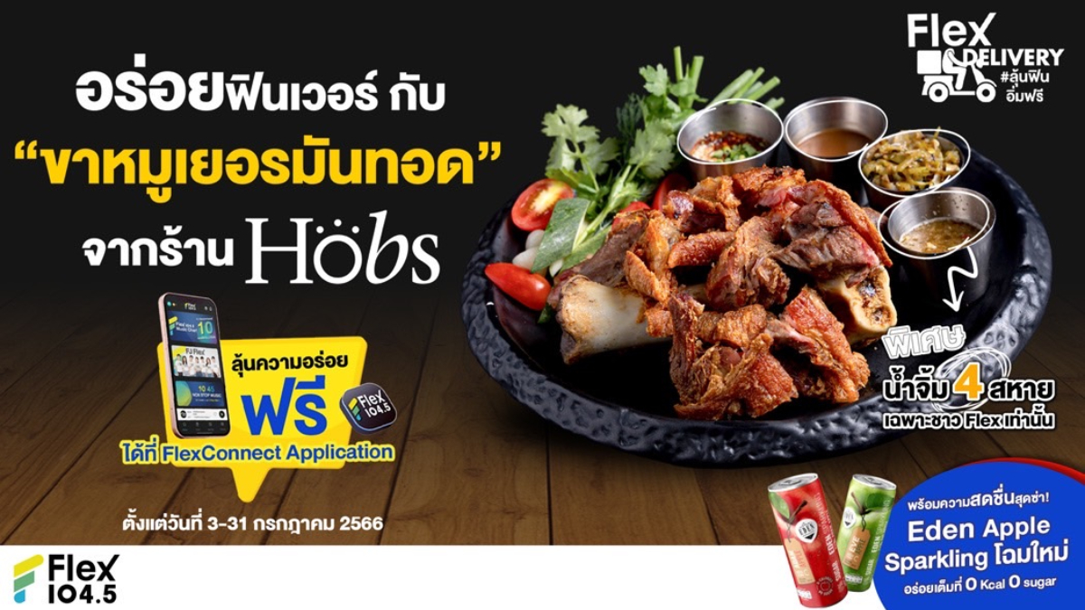 บริษัท เฟล็กซ์ สเตชั่น จำกัด ผู้ผลิตรายการวิทยุ Flex 104.5 Ultimate Sound of Bangkok ของ จี๊บ – เทพอาจ กวินอนันต์ ผู้ก่อตั้ง ที่มี อ้อม – พิยดา อัครเศรณี กรรมการผู้จัดการ นั่งบริหาร จับมือ Hobs Restaurant & Bar จัดกิจกรรมเอาใจผู้ฟังที่รับฟังผ่านดิจิทัลแพลตฟอร์ม FlexConnect ภายใต้แคมเปญ “Flex Delivery” ให้สายฟู้ดดี้และชาวชนแก้วลุ้นฟินอิ่มฟรีในเดือนนี้
