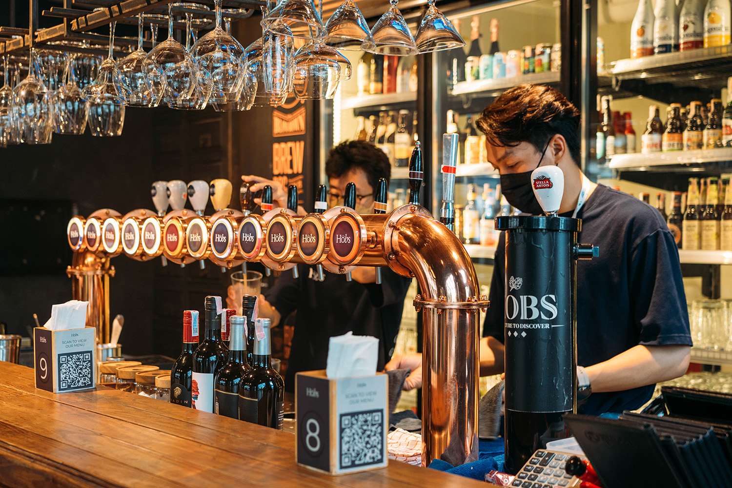นอกจากนี้ยังเพิ่มความพิเศษให้กับโซนบาร์ ซึ่งเป็นจุดนัดพบของคอเบียร์นอก ไม่ว่าจะเป็น Hoegaarden, Budweiser, Stella Artois และ Craft Beer ไทย อย่าง M๓๒, ขุนแผนพลายแก้ว, เจ้าสังข์ทอง ซึ่งถูกคัดสรรมาอย่างดี ผสมผสานระหว่างเสียงเพลงสุดชิลกับอาหารรสชาติแบบที่ Hobs Community คุ้นกันดี