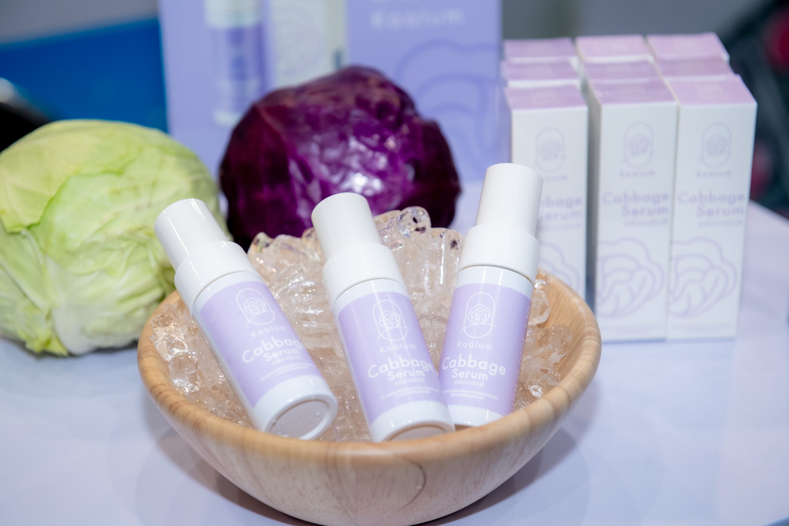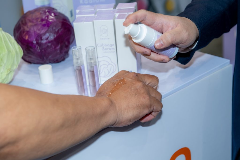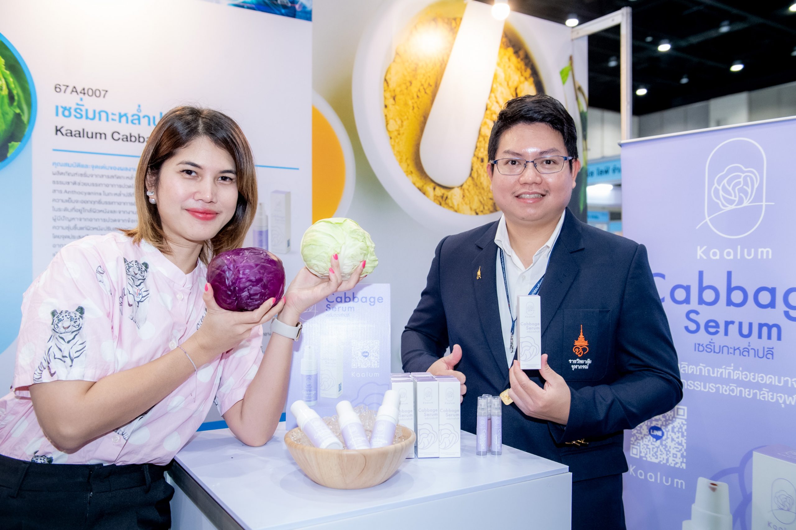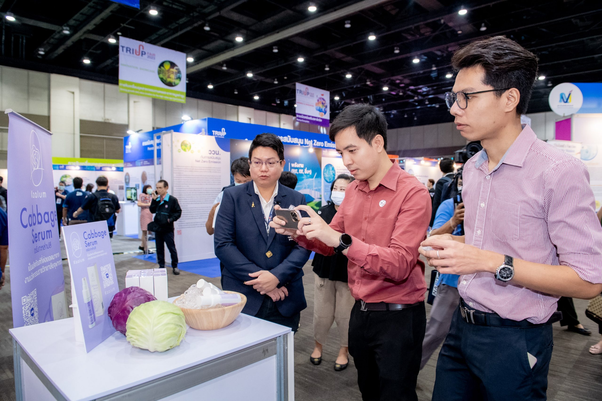คุณสมบัติผลิตภัณฑ์ ผลิตภัณฑ์เซรั่มจากสารสกัดกะหล่ำปลีม่วงเข้มข้นจากธรรมชาติ ไม่แต่งสี ไม่แต่งกลิ่น ปราศจากสารกันเสีย ช่วยบรรเทาปวดโดยใช้คุณสมบัติของสาร Anthocyanins ในกะหล่ำปลีที่เมื่อถูกกระตุ้นด้วยความเย็นจะออกฤทธิ์บรรเทาอาการอักเสบของกล้ามเนื้อในระดับที่อยู่ใกล้ผิวหนังและจากงานวิจัยเหมาะกับกลุ่มผู้มีปัญหาจากอาการข้อเข่าเสื่อม รวมถึงให้ความชุ่มชื้นแก่ผิวหนัง ปรับสภาพผิวแห้งกร้านให้เนียนนุ่ม สรรพคุณ มีคุณสมบัติลดอาการอักเสบและบรรเทาอาการปวดเมื่อยกล้ามเนื้อ (จากงานวิจัย) อีกทั้งช่วยบำรุงผิวให้ชุ่มชื้น ท้ายสุดการเข้าร่วมงาน TRIUP FAIR 2023 มหกรรมส่งเสริมการใช้ประโยชน์จากงานวิจัย และนวัตกรรม ได้รับความสนใจอย่างมาก ตรงกับวัตถุประสงค์ เพื่อโอกาสในการขยายผลงานวิจัยและนวัตกรรมเพื่อให้เกิดประโยชน์ในเชิงพาณิชย์ ตลอดจนสร้างเครือข่ายร่วมกับหน่วยงานในระบบนิเวศส่งเสริมการใช้ประโยชน์ผลงานวิจัยและนวัตกรรม