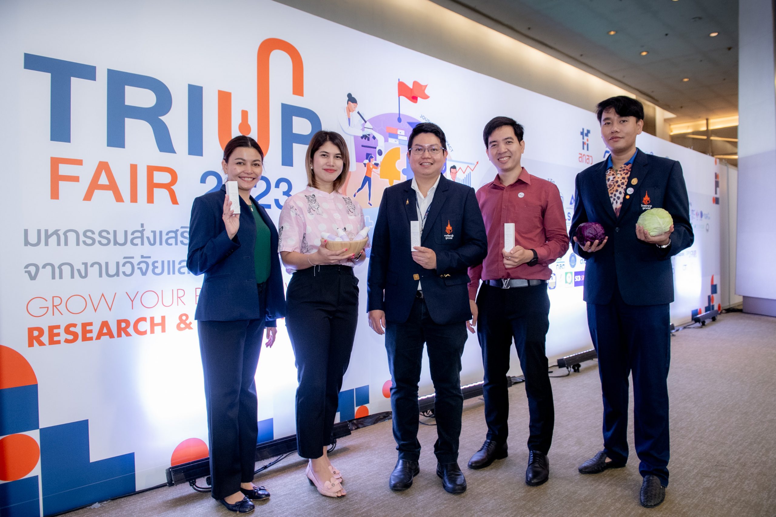 วันที่ 18-19 กรกฎาคม 2566 : TRIUP FAIR 2023 มหกรรมส่งเสริมการใช้ประโยชน์จากงานวิจัย และนวัตกรรม จัดโดย สำนักงานคณะกรรมการส่งเสริมวิทยาศาสตร์ วิจัยและนวัตกรรม (สกสว.) ภายใต้แนวคิด “Journey to Impact : เส้นทางจากงานวิจัยนวัตกรรมสู่การยกระดับเศรษฐกิจและสังคมของประเทศ ที่มุ่งเน้น 3 ประเด็นหลัก ได้แก่ การแพทย์ และสุขภาพเกษตรและอาหารมูลค่าสูง Net Zero emission วัตถุประสงค์ของการจัดงานเพื่อเป็นเวทีในการส่งเสริมการเชื่อมโยงและต่อยอดธุรกิจ (Business matching) พร้อมโอกาสในการขยายผลงานวิจัยและนวัตกรรมเพื่อให้เกิดประโยชน์ในเชิงพาณิชย์ ตลอดจนสร้างเครือข่ายร่วมกับหน่วยงานในระบบนิเวศส่งเสริมการใช้ประโยชน์ผลงานวิจัยและนวัตกรรม ทั้งนี้ ผู้ช่วยศาสตราจารย์ นพ.ธนพล ชอบเป็นไทย ศัลยแพทย์ออโธปิดิกส์ โรงพยาบาลจุฬาภรณ์ และรักษาการผู้ช่วยคณบดีวิทยาลัยแพทยศาสตร์ศรีสวางควัฒน นักวิจัยจากราชวิทยาลัยจุฬาภรณ์ ได้รับเชิญให้นำผลงาน “เซรั่มกะหล่ำปลี” (Cabbage Serum) เป็นนวัตกรรมสิ่งประดิษฐ์ที่ต่อยอดมาจากแผ่นเจลเย็นกะหล่ำปลีแก้ปวด ที่ได้รับรางวัลในการประกวดนวัตกรรมระดับนานาชาติ Seoul International Invention Fair 2019 ณ ประเทศสาธารณรัฐเกาหลี และได้รับการพิจารณาอนุมัติจากกรมทรัพย์สินทางปัญญา กระทรวงพาณิชย์ เข้าร่วมแสดงในงานมหกรรมฯ ณ ชั้น 5 รอยัลพารากอน ฮอลล์ 1-3 ศูนย์การค้าสยามพารากอน