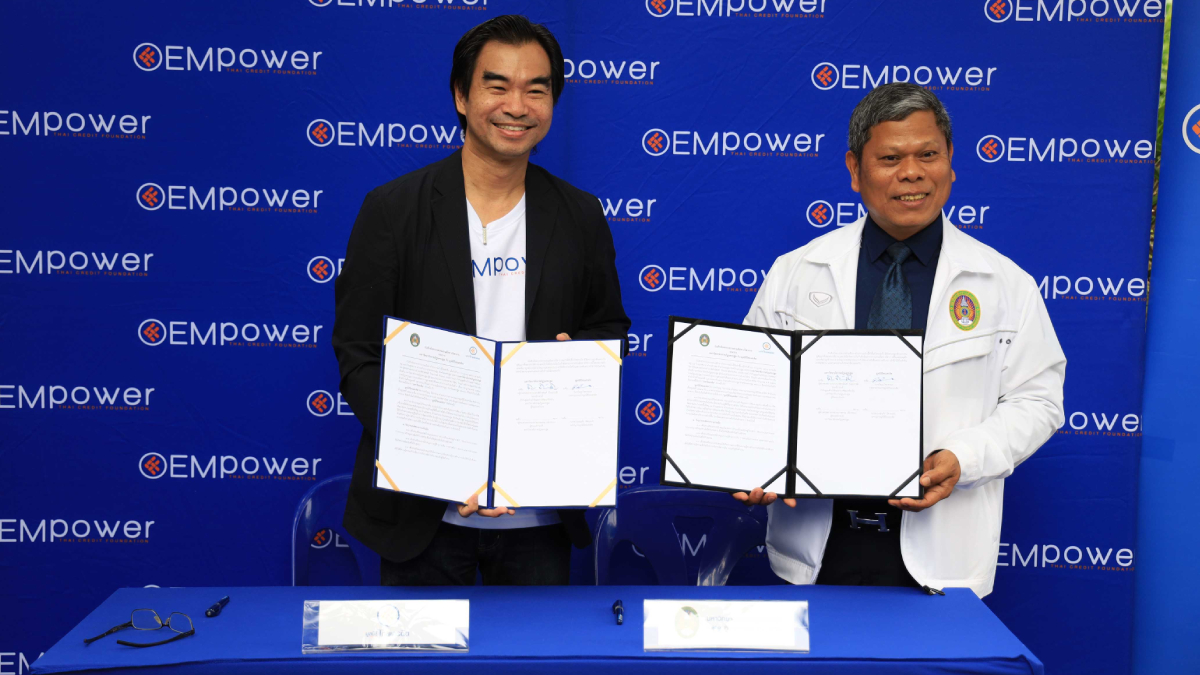 นายวิญญู ไชยวรรณ ประธานกรรมการมูลนิธิไทยเครดิตกล่าวว่า “มูลนิธิไทยเครดิตก่อตั้งโดยธนาคารไทยเครดิตฯ เพื่อส่งเสริมความรู้และวินัยทางการเงิน สนับสนุนการพัฒนาชุมชน ศิลปะ วัฒนธรรม สังคมและสิ่งแวดล้อม เพื่อให้สอดคล้องกับวิสัยทัศน์ มูลนิธิฯ จึงริเริ่ม 2 โครงการคุณภาพเพื่อสังคมตามแนวความคิด EMpower for Community โดยยึดมั่นบนพื้นฐาน “Everyone Matters ทุกคนคือคนสำคัญ” ซึ่งเป็นหลักปรัชญาการดำเนินธุรกิจของธนาคารไทยเครดิตฯ ภายใต้ โครงการพัฒนาชุมชนพึ่งพาตนเองอย่างยั่งยืน มูลนิธิฯ มุ่งพัฒนาชุมชนนำร่อง 2 ชุมชน ได้แก่ หมู่ที่ 8 บ้านนิคม และหมู่ที่ 14 บ้านสุขสบาย ในตำบลลำเหย อำเภอดอนตูม จังหวัดนครปฐม โดยโครงการนี้จะเป็นโครงการนำร่องซึ่งจะขยายไปยังพื้นที่อื่น ๆ ทั้งยังส่งเสริมการเข้าถึงแหล่งเงินทุนและบริการทางการเงินในระบบอย่างทั่วถึงและเท่าเทียม ให้ความรู้ และปลูกฝังวินัยทางการเงินที่ดี สร้างโอกาสทางการศึกษาให้แก่นักเรียนในชุมชน ตลอดจนส่งเสริมการทำเกษตรปลอดภัยนำไปสู่ความอยู่ดีกินดีและปลอดภัยของเกษตรกรและประชาชนอย่างยั่งยืน”
