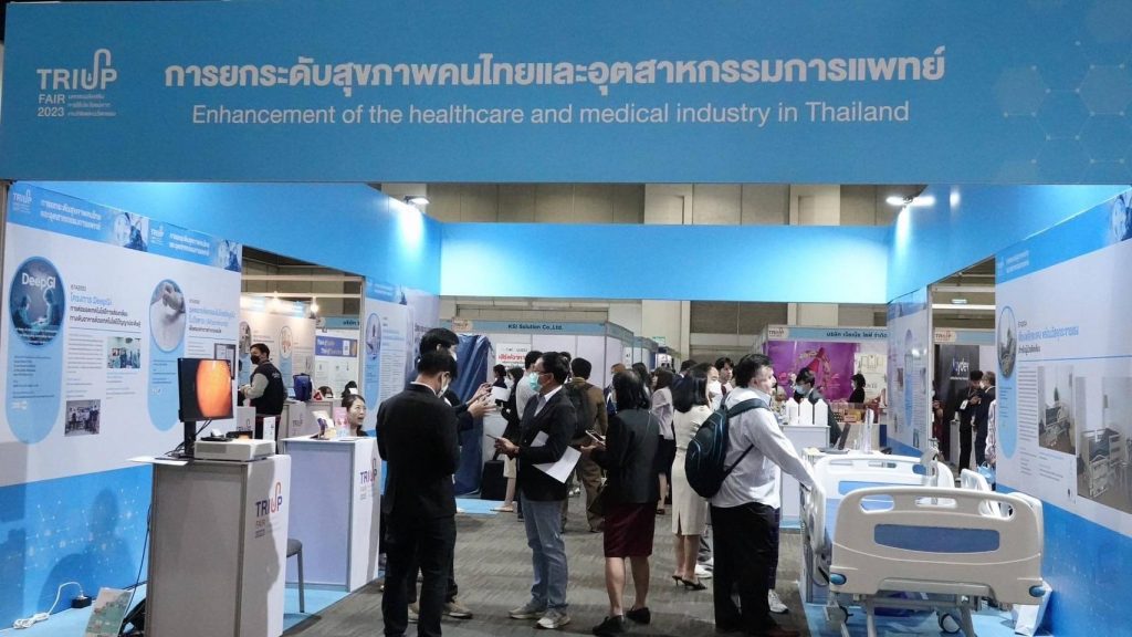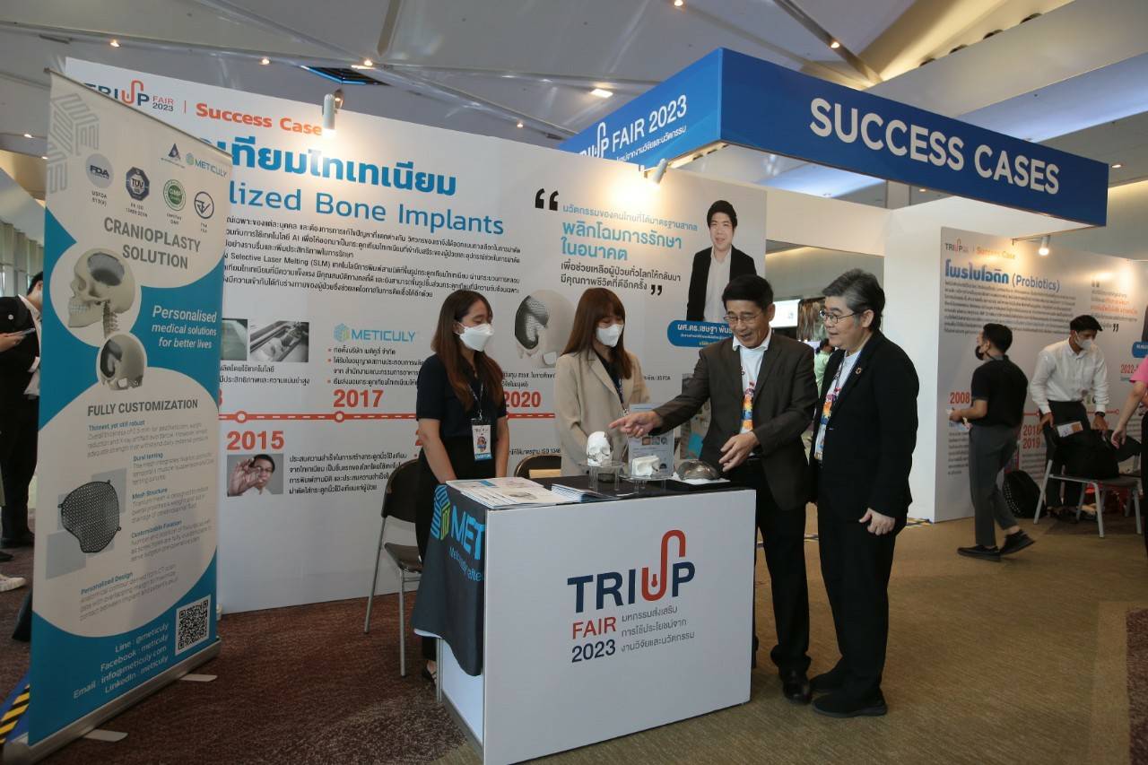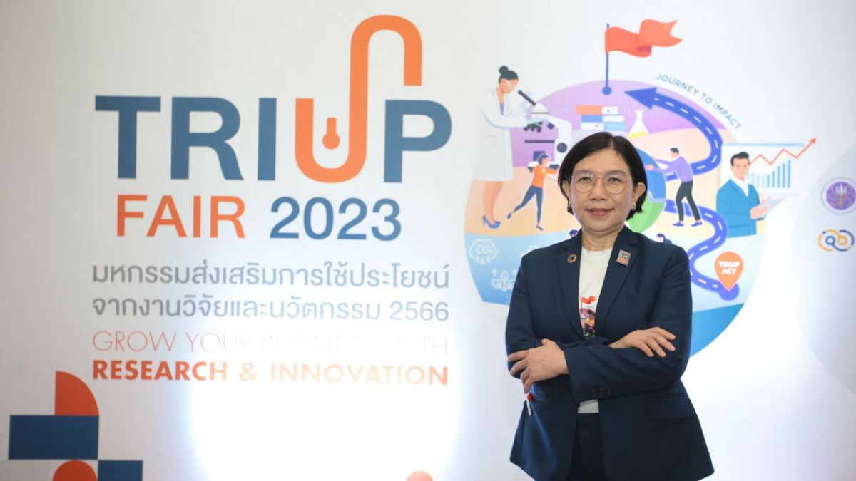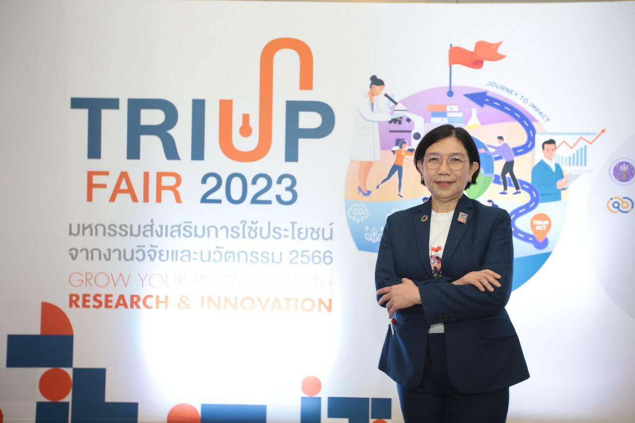 งาน TRIUP FAIR 2023 จัดโดย สำนักงานคณะกรรมการส่งเสริมวิทยาศาสตร์ วิจัยและนวัตกรรม หรือ สกสว. ร่วมกับภาคีเครือข่ายด้านวิจัยและนวัตกรรม หน่วยบริหารและจัดการทุนวิจัย (PMU) 9 แห่ง มหาวิทยาลัย สถาบันวิจัย และภาคเอกชน นำโดยสภาอุตสาหกรรมแห่งประเทศไทย หอการค้าไทยและสภาหอการค้าแห่งประเทศไทย หน่วยงานภาครัฐที่กำกับดูแลกลไกหนุนเสริมการพัฒนาภาคธุรกิจ รวมถึงหน่วยงานภาคการเงิน และการลงทุน ร่วมฉายภาพความสำเร็จอย่างยิ่งใหญ่ของวงการวิจัยและนวัตกรรมไทย กับการโชว์สุดยอดผลงานวิจัยและนวัตกรรมของคนไทยมากกว่า 300 ผลงาน ณ รอยัล พารากอนฮอลล์ ชั้น 5 ห้างสรรพสินค้าสยามพารากอน ระหว่างวันที่ 18-19 กรกฎาคม 2566 ที่ผ่านมา โดยมีผู้เข้าร่วมชมงานอย่างคับคั่ง ซึ่งได้รับความสนใจเป็นอย่างดีทั้งจากนักวิชาการ ผู้สนใจทั่วไป ผู้บริโภคและผู้ประกอบการ ส่งผลให้แนวโน้มการนำผลงานวิจัยและนวัตกรรมมาใช้ประโยชน์ในเชิงพาณิชย์เพิ่มขึ้นได้จริง และยังเป็นกลไกสำคัญในการช่วยขับเคลื่อนเศรษฐกิจและสังคมให้เติบโตอย่างต่อเนื่อง
