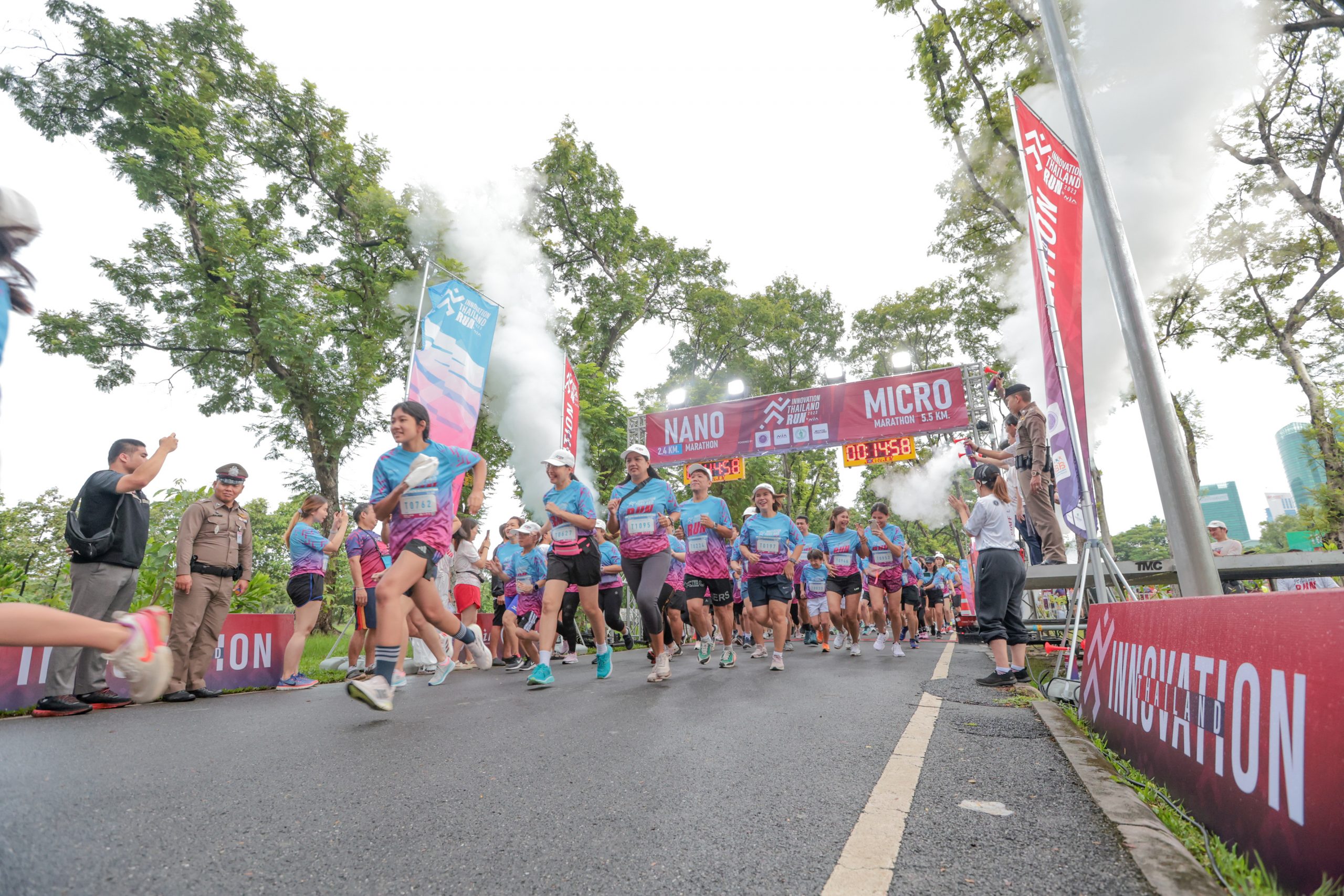 ดร.กริชผกา บุญเฟื่อง ผู้อำนวยการสำนักงานนวัตกรรมแห่งชาติ (องค์การมหาชน) หรือ NIA กล่าวว่า “กิจกรรมการวิ่งครั้งนี้ได้รับผลการตอบรับดีเกินคาด มีนักวิ่ง ผู้ประกอบการออกบูธและผู้สนใจเข้าร่วมกิจกรรมกว่า 1,200 คน ในเวลาอันรวดเร็ว โดยการวิ่งแบ่งเป็น 4 ระยะทาง ได้แก่ 1) Half Marathon ระยะทาง 21.1 กิโลเมตร 2) Mini Marathon ระยะทาง 10.5 กิโลเมตร 3) Micro Marathon ระยะทาง 5.5 กิโลเมตร และ 4) Nano Marathon ระยะทาง 2.4 กิโลเมตร ทำให้ผู้คนทุกเพศ ทุกวัยสามารถเข้าร่วมได้ ไม่ว่าจะเป็นครอบครัวที่มีทั้งเด็ก ผู้สูงอายุ หรือกลุ่มเพื่อนวัยเรียน วัยทำงาน งานวิ่งครั้งนี้ถือเป็นการนำนวัตกรรมมาใช้ในกิจกรรมไลฟ์สไตล์ และเป็นการใช้พื้นที่สวนสาธารณะให้เป็นพื้นที่ส่งเสริมนวัตกรรมด้านกีฬาและสุขภาพ เพื่อสร้างการรับรู้ให้สินค้านวัตกรรรมฝีมือคนไทยเป็นที่รู้จักในหมู่นักวิ่ง และประชาชนทั่วไปมากยิ่งขึ้น โดยมี 4 ไฮไลต์ที่น่าสนใจ ได้แก่ 1) CONNECTING THE ROUTE การวิ่ง 4 ระยะทางกับ 3 สวนสาธาณะใหญ่ใจกลางกรุง สวนรถไฟ สวนสมเด็จพระนางเจ้าสิริกิติ์ และสวนจตุจักร 2) INNOVATIVE RUNNING GEAR นวัตกรรมอุปกรณ์และสิ่งที่นักวิ่งได้รับ เช่น DRY DYE เสื้อวิ่งและแจ็คเกตจากผ้าย้อมสีโดยไม่ใช้น้ำ BRAVO เหรียญรางวัลที่เป็นวัสดุรีไซเคิลจากโลหะ TOUCH-PRINTING ผ้าบัฟเส้นใยวัสดุรีไซเคิลจากขวดพลาสติก ฯลฯ 3) INNOVATIVE RUNNING SYSTEM นวัตกรรมระบบบริหารจัดการงานวิ่งจาก THAIRUN ซึ่งใช้เทคโนโลยี FACE X ระบบค้นหาและระบบจดจำใบหน้า ELECTRONIC BIB ระบบบันทึกข้อมูลสถิติการวิ่งแบบอัจฉริยะ และ 4) INNOVATIVE RUNNING SHOWCASE สินค้าและบริการนวัตกรรมด้านการวิ่ง กีฬา และการออกกำลังกาย จากฝีมือผู้ประกอบการไทยกว่า 30 แบรนด์ ที่มาออกบูธโชว์และจำหน่ายสินค้านวัตกรรมให้นักวิ่งและประชาชนทั่วไปได้มาซื้อและทดลองใช้จริง ได้แก่ LAMAI น้ำมะพร้าวผงเสริมแคลเซียม MADI ชาหมักคอมบูชะเพื่อความสดชื่น BRAIN DYNAMICS บริการตรวจการนอนหลับและบำบัดการนอนหลับ WIND TRAINING แอพพลิเคชันจัดตารางซ้อมวิ่งด้วยระบบ AI WELALA บริการดูแลสุขภาพที่ทำได้ด้วยตัวเองที่บ้าน S CARE โคมอินฟราเรดประคบร้อนบรรเทาอาการปวด X-REAL โปรตีนพืชสำหรับผู้ออกกำลังกาย SUWAN สเปรย์คลายปวดลดการอักเสบของกล้ามเนื้อ NATPIER สเปรย์กำจัดกลิ่นเท้า POWCO เจลให้พลังงานจากน้ำมะพร้าว SESAMILK นมจากงาขาวและงาดำเสริมสร้างกระดูก BALANCE นมธัญพืชไฟเบอร์ธรรมชาติ Z NERGY ไมโครเจลให้พลังงานดูดซึมไว CHORKOON ผลิตภัณฑ์เจลอาบน้ำตำรับสมุนไพรสำหรับนักกีฬา SCLI ครีมกันแดดสูตรอ่อนโยน (5 Free) DRY DYE เสื้อจากผ้าย้อมสีโดยไม่ใช้น้ำ AREE HERB น้ำมันนวดสมุนไพร KEAH SPA GEL เจลบรรเทาอาการปวดเมื่อยจากไขมันจระเข้ INYOKO น้ำอ้อยผงชงดื่ม ให้พลังงาน และเพิ่มความสดชื่น เอ็นดานอล 801 น้ำม