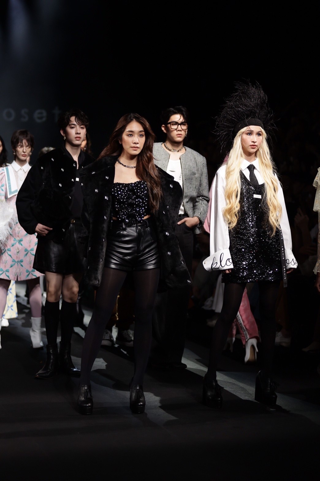ยังคงสร้างปรากฏการณ์และกระแสสุดร้อนแรงให้กับวงการแฟชั่นไทยอย่างต่อเนื่อง สำหรับ “Siam Paragon Bangkok International Fashion Week 2023” (BIFW2023) ในวันที่สอง ที่สยามพารากอนจับมือเหล่าพันธมิตรชั้นนำทั้งภาครัฐและเอกชน เปิดแกรนด์รันเวย์นำเสนอพลังสร้างสรรค์ของเหล่าดีไซเนอร์ไทยระดับแนวหน้า พร้อมเหล่าเซเลบริตี้และแฟชั่นนิสต้าที่ยกพลมาร่วมงานกันอย่างคับคั่งแบบไม่มีแผ่ว กับแฟชั่นโชว์แสนเก๋จากแบรนด์ Kloset โดยสองดีไซเนอร์คู่หู มลลิกา เรืองกฤตยา และ ณัฐ มั่งคั่ง ซึ่งนำเสนอคอลเลคชั่น Autumn/Winter 2023 “Never Give Up” ที่ได้แรงบันดาลใจจากนโปเลียน โบนาปาต จักรพรรดิผู้ยิ่งใหญ่ของจักรวรรดิฝรั่งเศส ออกแบบเป็นเสื้อผ้าผู้หญิงที่มีกลิ่นอายของเครื่องแบบทหารในยุคศตวรรษที่ 18 โดยยังคงสไตล์สาว Kloset ที่สวยหวาน มั่นใจ และมีความกล้า กับกิมมิกดอกมูเกร์ โบว์ขนาดใหญ่ รวมถึงตัวอักษรย่อ KS บนเสื้อผ้า และที่เห็นได้ชัดคือคอลเลคชั่นนี้มีความแคชชวลขึ้น สามารถนำไปมิกซ์แอนด์แมตช์กับคอลเลคชันอื่นได้อย่างสนุก พร้อมขนทัพเหล่าศิลปินดารามาสวมบทบาทโมเดลกันอย่างคับคั่ง ทั้งหนุ่มๆ 789, วง Proxy และสาวๆ แฮนน่า และ มายด์ จาก 4EVE