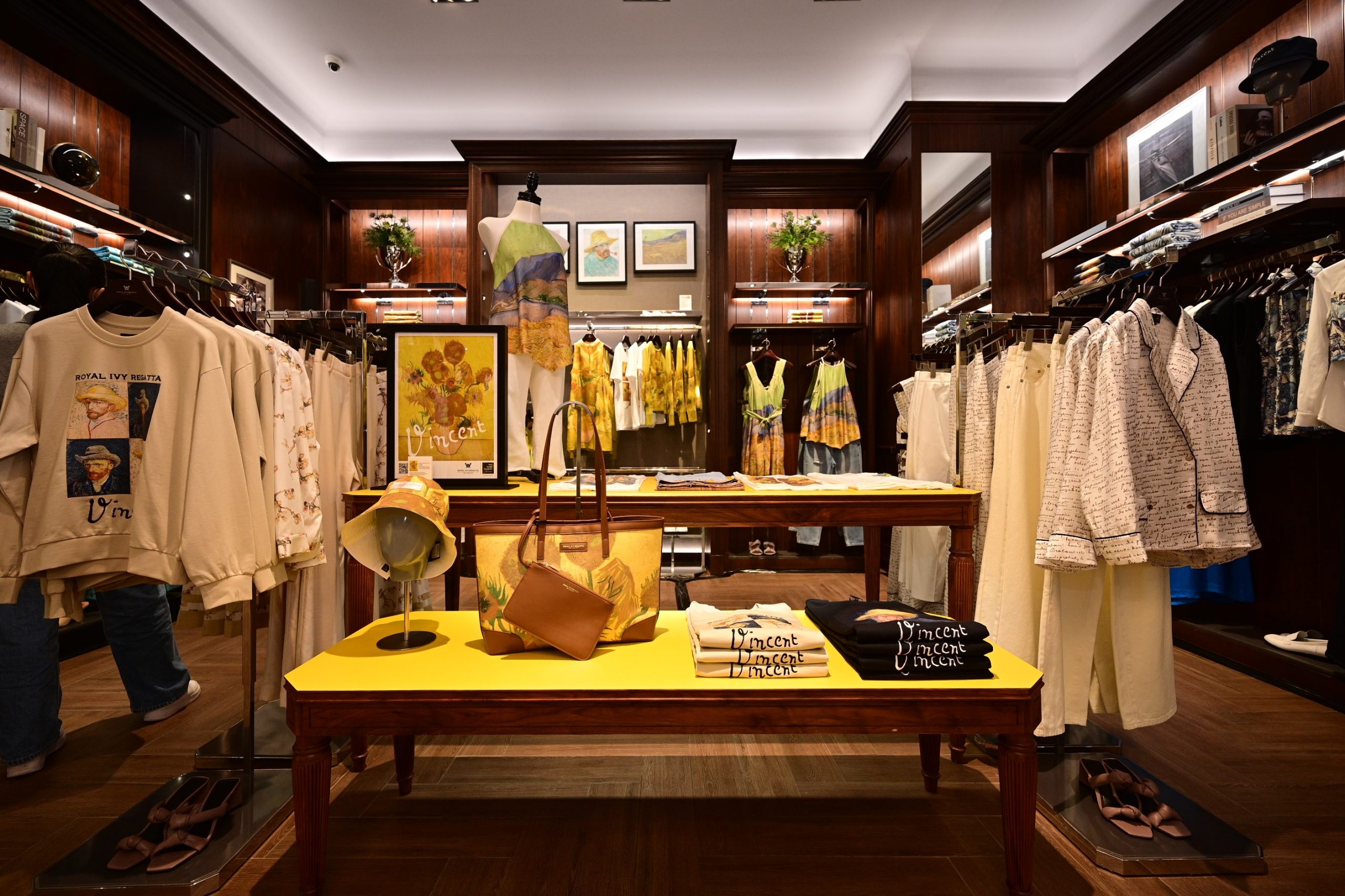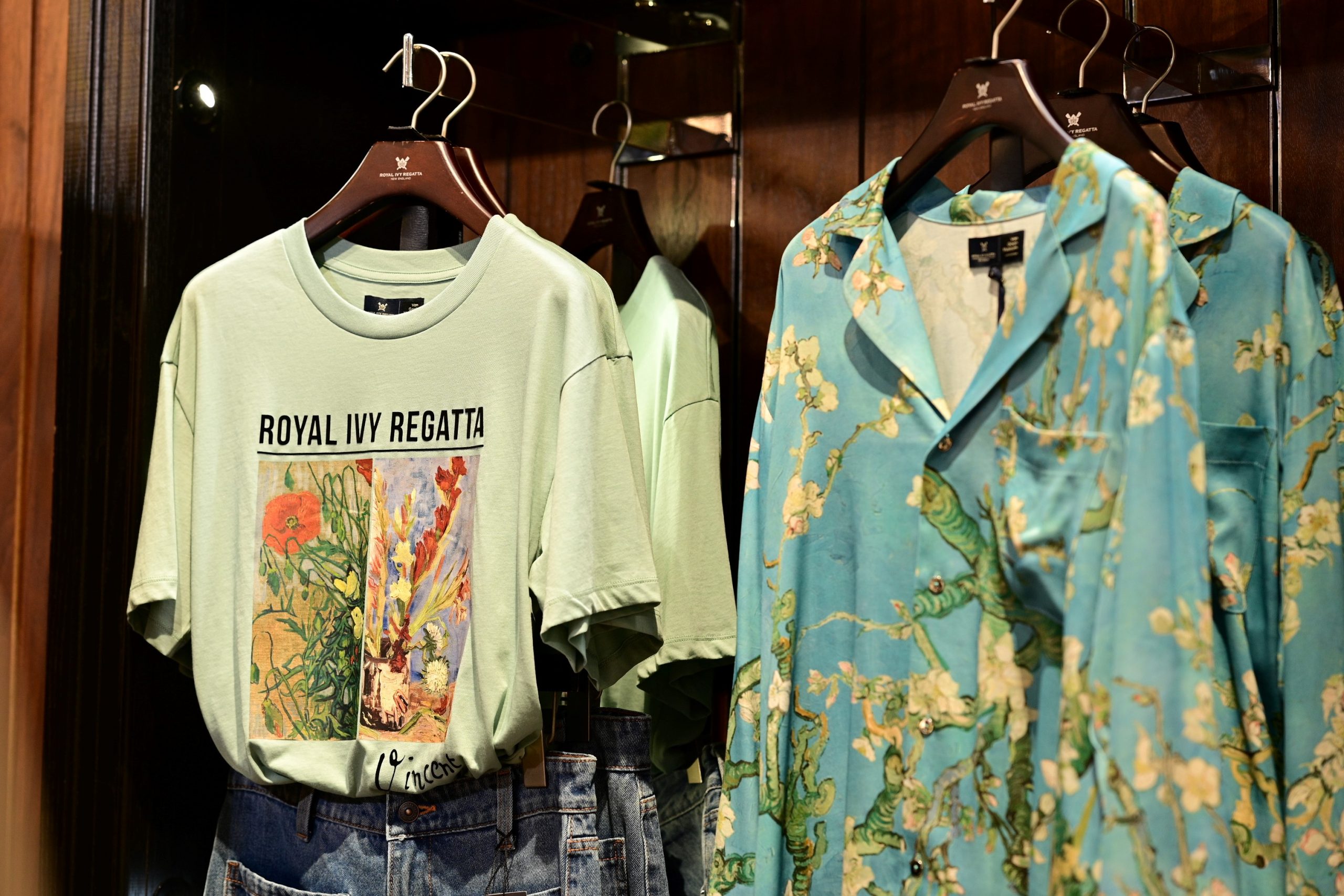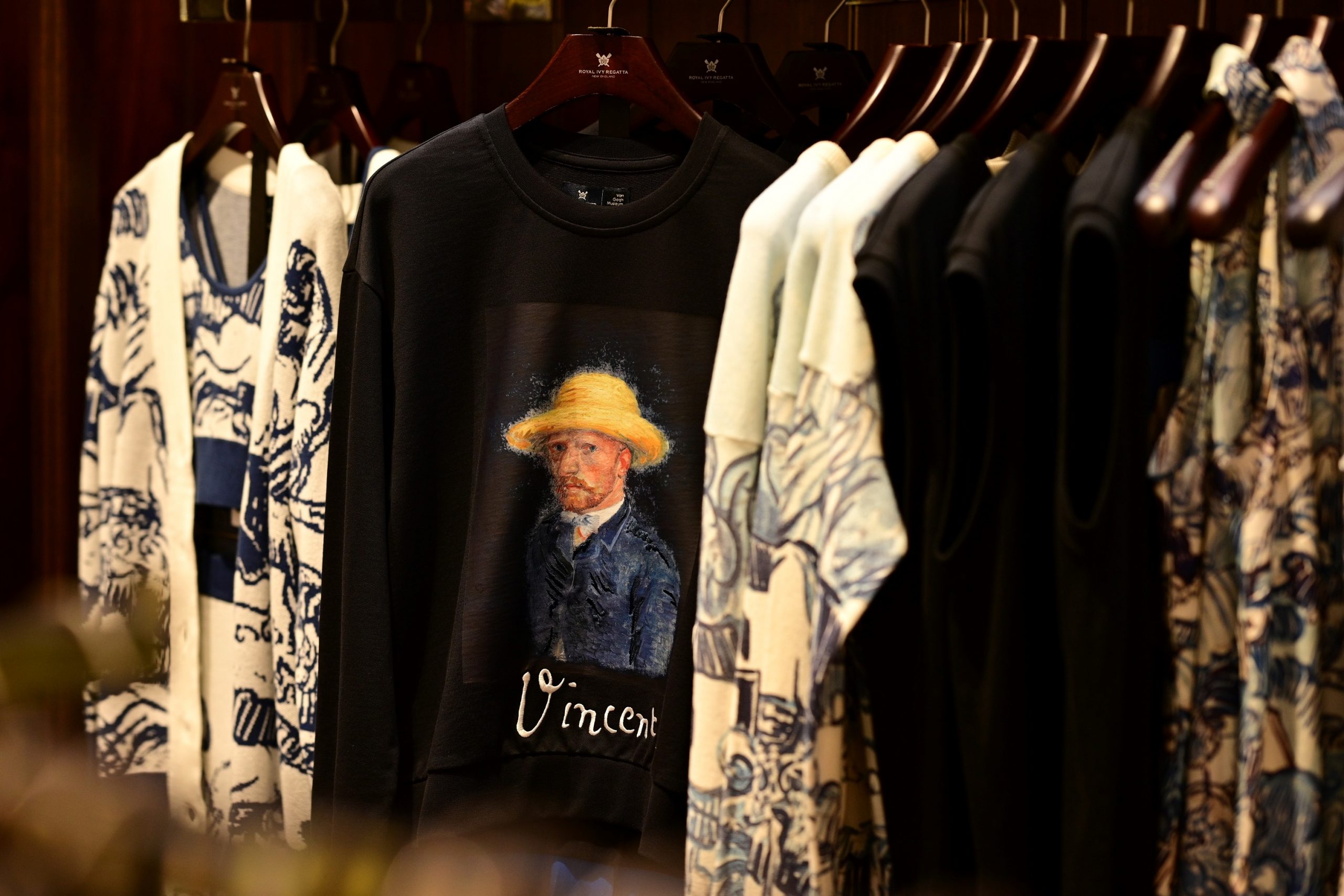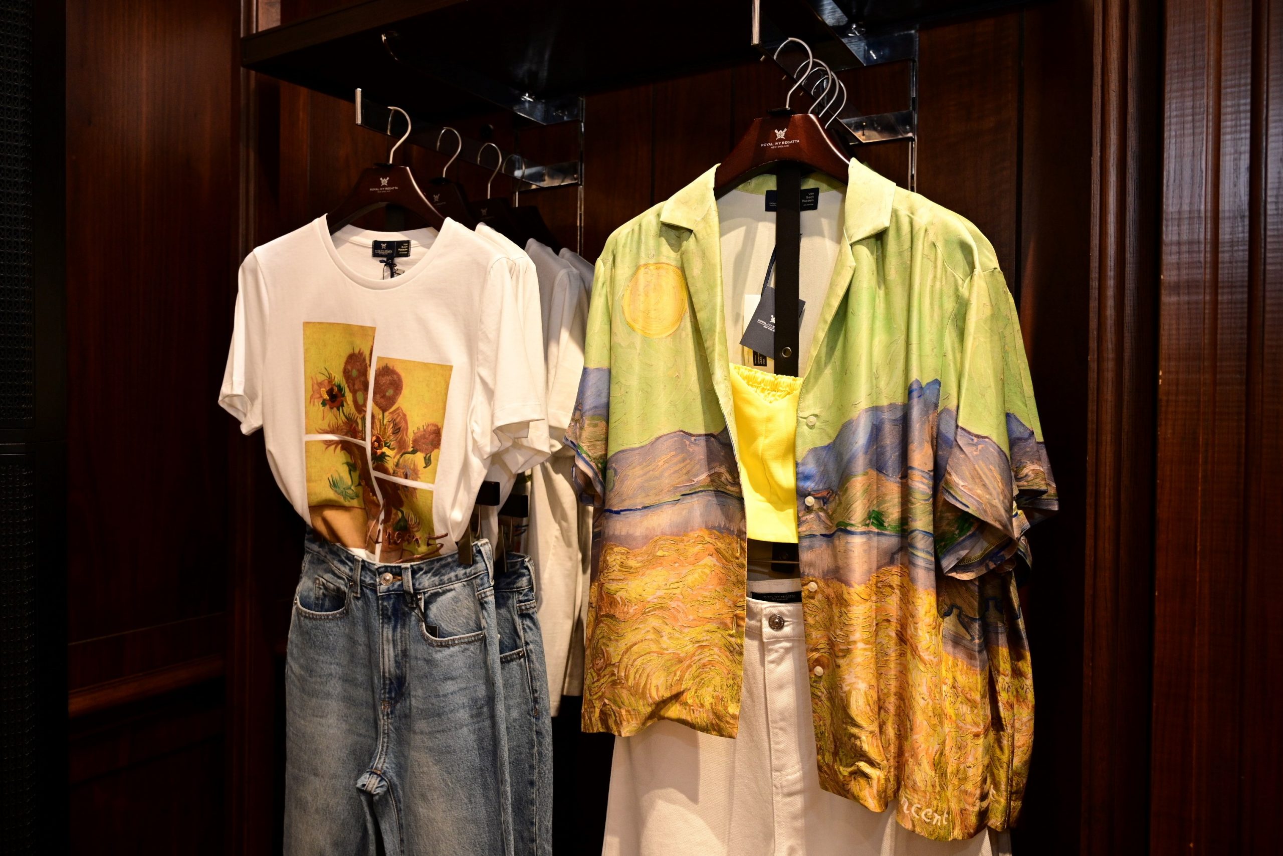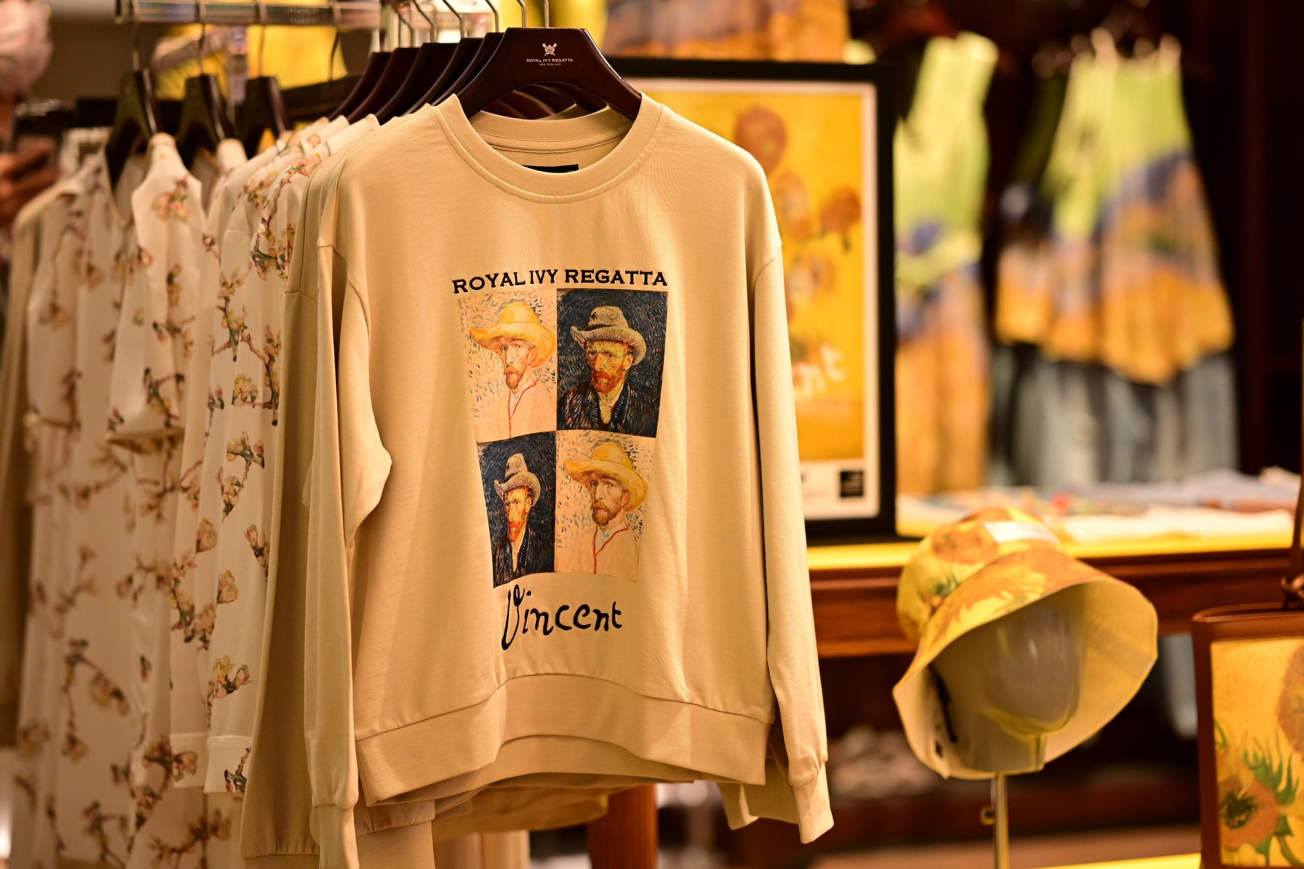 ผลงานแฟชั่นในคอลเลกชั่น ROYAL IVY REGATTA x VAN GOGH MUSEUM ได้หยิบเอาผลงานระดับมาสเตอร์พีชของ วินเซนต์ แวนโก๊ะ อาทิ ผลงาน Sunflowers, Almond Blossom, Wheatfield with a Reaper, Landscape with Houses and Self-Portrait with Straw Hat. ออกมาเป็นคอลเลกชั่นที่ผสมผสานศาสตร์แห่งศิลปะบนเสื้อผ้าสมัยใหม่ ถ่ายทอดเรื่องราวลงบนเสื้อผ้าและเครื่องประดับหลากหลายไอเทม