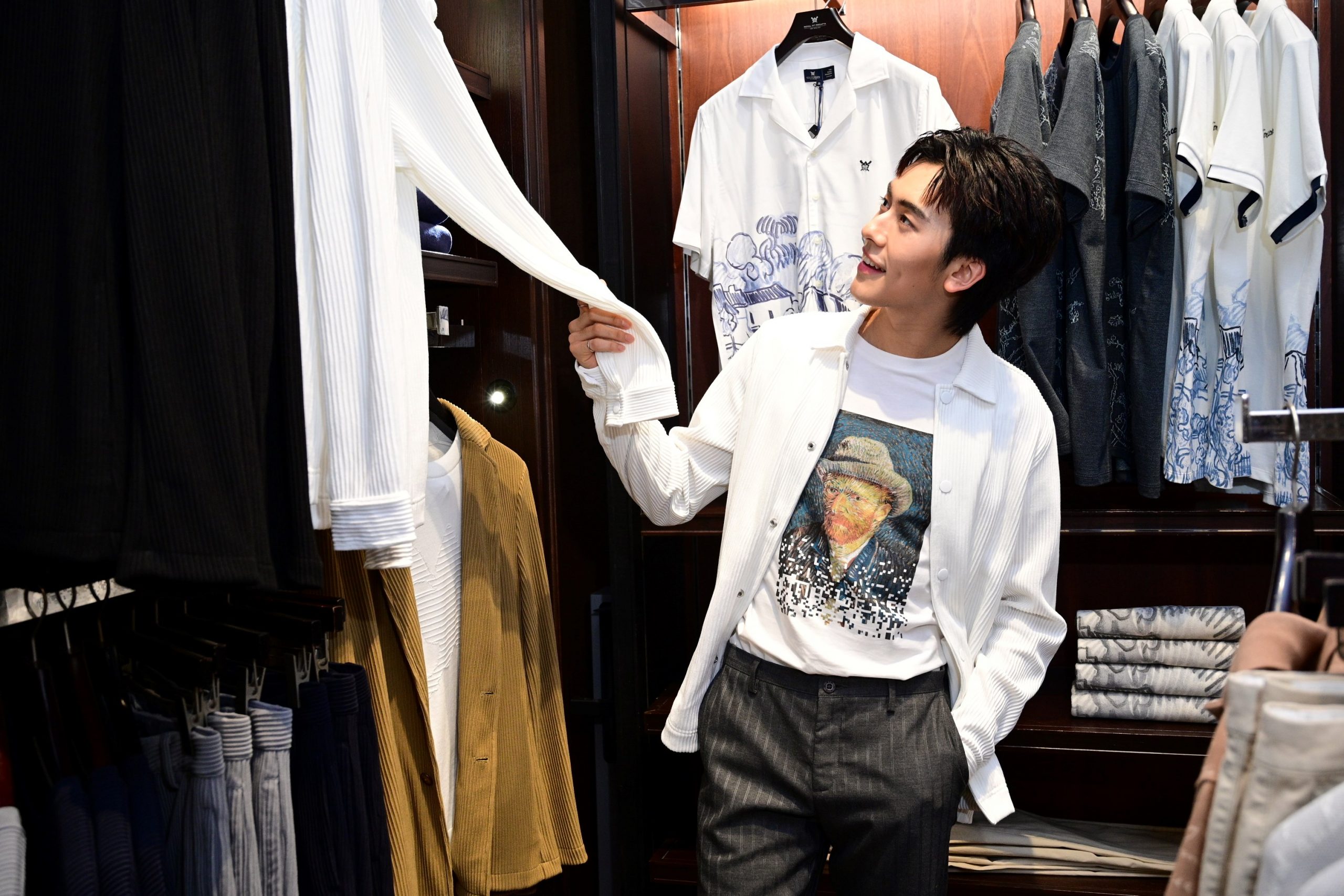 สำหรับคอลเลกชั่นของผู้หญิงจะโดดเด่นด้วยสีสันและลวดลายที่งดงามจากผลงานของ วินเซนต์ แวนโก๊ะ ถ่ายทอดลงบนเสื้อผ้าที่สามารถเลือกสวมใส่ได้หลากหลายโอกาส อาทิ ชุดเดรส (Shift Dress) และเสื้อแขนยาวลายผลงาน Sunflowers, เสื้อท็อป และเดรสทรงป้าย (Wrap dress) ผลงาน Wheatfield with a Reaper ตอบโจทย์ความมีสไตล์ได้แบบ day-to-night ส่วนคอลเลกชั่นสำหรับผู้ชาย ยังคงความคลาสสิกที่เหนือกาลเวลา กับไอเทมที่สวมใส่ได้ครบทุกโอกาส ทั้งเสื้อยืดคอกลม เสื้อโปโล เสื้อเชิ้ต ที่สามารถสวมใส่ได้ในวันสบายๆ หรือใส่เป็นออฟฟิศลุคก็ให้ความรู้สึกผ่อนคลาย และพลาดไม่ได้คือ แอ๊กเซสซอรี่ที่จะคอมพลีทลุค ไม่ว่าจะเป็นหมวก หรือกระเป๋า ให้ได้เลือกหลากหลายดีไซน์