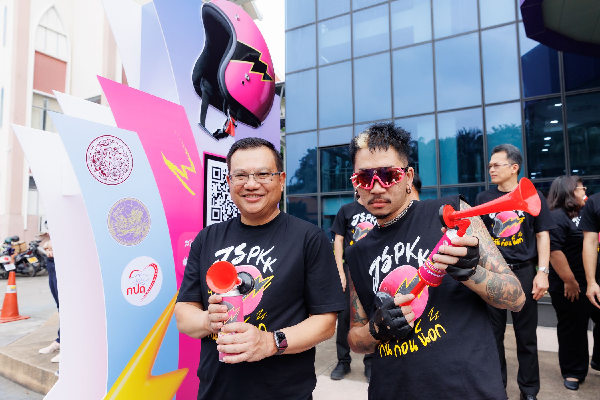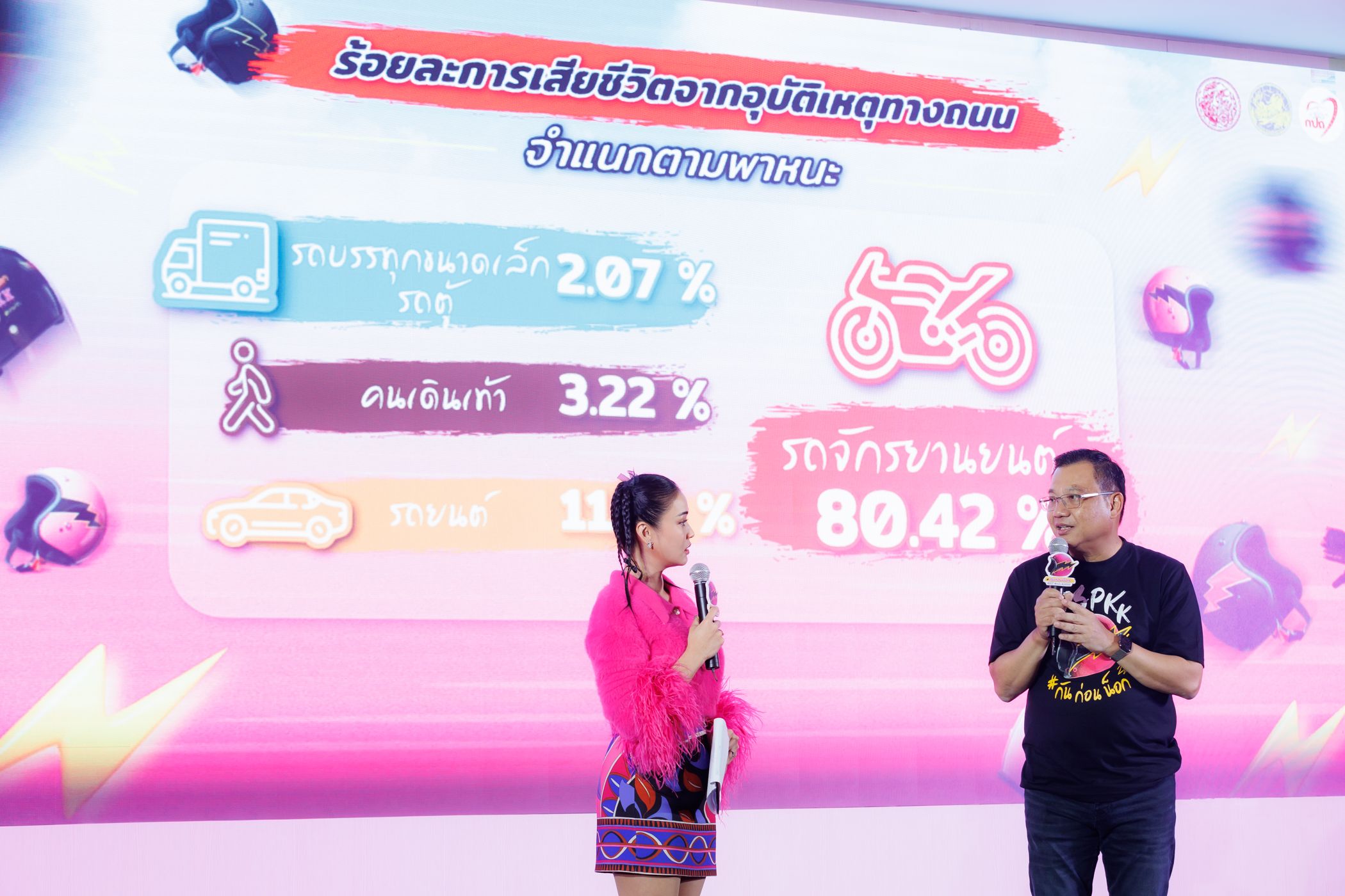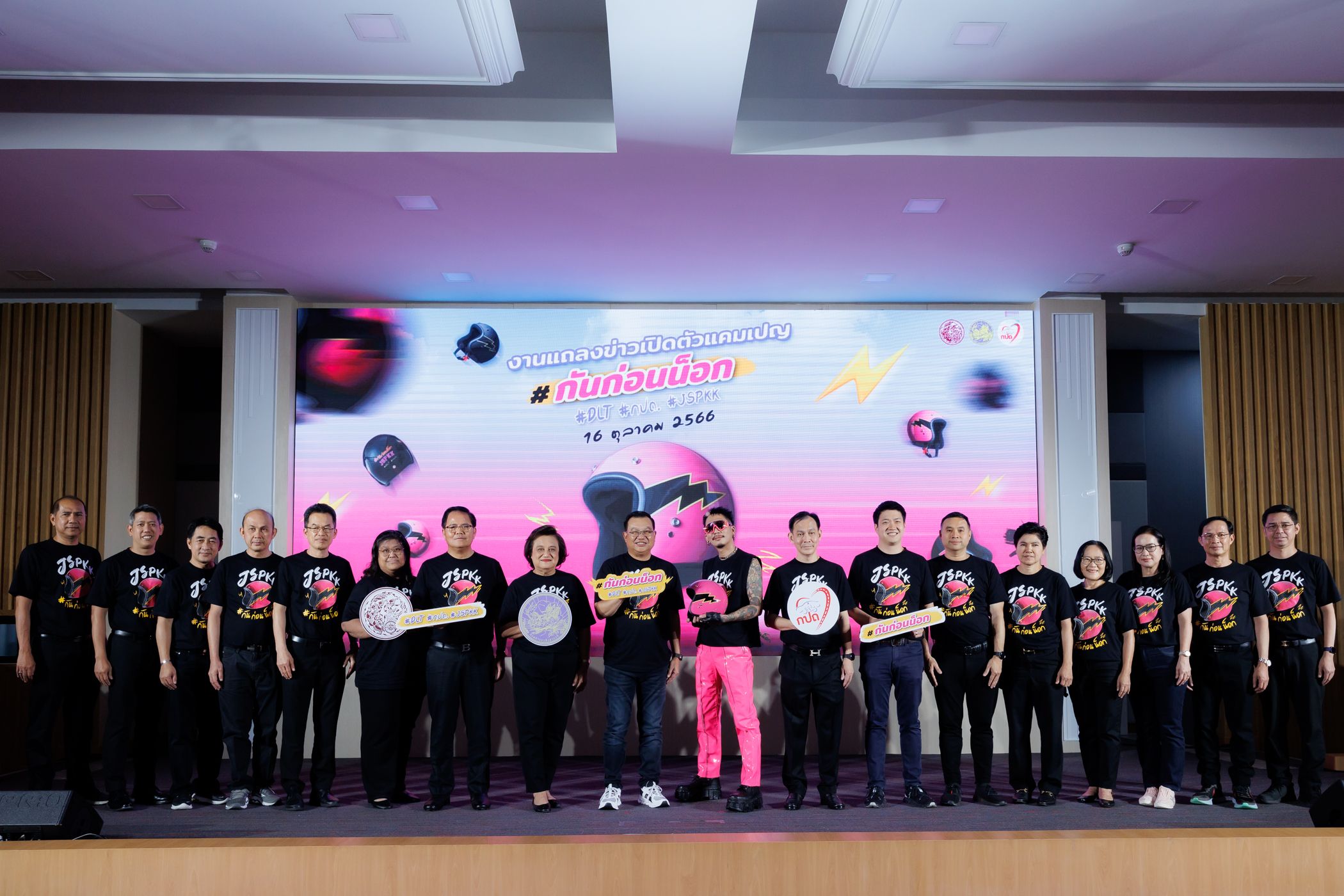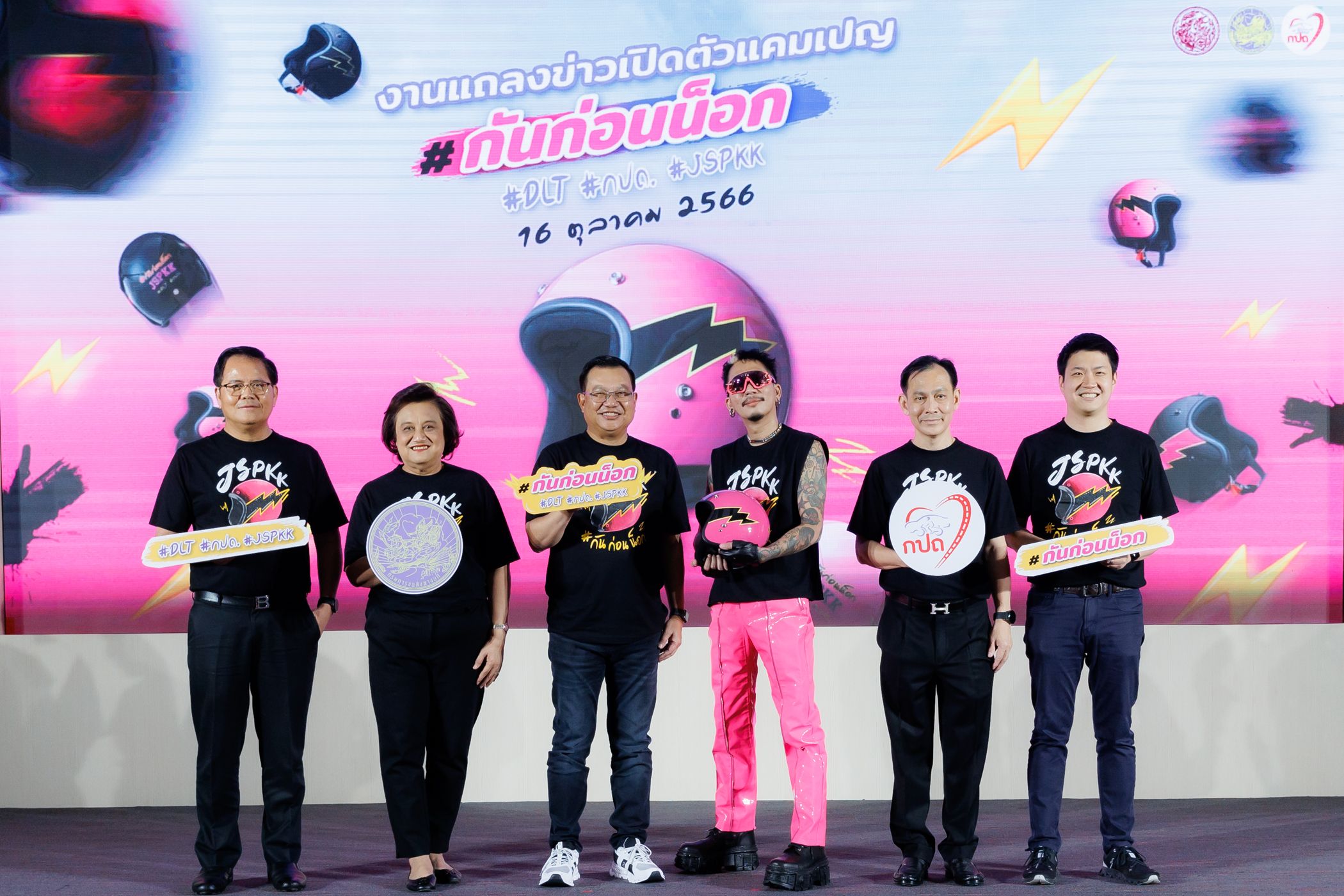 วันนี้ (16 ตุลาคม 2566) ณ อาคาร GPS กรมการขนส่งทางบก จัดงานแถลงข่าวโครงการ ‘รณรงค์ส่งเสริมการสวมหมวกนิรภัย เพื่อป้องกันและลดความรุนแรงจากการเกิดอุบัติเหตุ’ เปิดตัวมิวสิควิดีโอ ‘กันก่อนน็อก’ จับมือขวัญใจวัยรุ่นไทย ‘แจ๊ส สปุ๊กนิค ปาปิยอง กุ๊กกุ๊ก’ หรือ ‘แจ๊ส ชวนชื่น’ เอาใจสาวกสองล้อทั้งประเทศ พร้อมร่วมกิจกรรม Dance Challenge ผ่านสื่อออนไลน์และแพลตฟอร์ม TikTok เพื่อสนับสนุนส่งเสริมการขับขี่ปลอดภัยด้วยการสวมหมวกนิรภัย ป้องกันและลดความรุนแรงจากการเกิดอุบัติเหตุ