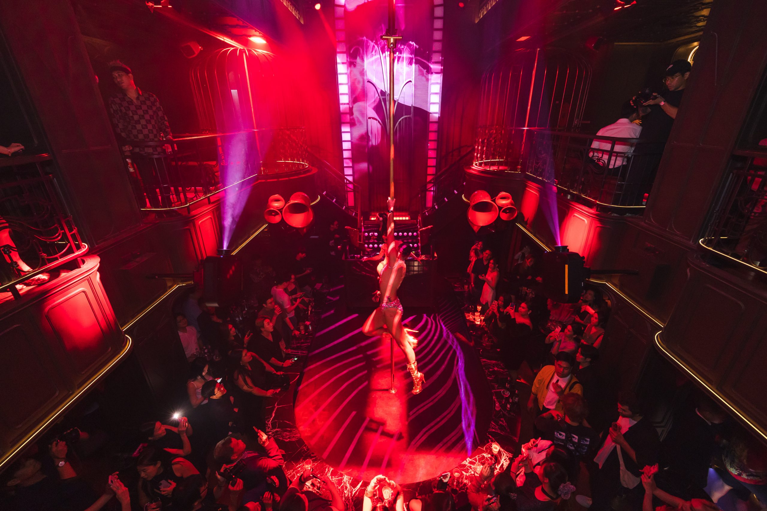 ส่วนบูธและที่นั่งสำหรับแขกวีไอพีสุดพิเศษ อยู่ในตำแหน่งใกล้กับเวทีหลัก ไม่ห่างจากกลุ่มนักเต้นที่มากเสน่ห์ ซึ่งปรากฏตัวขึ้นภายใต้หน้ากาก ซ่อนความน่าค้นหาไว้ด้วยคาแรกเตอร์เหล่าคนรับใช้จากโลกไซเบอร์ไปจนถึงการแสดงกายกรรมที่น่ามหัศจรรย์ ในส่วนของพื้นที่นั่งบนชั้นสอง ตกแต่งด้วยความหรูหรา และได้มุมที่มองเห็นเวทีหลักเช่นกัน จะได้สัมผัสกับประสบการณ์การมองเห็นกลุ่มนักเต้นปีนป่ายและหยอกล้อกันเล่นอยู่ในภายกรงเหนือเวที การตกแต่งภายในพื้นที่มีชีวิตชีวาขึ้นมาด้วยเทคนิคการฉายภาพเคลื่อนไหวแบบโปรเจกชั่นแมปปิ้ง เปลี่ยนผลงานสถาปัตยกรรมแห่งนี้ให้กลายเป็นดินแดนมหัศจรรย์แห่งอนาคตที่ท้าทายทุกโสตสัมผัส