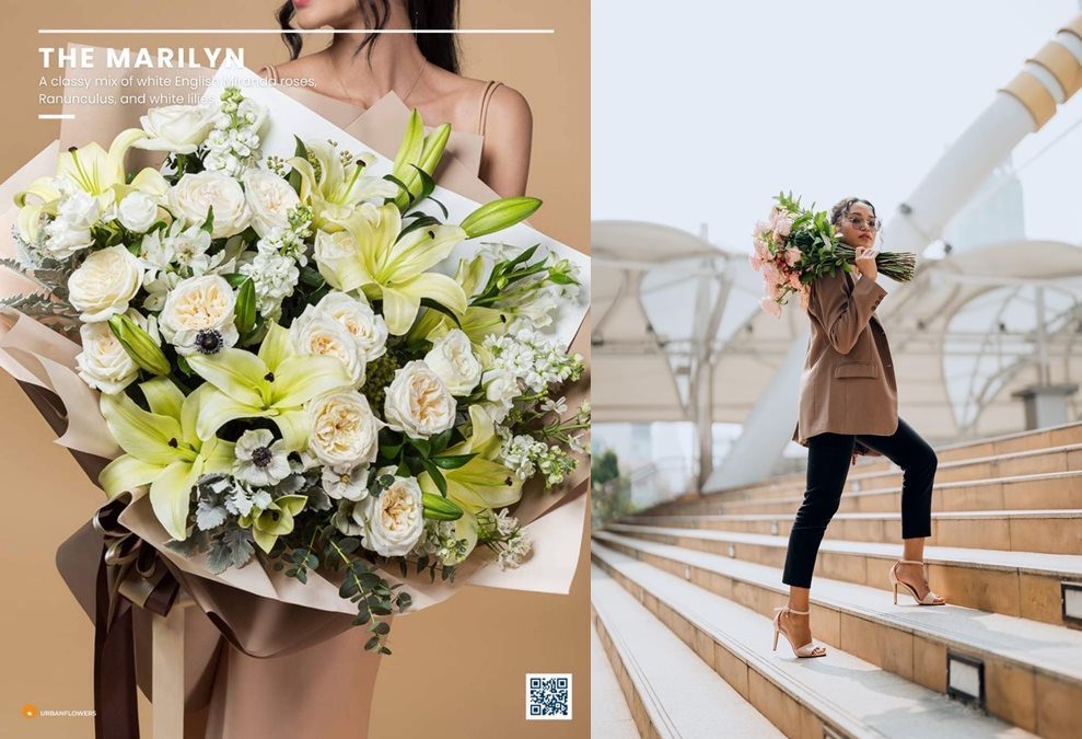 นอกจากนี้ ยังได้ทีมFlorist มาสาธิตการจัดช่อที่ได้รับความนิยมอย่าง “The Marilyn” ช่อดอกไม้ที่ผสมผสานอย่างหรูหราและลงตัว ของดอกกุหลาบมิรันดา ดอกเรนันคิวลัส และดอกลิลลี่เหลือง เดอะมาริลิน ตั้งชื่อตามนักแสดงชื่อดัง “มาริลิน มอนโร” ซึ่งช่อดอกไม้สีขาวบริสุทธิ์นี้แสดงถึงความสวยสง่าแต่แอบแฝงด้วยจริตแห่งความเย้ายวนใจ จัดด้วยรูปแบบสไปรัล (ทรงเกลียว) ตามดีไซน์ที่เป็นเอกลักษณ์ของร้าน ดอกกุหลาบมิรันดา เป็นตัวแทนของความกล้าและสง่าผ่าเผยเป็นอย่างดี ผสานความงดงามด้วยดอกลิลลี่และดอกเรนันคิวลัสสีขาว ทำให้ดอกไม้ช่อนี้มีความสมบูรณ์แบบเเละเหมาะสำหรับวันครบรอบเป็นอย่างยิ่ง ดั่งคำคมที่น่าจดจำของมาริลิน “เราทุกคนคือดวงดาว และเราสมควรที่จะได้เปล่งประกาย”