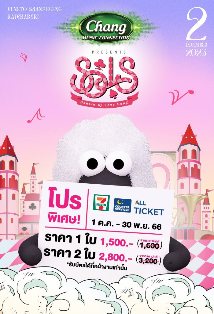 ทิ้งท้ายอีกครั้งใครที่พลาดโปรไหนมา จัดโปรนี้เลยไปซื้อกันได้ตั้งแต่วันนี้ จนถึงวันที่ 31 พฤศจิกายน 2566 เพราะโค้งสุดท้ายแล้วที่ทุกคนจะได้จับจอง บัตรเดี่ยว Lonely Sheep Regular ราคา 1,500 บาท (ต่อบัตร 1 ใบ) และ บัตรคู่ Buddy Sheep Regular ราคา 2,800 บาท (ต่อบัตร 2 ใบ) ซื้อได้ที่เว็บไซต์สามารถคลิกได้เลย https://bit.ly/SOLS13-AllTicket และเคาน์เตอร์เซอร์วิส All Ticket ในร้าน 7-Eleven ทุกสาขาทั่วประเทศ ยังไม่หมดเพียงเท่านี้ยังมีของที่ระลึกอย่างเสื้อ T-Shirt ให้เลือกถึง 3 สี ที่คนโสดสีชมพู คนมีคู่สีขาว หรือใจด้านชาก็ต้องเป็นสีดำ และกางเกงลายน้องแกะ 2 สี ทั้งชมพูและดำ ที่พร้อมให้ชาว SoLS สั่ง Pre-Order จับจองเป็นเจ้าของก่อนใคร ตั้งแต่วันนี้ ถึง 31 ตุลาคมนี้ เท่านั้น สั่งจองก่อนใครได้ที่ Line OA : @SOLS https://shop.line.me/@sols แอบกระซิบว่าต่อ 1 ใบเสร็จจะได้รับ 1 สิทธิ์ในการร่วมเล่นกิจกรรมภายในงาน รีบเลย! เพราะจำนวนจำกัด
