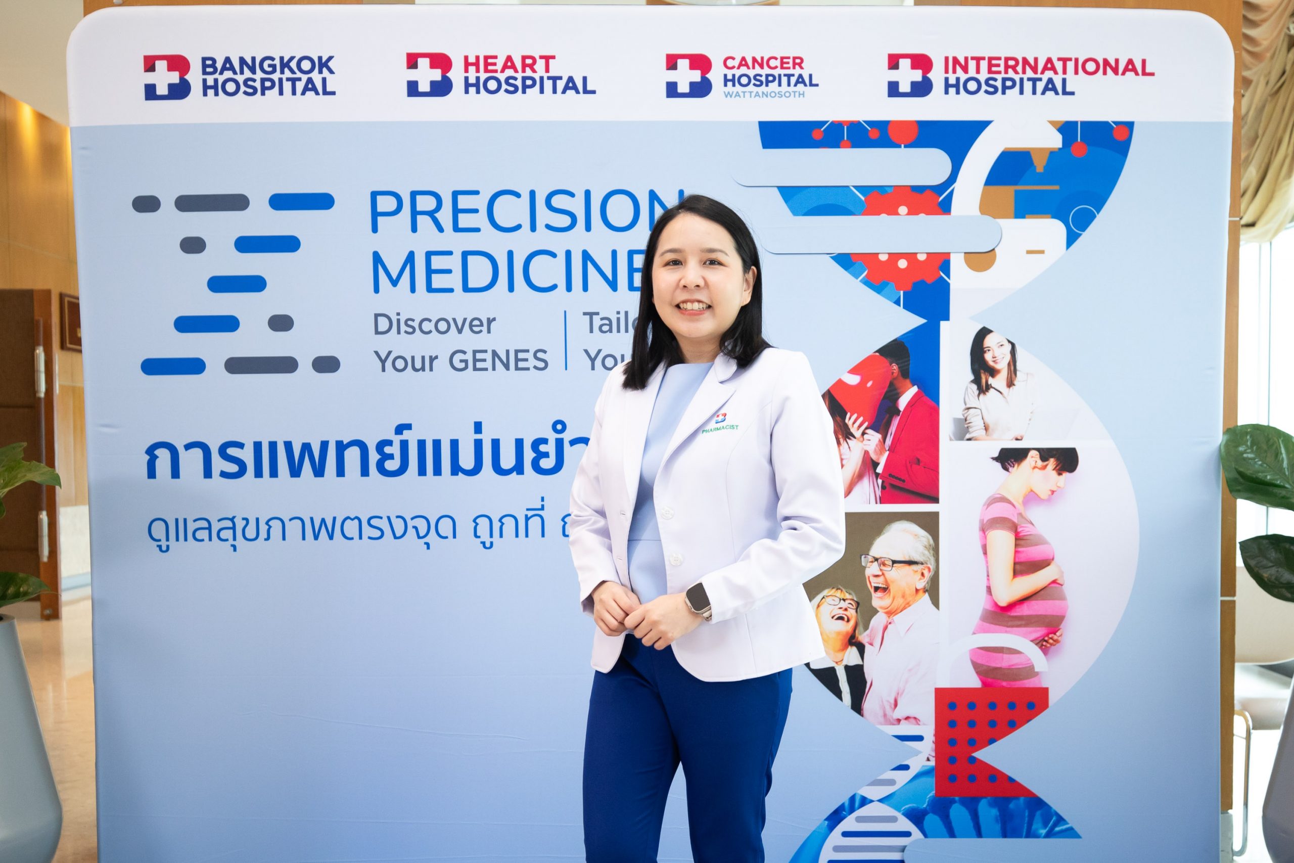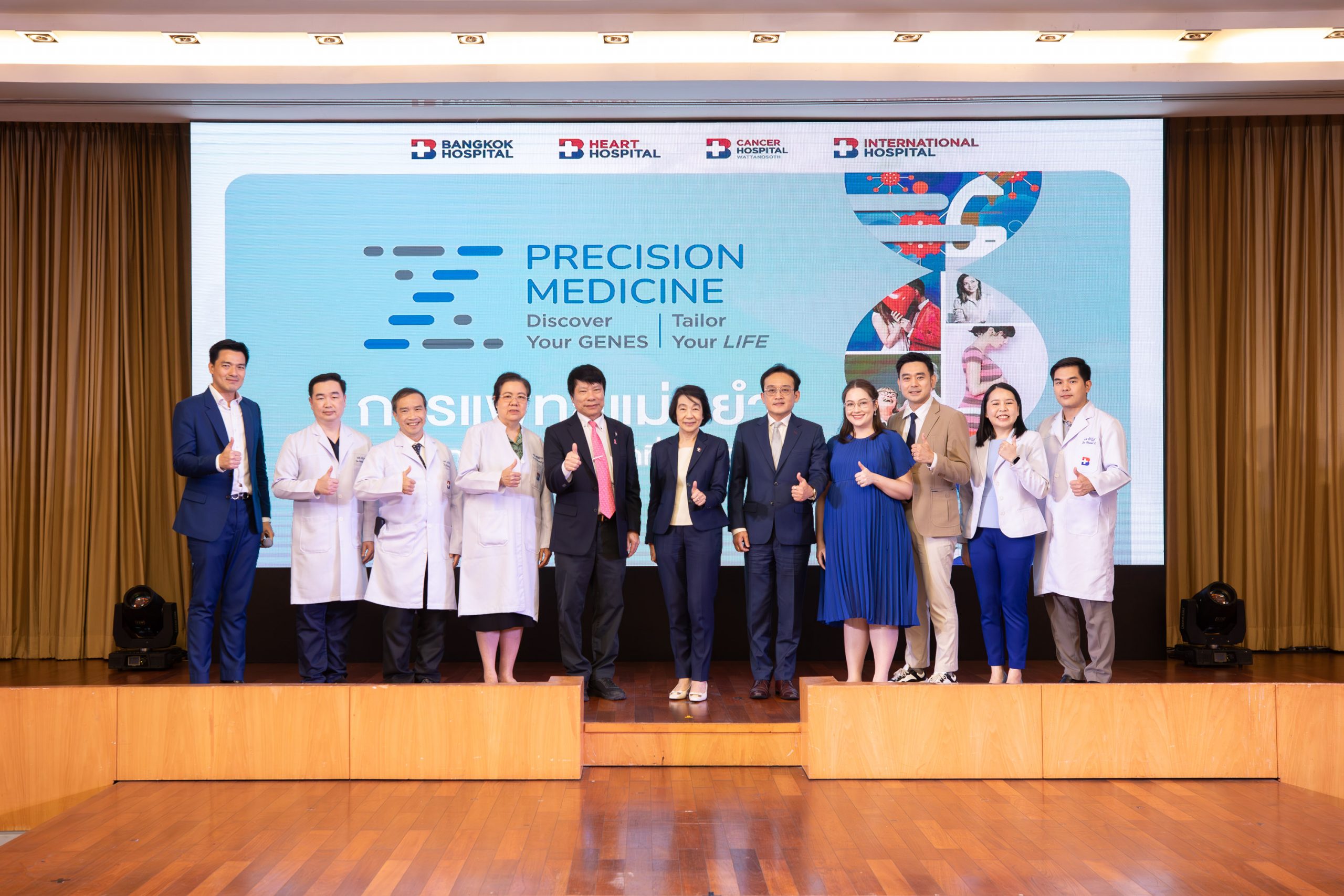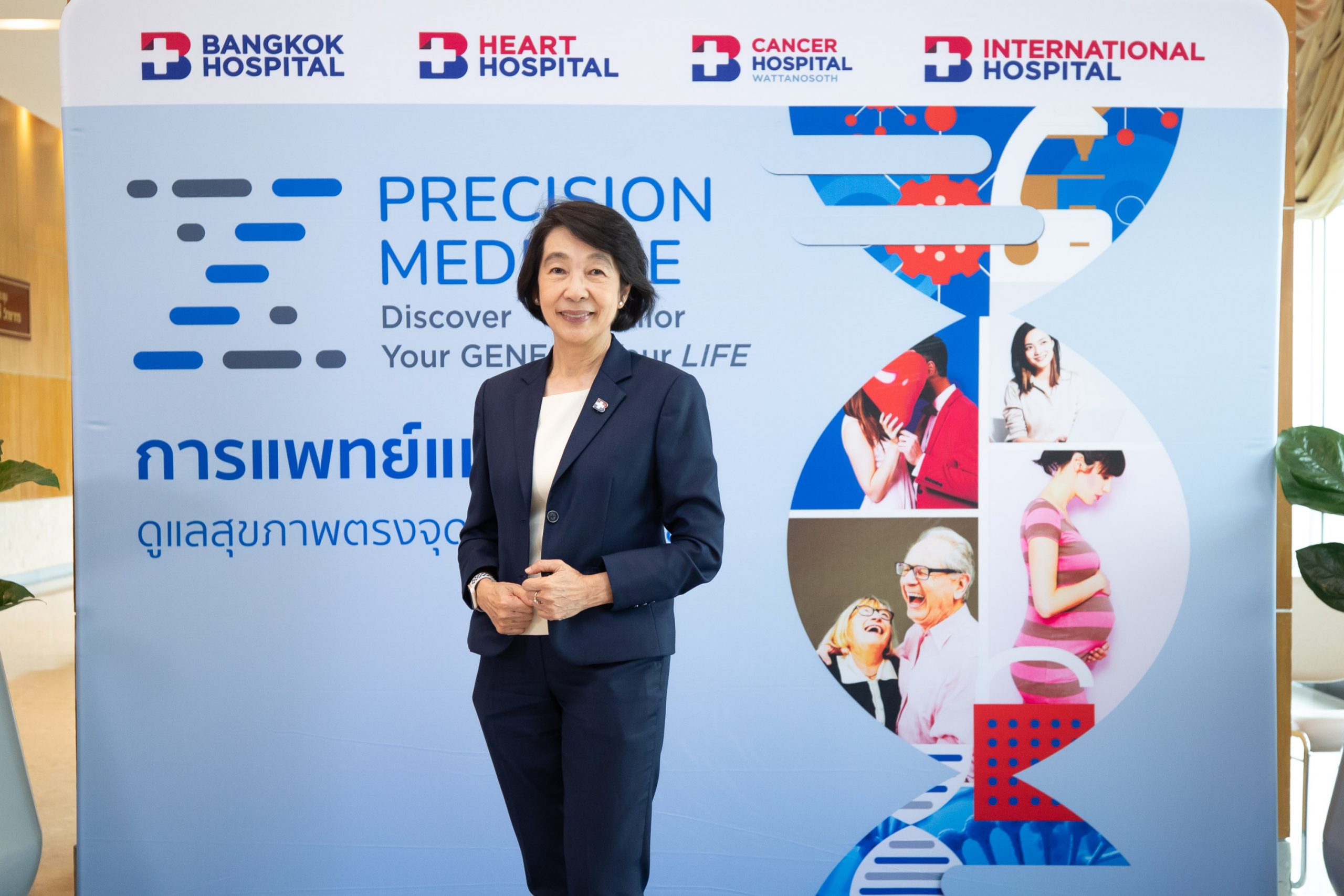 ภายในงานมีการร่วมพูดคุยถึง “รูปแบบการให้บริการ Precision Medicine: การแพทย์แม่นยำ” โดย พญ.เมธินี ไหมแพง ประธานคณะผู้บริหารกลุ่ม 1 และ ผู้อำนวยการ รพ.กรุงเทพ พร้อมการให้บริการตรวจทางด้านพันธุศาตร์ทางการแพทย์และการรักษาแบบจีโนมิกส์โดย ห้องปฏิบัติการเอ็น เฮลท์ จีโนมิกส์ (N Health Genomics) บริษัท เนชั่นแนล เฮลท์แคร์ ซิสเท็มส์ จำกัด ในเครือ BDMS ที่มุ่งหวังในการยกระดับขีดความสามารถทางการแพทย์ในการดูแลรักษาสุขภาพคนไทยและต่างชาติด้วยการแพทย์แบบจีโนมิกส์โดยใช้เทคโนโลยีการตรวจทางพันธุศาสตร์ขั้นสูง ประเทศสหรัฐอเมริกาตามมาตรฐานระดับสากลและฐานข้อมูลการแปลผลที่น่าเชื่อถือเพื่อการวินิจฉัยและวางแผนการรักษาได้อย่างตรงจุดเฉพาะรายบุคคล