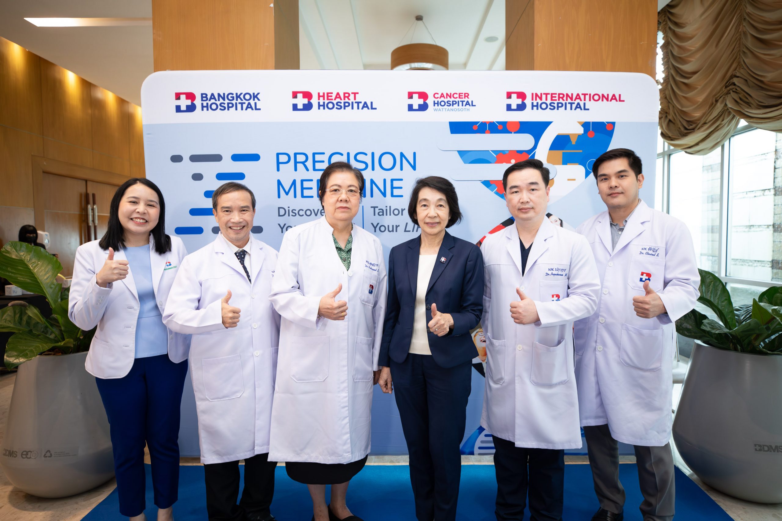 พญ.เมธินี ไหมแพง ประธานคณะผู้บริหาร กลุ่ม 1 และผู้อำนวยการโรงพยาบาลกรุงเทพ ให้ข้อมูลว่า “การแพทย์แม่นยำเป็นการนำความรู้ด้านพันธุศาสตร์และจีโนมของมนุษย์มาประยุกต์ใช้ในการดูแลสุขภาพ โดยปัจจุบันได้มีการพัฒนาการถอดรหัสทางพันธุกรรมโดยใช้เทคโนโลยีทางพันธุศาสตร์ขั้นสูงที่มีชื่อว่า Next – Generation Sequencing หรือ NGS ซึ่งเป็นเทคโนโลยีการหาลำดับนิวคลีโอไทด์หรือลำดับเบสของดีเอ็นเอ เพื่อตรวจหาและวิเคราะห์ความผิดปกติทางพันธุกรรมที่มีส่วนเกี่ยวข้องกับการเพิ่มความเสี่ยงหรือทำให้เกิดโรคต่าง ๆ โดยเทคโนโลยี NGS มีการพัฒนาอย่างรวดเร็ว ทำให้สามารถวิเคราะห์ข้อมูลทางพันธุกรรมในปริมาณมากและมีความไวในการตรวจหาการกลายพันธุ์ของพันธุกรรมสูง ร่วมกับการประมวลผลโดยใช้ระบบคอมพิวเตอร์และฐานข้อมูลระดับสากล ทำให้ผลการตรวจมีความแม่นยำ นำไปสู่การวินิจฉัยและการวางแผนการรักษาที่ชัดเจนและถูกต้อง”