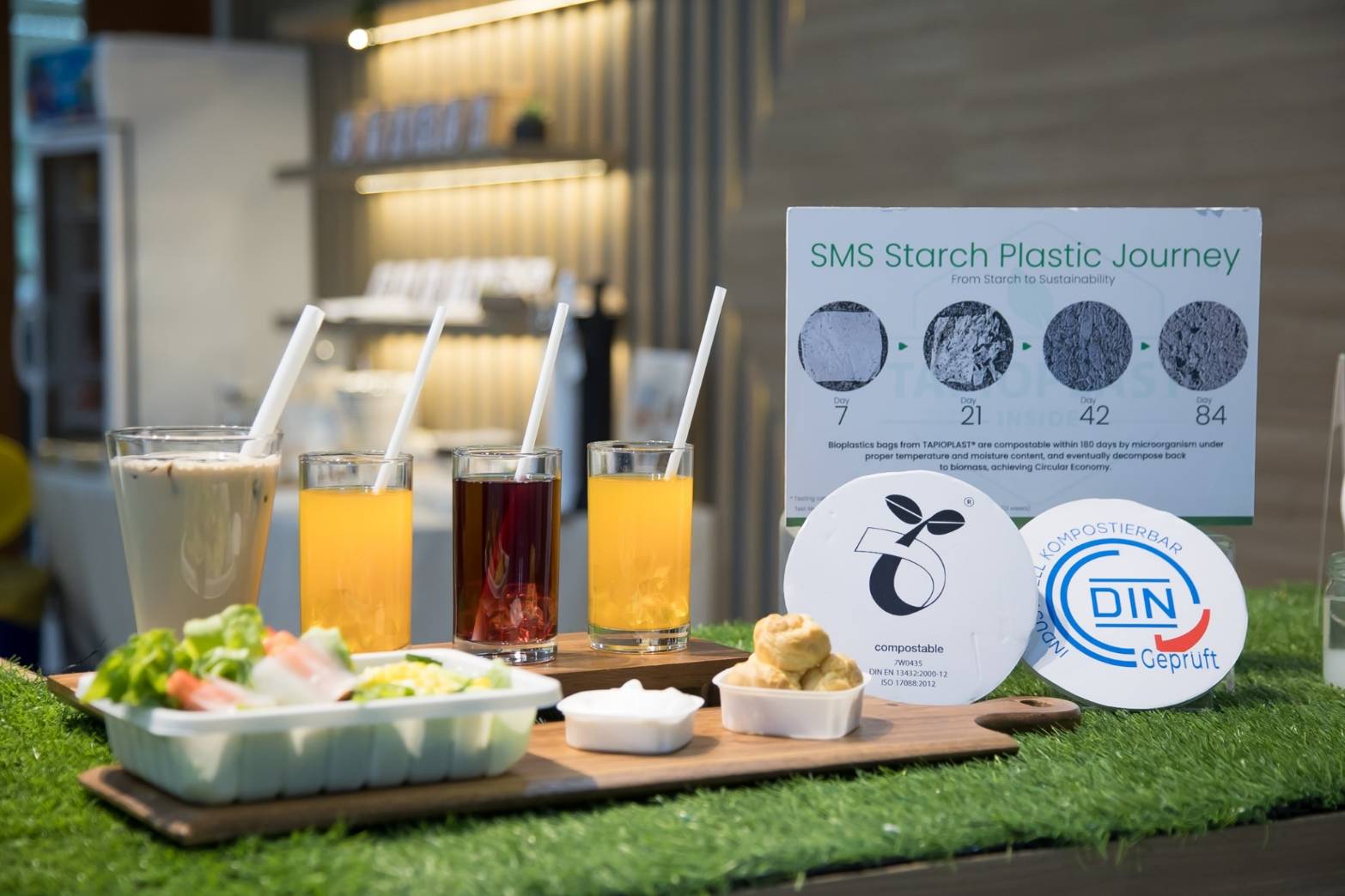 เมื่อวันที่ 8 พฤศจิกายน 2566 บริษัท สยาม มอดิฟายด์ สตาร์ช จำกัด ภายใต้กลุ่ม บริษัท เอส เอ็ม เอส ได้จัดพิธีเปิดโรงงานผลิตหลอดพลาสติกชีวภาพ TAPIOPLAST® โดยเป็นผลิตภัณฑ์ที่มุ่งตอบโจทย์การเป็นมิตรต่อสิ่งแวดล้อม และสอดคล้องกับนโยบายลดการปล่อยก๊าซคาร์บอนไดออกไซด์ ของกลุ่มบริษัท เอส เอ็ม เอส ที่มีเป้าหมายมุ่งสู่ความเป็นกลางทางคาร์บอน (Carbon Neutrality) เพื่อสร้างความยั่งยืนในอนาคต