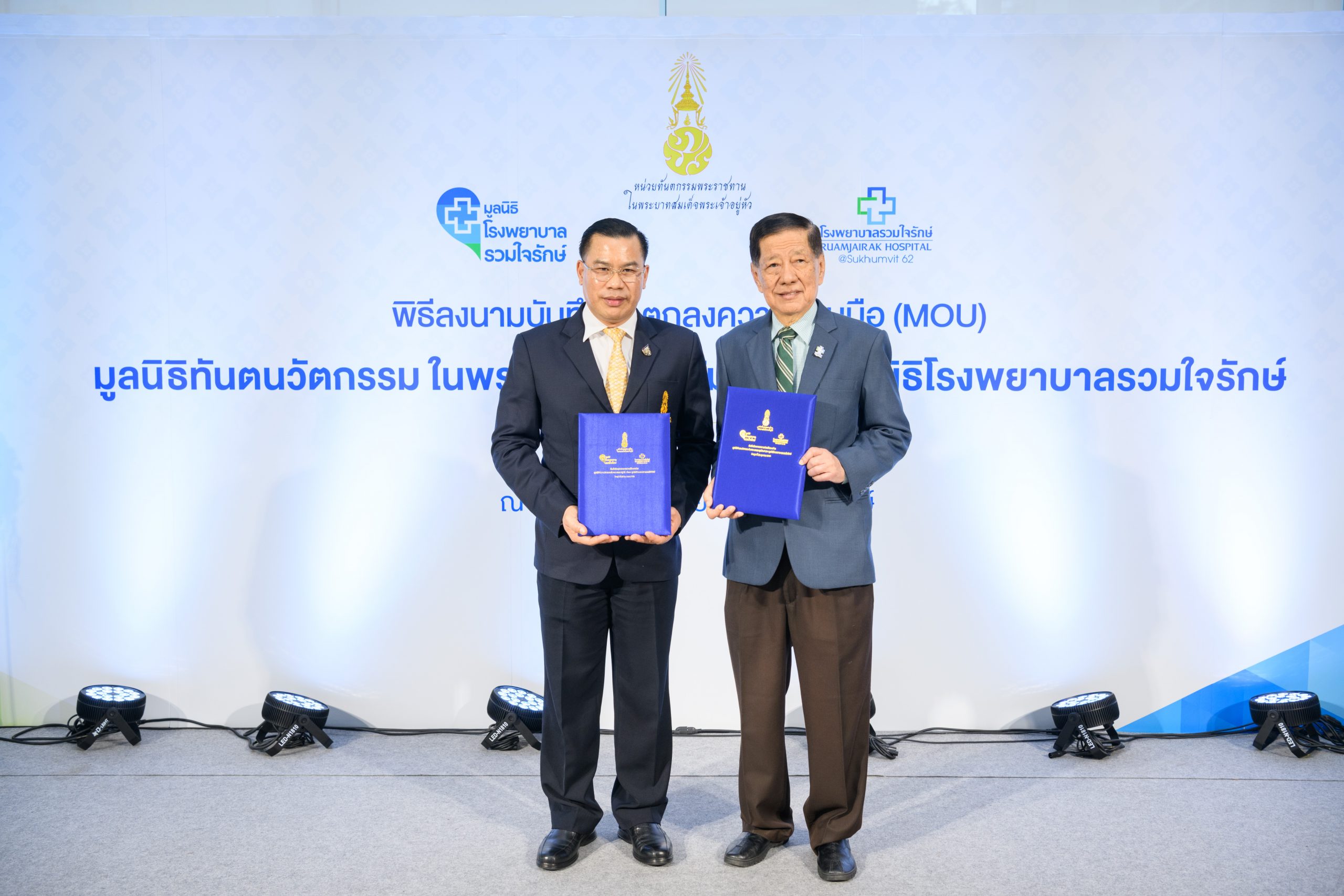 โรงพยาบาลรวมใจรักษ์ @สุขุมวิท 62 ในฐานะผู้ก่อตั้งมูลนิธิโรงพยาบาลรวมใจรักษ์ นำโดย นพ. สุนทร ศรีทา ผู้อำนวยการโรงพยาบาลรวมใจรักษ์ และ นายประกิต อภิสารธนรักษ์ ประธานกรรมการมูลนิธิโรงพยาบาลรวมใจรักษ์ ร่วมลงนามบันทึกข้อตกลงความร่วมมือ (MOU) กับ มูลนิธิทันตนวัตกรรม ในพระบรมราชูปถัมภ์ โดยมี ศาสตราจารย์ (พิเศษ) ทันตแพทย์หญิง ท่านผู้หญิงเพ็ชรา เตชะกัมพุช ประธานมูลนิธิทันตนวัตกรรม ในพระบรมราชูปถัมภ์ และ นายวรวุฒิ กุลแก้ว เลขาธิการมูลนิธิฯ ร่วมลงนามในพิธี พร้อมเยี่ยมชมโรงพยาบาลรวมใจรักษ์และบูธนำเสนอนวัตกรรมของทางมูลนิธิ อาทิ นวัตกรรมอาหารสำหรับผู้ป่วยมะเร็งช่องปาก “เจลลี่โภชนา” , นวัตกรรมน้ำลายเทียมชนิดเจล “วุ้นชุ่มปาก” เป็นต้น โดยความร่วมมือในครั้งนี้มีวัตถุประสงค์ เพื่อร่วมวิจัยและพัฒนานวัตกรรมสนับสนุนงานทางด้านการแพทย์ ซึ่งมุ่งหวังให้ประชาชนได้รับประโยชน์ในการให้บริการทางด้านทันตกรรมที่มีประสิทธิภาพและความสะดวกสบายมากยิ่งขึ้น ทั้งนี้พิธีลงนามบันทึกข้อตกลงความร่วมมือ (MOU) จัดขึ้น ณ ชั้น G โรงพยาบาลรวมใจรักษ์ @สุขุมวิท 62 เมื่อเร็วๆ นี้