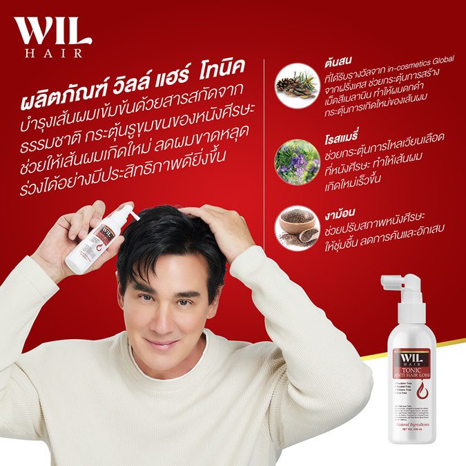 กล่าวได้ว่าผลิตภัณฑ์ Wil Hair และ Yel Hair เน้นบำรุงดูแลลึกถึงระดับ Stem Cell รากผม ฟื้นฟูเส้นผมจากภายใน จึงช่วยลดการขาดหลุดร่วง เซลล์รากผมที่ขึ้นใหม่ก็แข็งแรง จุดเด่นอีกอย่างคือเราใช้สารสกัดจากธรรมชาตินานาชนิด เช่น ผลิตภัณฑ์แฮร์โทนิคมีสารสกัดจากต้นสนที่ได้รับรางวัลจาก in-cosmetics Global จากฝรั่งเศส ช่วยกระตุ้นการสร้างเม็ดสีเมลานิน ทำให้ผมดกดำ กระตุ้นการเกิดใหม่ของเส้นผม เราทั้งคู่ใช้ประสบการณ์ตรงและทดลองใช้จริงเป็นบทพิสูจน์แล้วว่าผลิตภัณฑ์ Wil Hair และ Yel Hair ดีจริงๆ ก็อยากให้ทุกคนทั้งผู้หญิงและผู้ชายหันกลับมารักผม ดูแลสุขภาพเส้นผมและหนังศีรษะ เพื่อให้ผมอยู่กับเราไปนานๆ”