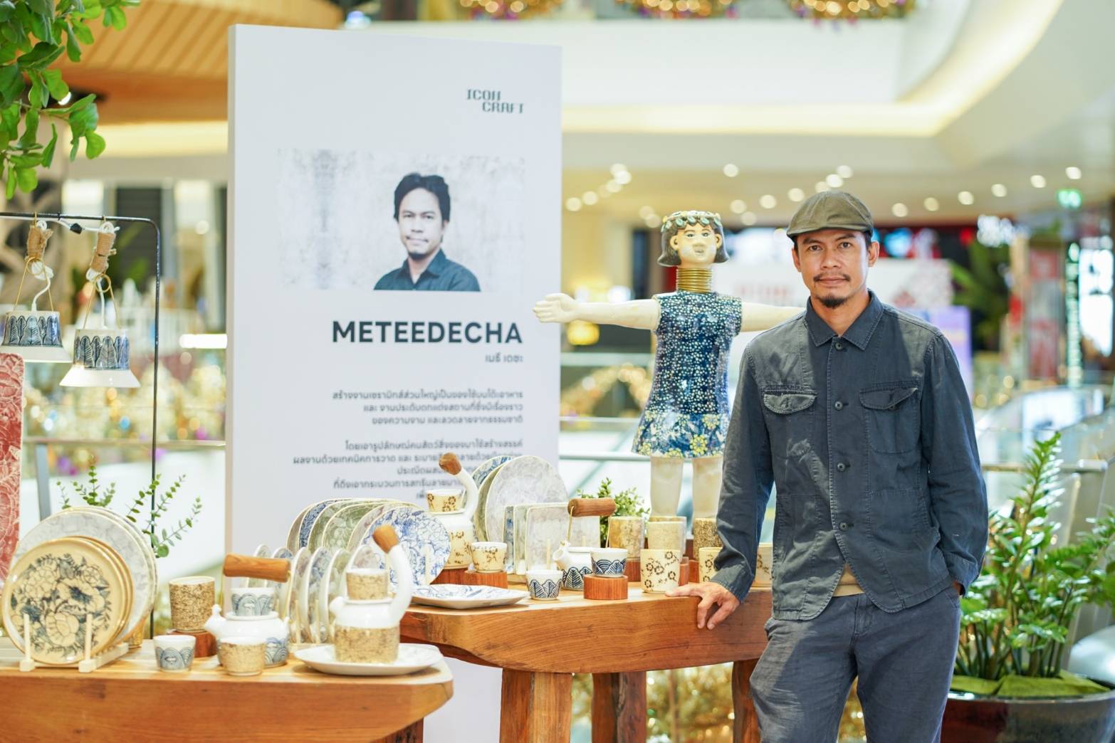 แบรนด์เซรามิกปั้นมือจากหัวใจ “METEEDECHA” เด่นด้วยลวดลายสวยสะดุดตา สะท้อนถึงความรักความอบอุ่นของชุมชนบ้านเกิด ทั้งลายพิมพ์ใบไม้ธรรมชาติ และศิลปะสไตล์ Primitive Art นำเสนอความเป็นผู้หญิงชาวบ้านและสถาปัตยกรรมพื้นถิ่นที่เรียบง่ายทว่างดงาม เพิ่มเติมความน่าสนใจด้วยดีไซน์ไม่ซ้ำใครและเทคนิคที่หลากหลาย อย่างการผสมดินด้วยอิฐหยาบ ตกแต่งชิ้นงานด้วยไม้หรือทองเหลือง รวมถึงเทคนิคเคลือบออกไซด์สุดล้ำ เป็นผลงานเซรามิกที่โดดเด่นมีเอกลักษณ์ ควรค่าแก่การมีไว้ในครอบครอง