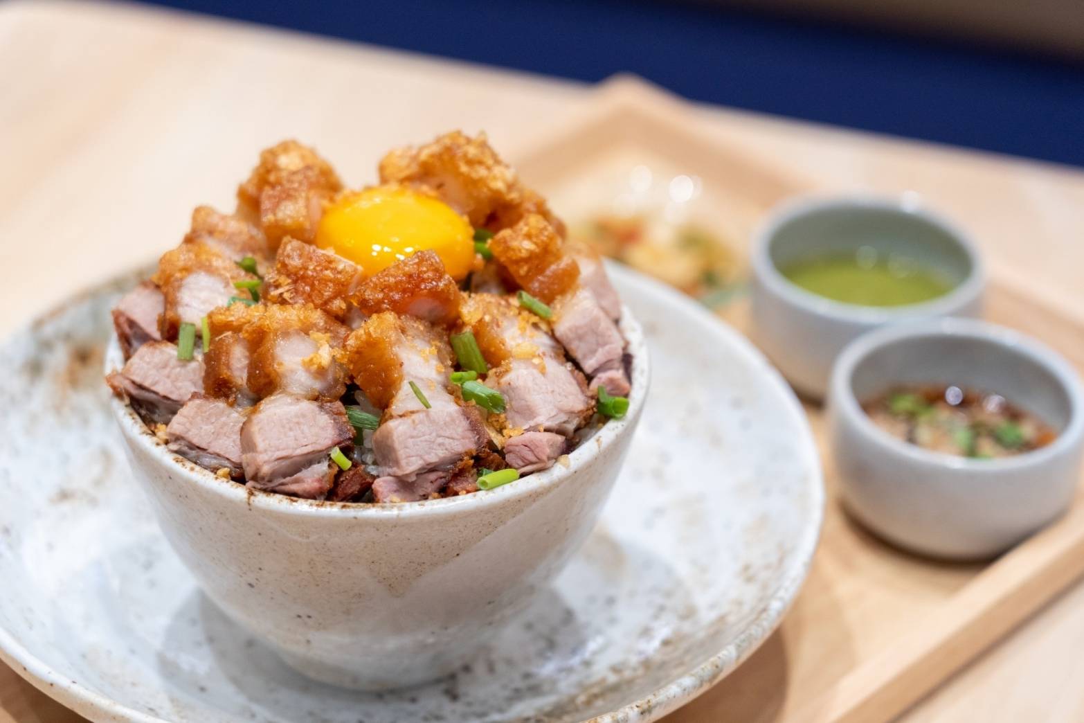 สำหรับเมนูซิกเนเจอร์ต้องลอง ได้แก่ “ข้าวขยำพลิกล็อคหมูกรอบ” จานเด็ดที่หาจากที่อื่นไม่ได้ เสิร์ฟครบทุกรสชาติ ทั้งเปรี้ยว หวาน เค็ม เผ็ด อีกเมนูที่แนะนำคือ “ข้าวหมูกรอบคั่วพริกเกลือคลุกข้าวหน้าล้น” เสิร์ฟความพิเศษในชามใหญ่สไตล์ข้าวด้ง เอาใจคนกินจุด้วยการให้ทุกอย่างเป็นสองเท่า เสิร์ฟพร้อมไข่ดองน้ำปลาสุดนัว อีกจานที่ต้องลอง คือ “หมี่ต้มยำหมูกรอบ” ซึ่งเป็นซุปต้มยำน้ำข้นร้อนๆท๊อปด้วยหมูกรอบ เมนูสำหรับสายเส้นโดยเฉพาะ เช่นเดียวกับคนชอบกินเมนูผัดผงกะหรี่ “ข้าวหมูกรอบผัดผงกะหรี่” ทั้งหมดพร้อมให้ทุกคนมาลิ้มลองความอร่อยแล้ววันนี้