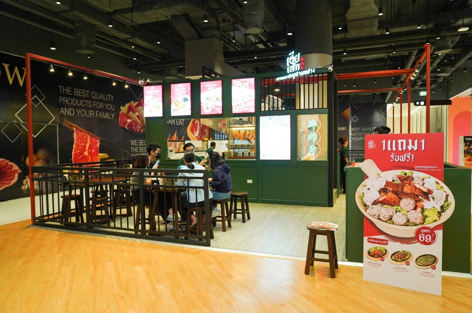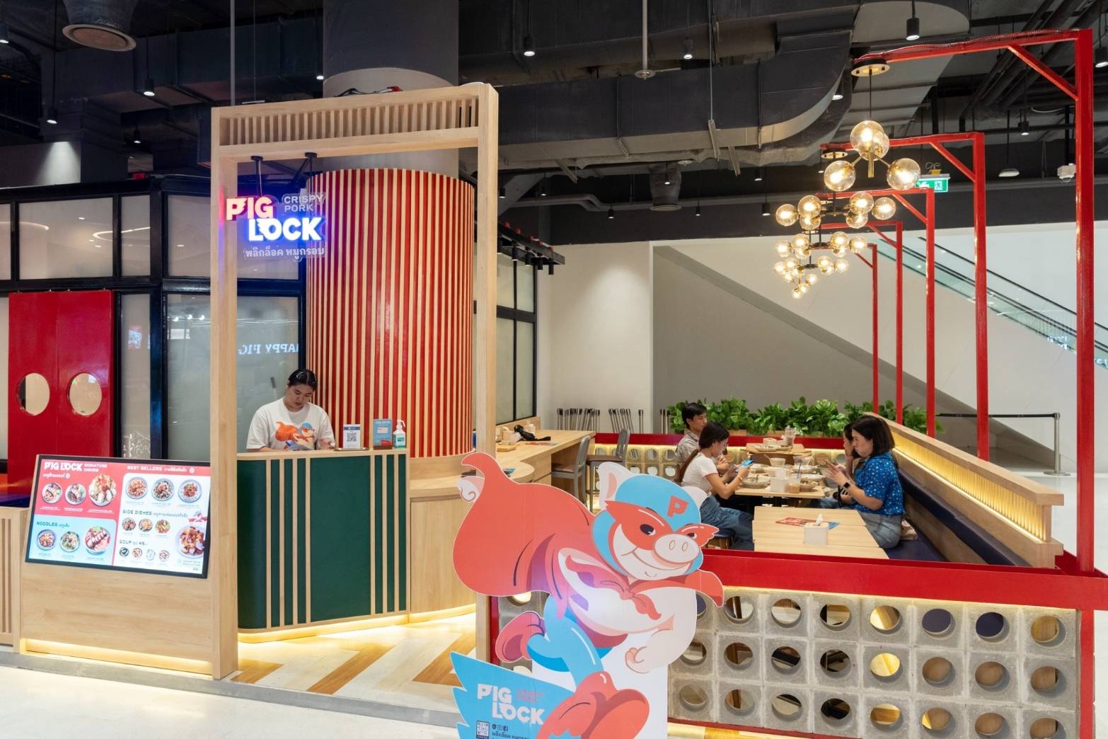 ความพิเศษของร้าน “พลิกล็อคหมูกรอบ” ที่เปิดให้บริการที่ ICS ถือเป็นสาขาแรกที่ใส่ความเป็นตัวเองในเรื่องดีไซน์ร้านอย่างเต็มที่ โดยเน้นออกแบบตกแต่งร้านสไตล์สุดโมเดิร์น เอาใจสายชิคให้สามารถมาเช็คอินถ่ายรูป พร้อมอิ่มเอม อิ่มใจ ไปกับบรรยากาศของความอร่อยและสนุกไปพร้อมๆ กัน