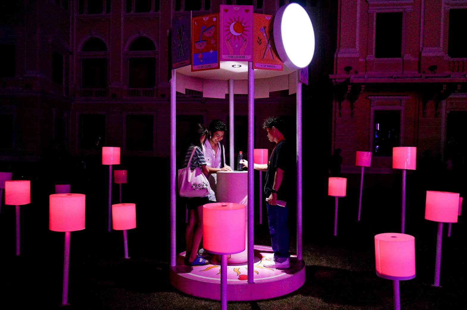Sappe Beauti Drink นั้นขอเชิญชวนคุณไปสัมผัสประสบการณ์การเติมน้ำมันตะเกียงที่ถูกตีความการนำเสนอในรูปแบบ Interactive Installation อาบพลังงานดีๆ และเติมความสว่างไสวในชีวิตขึ้นอีกครั้ง ซึ่งสอดคล้องกับผลิตภัณฑ์ของ Sappe Beauti Drink ที่ต้องการเป็นตัวช่วยเสริมพลังที่ดี ที่มีประโยชน์ให้กับตัวเองได้ง่ายๆ พร้อมเสริมดวงด้วยลวดลายบนไพ่ทาโร่ใน Wallpaper มงคล ที่ถูกสร้างสรรค์โดยแม่หมอพิมพ์ฟ้า โดยลวดลายที่มีความหมายดีๆ เหล่านี้จะโอบล้อมเรา และช่วยมอบพลังงานและความหมายดีๆ ไปอีกขั้น ทั้งเป็นตัวช่วยเสริมพลังในจิตใจให้พร้อมก้าวผ่านทุกปัญหาไปได้อย่างดี