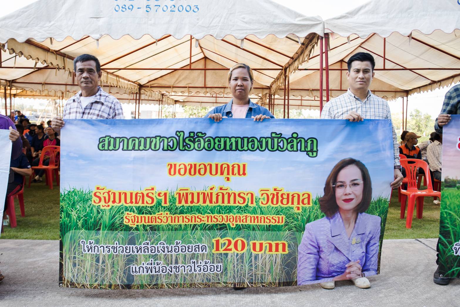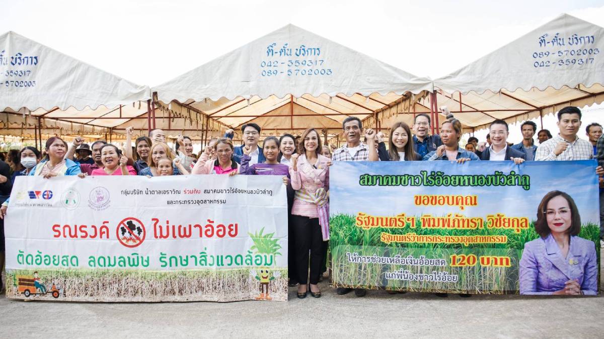 ทั้งนี้ในวันที่ 4 ธันวาคม 2566 นางสาว พิมพ์ภัทรา วิชัยกุล รมว.กระทรวงอุตสาหกรรม ได้เล็งเห็นปัญหาต่างๆและได้เร่งดำเนินการแก้ไขโดยเริ่มจากการเสนอโครงการสนับสนุนเกษตรกรชาวไร่อ้อยตัดอ้อยสดคุณภาพดี เพื่อลดฝุ่น pm 2.5 ในการประชุมคณะรัฐมนตรี (ครม.) หลังประชุมได้ มีการอนุมัติโครงการดังกล่าว ทำให้เกษตรกรชาวไร่อ้อยหนองบัวลำภูที่ทราบข่าวร่วมตัวกันเดินทางมาที่ รอพบคณะรัฐมนตรี กระทรวงอุตสาหกรรม ที่มีกำหนดการณ์มาดูงานที่โรงงานน้ำตาลเอราวัณ เมื่อ นางสาว พิมพ์ภัทรา วิชัยกุล รมว.กระทรวงอุตสาหกรรม และคณะ ได้เดินทางมาถึง นาย สมพร สังข์ศิริ ตัวแทนสมาชิกสมาคมชาวไร่อ้อยหนองบัวลำภู ได้ขอบคุณเป็นภาษาอีสาน ดังนี้ “ผมขอเป็นตัวแทนเกษตรกรชาวไร่อ้อยหนองบัวลำภู และชาวไร่อ้อยไทย ที่ได้รับของขวัญปีใหม่ได้รับเงินสนับสนุนตัดอ้อยสดตันละ 120 บาท รวมๆแล้วได้เงินเป็นหมื่นรที่สร้างรายได้เป็นเงินหลักหมื่น ต่อครอบครับ และหวังว่าจะมีของขวัญแบบนี้ให้ทุกๆปี แล้วชาวเกษตรกรชาวไร่อ้อยก็มีของขวัญปีใหม่คือสัญญาที่จะทำการเก็บเกี่ยวเฉพาะอ้อยสด เท่านั้นมอบให้ ครม. ด้วยเช่นกัน”